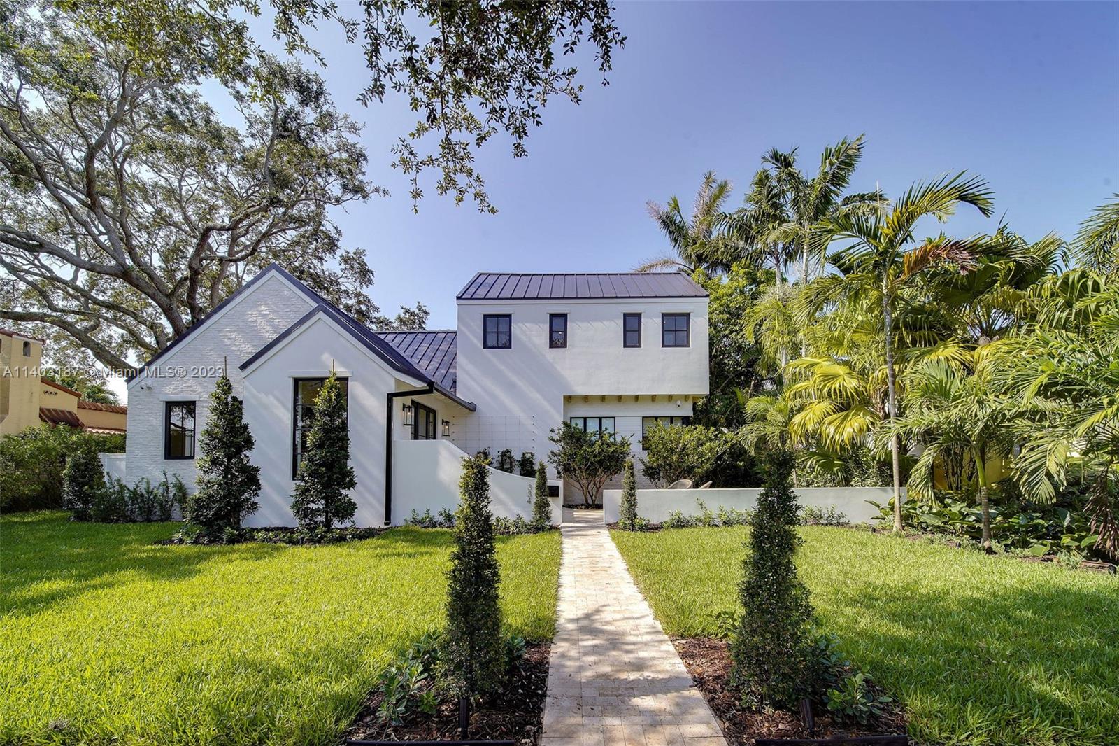 Welcome to "The Oak's Peak"! A timeless new construction that offers unparalleled elegance, luxury, & warm modern design. Standing seam roof, stone detail, & lush landscape, deliver distinct & sophisticated curb appeal. Formal entryway w/ soaring beam ceiling & large format windows bring in tons of light & views of lush greenery. Stylish formal dining perfect for hosting elegant gatherings or intimate family dinners. Gourmet kitchen outfitted w/ stainless appliances, gas-cooking, custom cabinetry, & marble island. Primary suite w/ soaking tub, marble walk-in shower & private exit to pool deck. Backyard includes cabana bath, rear driveway w/ one-car garage. Additional features include ventless gas fireplace, smarthome technology, security cameras, custom ironwork, den/office, laundry room.