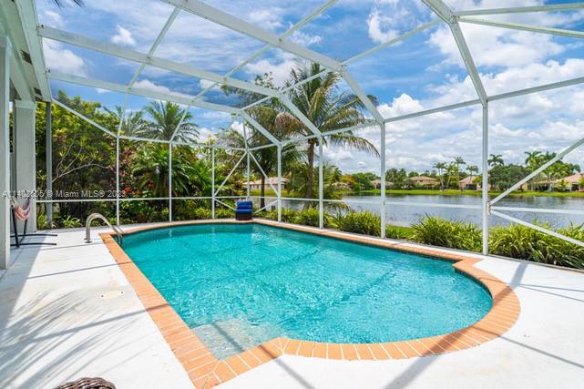Stunning LAKEFRONT 5 bedroom 3-1/2 bath home with POOL centrally located in North Lakes. High ceilings and ample natural light with OPEN & BRIGHT WATER VIEWS from EVERY backroom. This home is IDEAL for entertaining with a spacious living and family room. Multiple french doors open to the pool and lake. Split floor plan with Jack and Jill bathroom. HUGE Primary bedroom, custom remodeled closet and SITTING AREA. Office could be an additional bedroom. WALKING distance to Eagle Point Elementary School. Tequesta Middle School and Cypress Bay High School (A+ rated schools). Enjoy the serene water views from your covered and screened in pool. New Roof in 2020!! 5th Bedroom is used as an office.