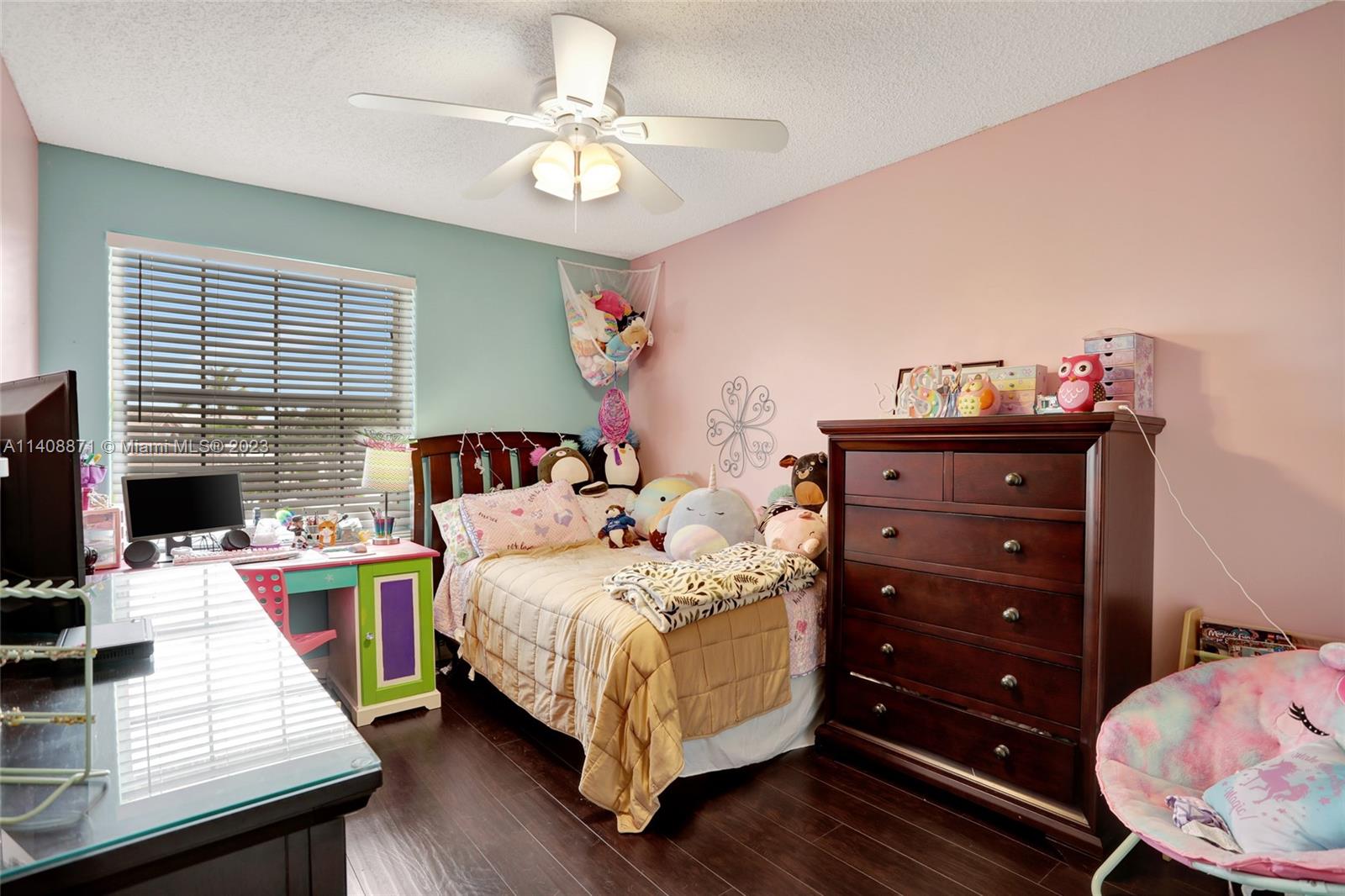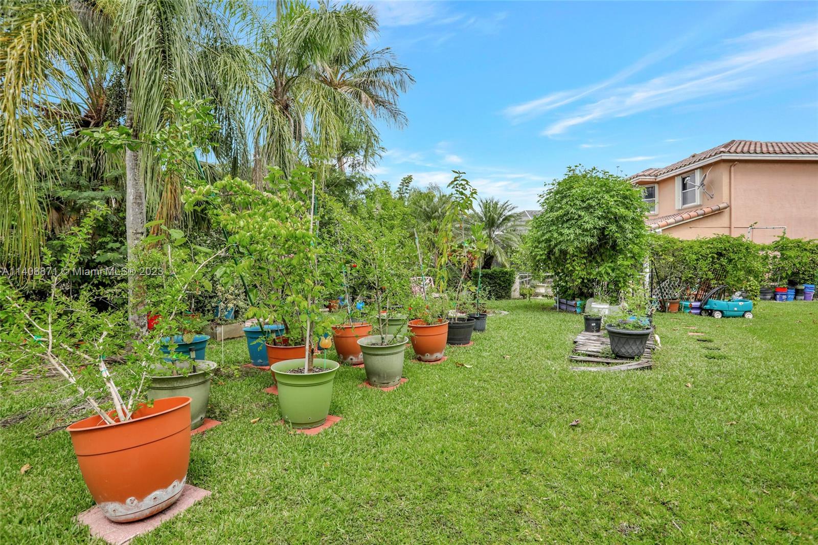 Great opportunity to live in a spacious 2-story home with an amazing oversized culdesac lot for someone who loves outdoor living & is perfect for kids or gardening...Quick closing is available to move in before school starts. This carpet FREE home features tile & woodlike floors throughout, a brand NEW ROOF in November 2022, one of the two air conditioners new, a large screened pool, a summer kitchen, hurricane panels & accordions for the windows & a once of a kind very large side yard. The flexible floor plan offers a living area, dining area, separate family room, and optional 5th bedroom which is currently used as a huge sitting room off the primary suite. Enjoy this gated community with tennis and a community pool with a new front gate & new playground equipment soon to be installed.
