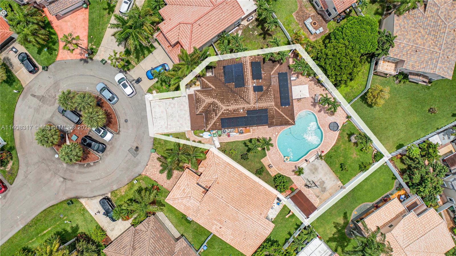 Welcome home to this gorgeous 2 story home w/ HUGE lot on a cul-de-sac, w/ an upgraded contemporary design throughout. 5bd/2.5ba, 2375 SF, chef’s eat-in kitchen, formal dining, family rm, laundry rm & full 2 car garage. This HUGE lot houses an XL pool & pool deck w/ tropical landscaping, basketball ct, LG outdoor covered living w/ space for summer kitchen, 2022 pool pump & privacy fence around property. The home has been modernized w/ solar panels to run the entire home, brand new roof, new AC & water heater & runs at peak energy efficiency w/ minimal electric bills to boot! Great location in a well-kept community near top-rated schools, min to shopping, cafes & local highways bring you to Miami & Ft Lauderdale easily & quickly! Easy to show!