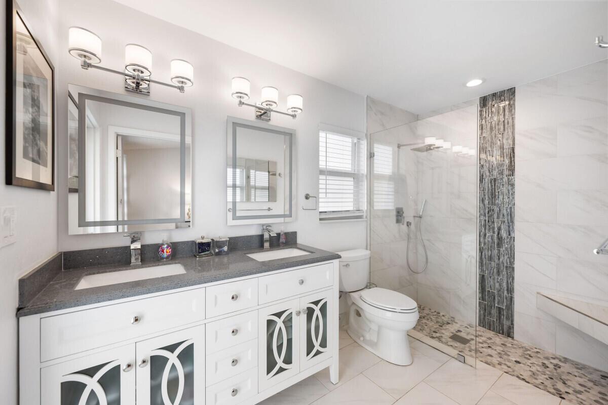 Welcome to this beautiful newly remodeled East Boca 3 bdrm., 3 bath home, with a bright open floor plan on a corner lot in a friendly non-HOA neighborhood. New roof, impact windows, sliders, skylights, and garage door, A/C replaced in 2017. Enjoy gatherings in generously sized living and family room with access to lush private backyard with pool and hot tub for ultimate entertaining. Recently remodeled good-sized kitchen with lots of storage, granite countertops and island with seating allowing you to cook, entertain and be part of the activities in the family room. Two large master-sized bedrooms with newly remodeled en-suites and another guest bedroom with access to full-sized hall bathroom with soaking tub. Large two car garage. Boca's Top School district.