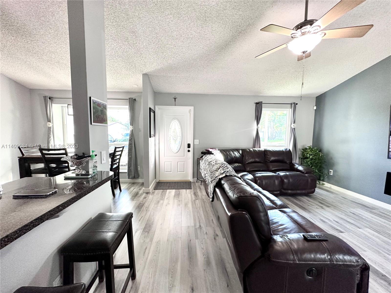 Nice and spacious 2 bedroom 1 bathroom home in the heart of Pembroke Pines! Laminated waterproof floor throughout, stainless steel appliances, upgraded bath, partial impact windows and sliding door. Completely fenced backyard with room to park trailer or boat on the side yard. Community with pool and tennis courts. Low HOA. A must see & will not last!!!