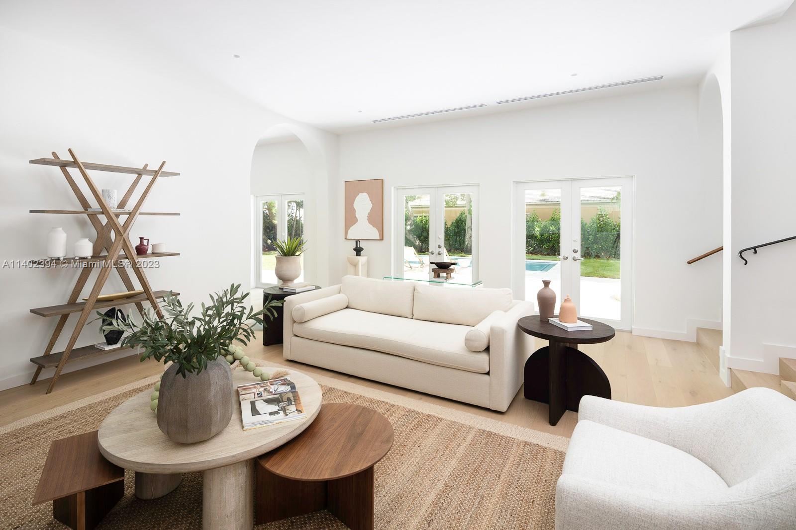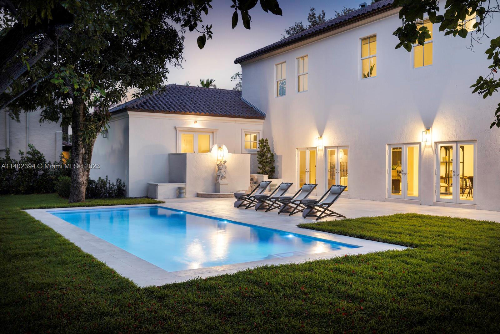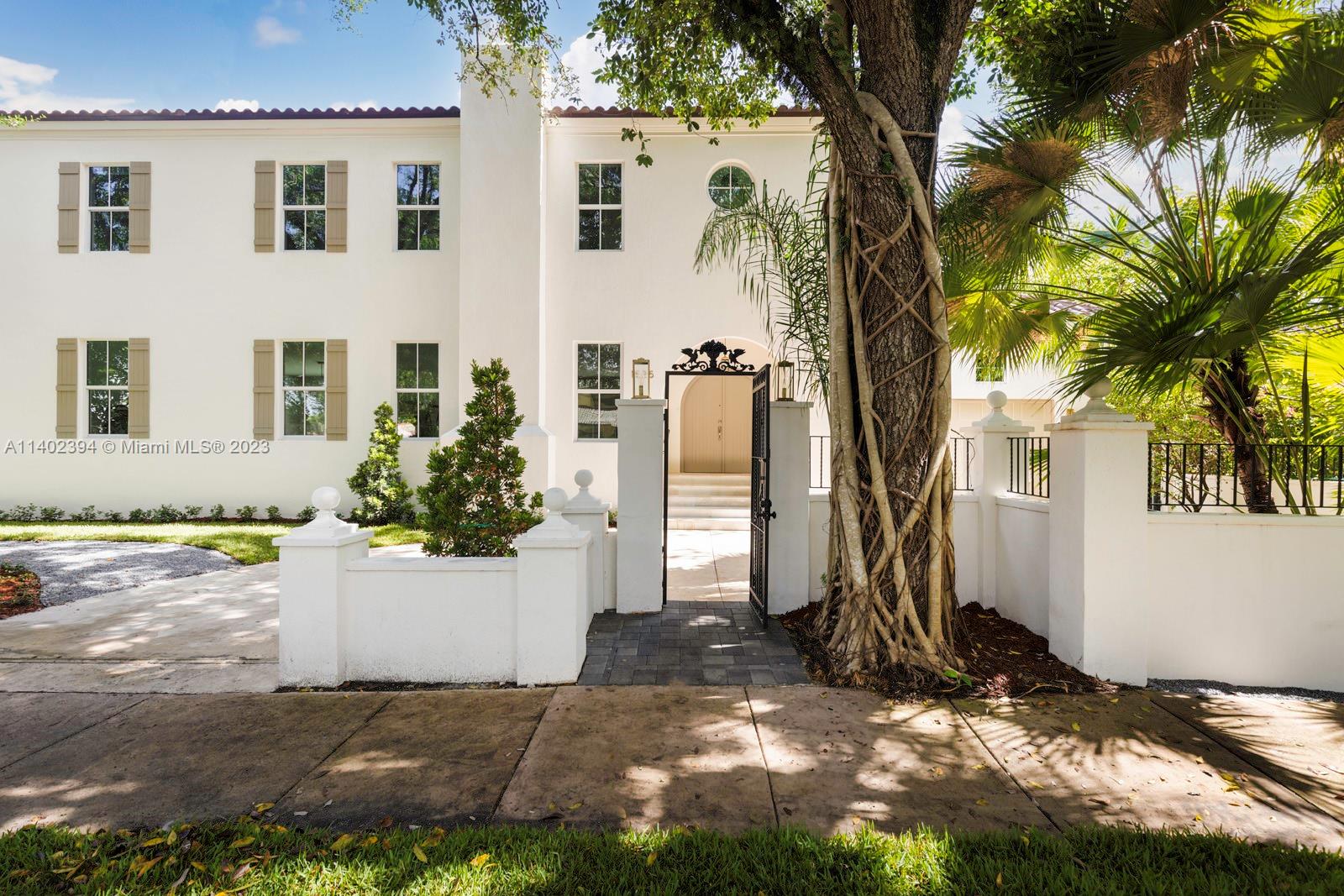 Immerse yourself in the allure of this freshly renovated Coral Gables villa with Tuscan influences. Enter a realm of elegance with 10' ceilings and graceful arched doorways. The French doors bathe the interior in natural light and create an inviting atmosphere. Enjoy the picturesque views of the expansive backyard and glistening pool, a haven for relaxation and entertainment. The modern kitchen features stainless steel appliances and a fresh palette. With 4 bedrooms, including a convenient downstairs bedroom, this villa offers versatility and comfort. The gated property sits on oversized corner lot, adorned with fruit trees. Easy access to 836 ensures seamless connectivity for your daily commute and exploring the area. Embrace the allure of this dreamy villa & elevate your lifestyle.