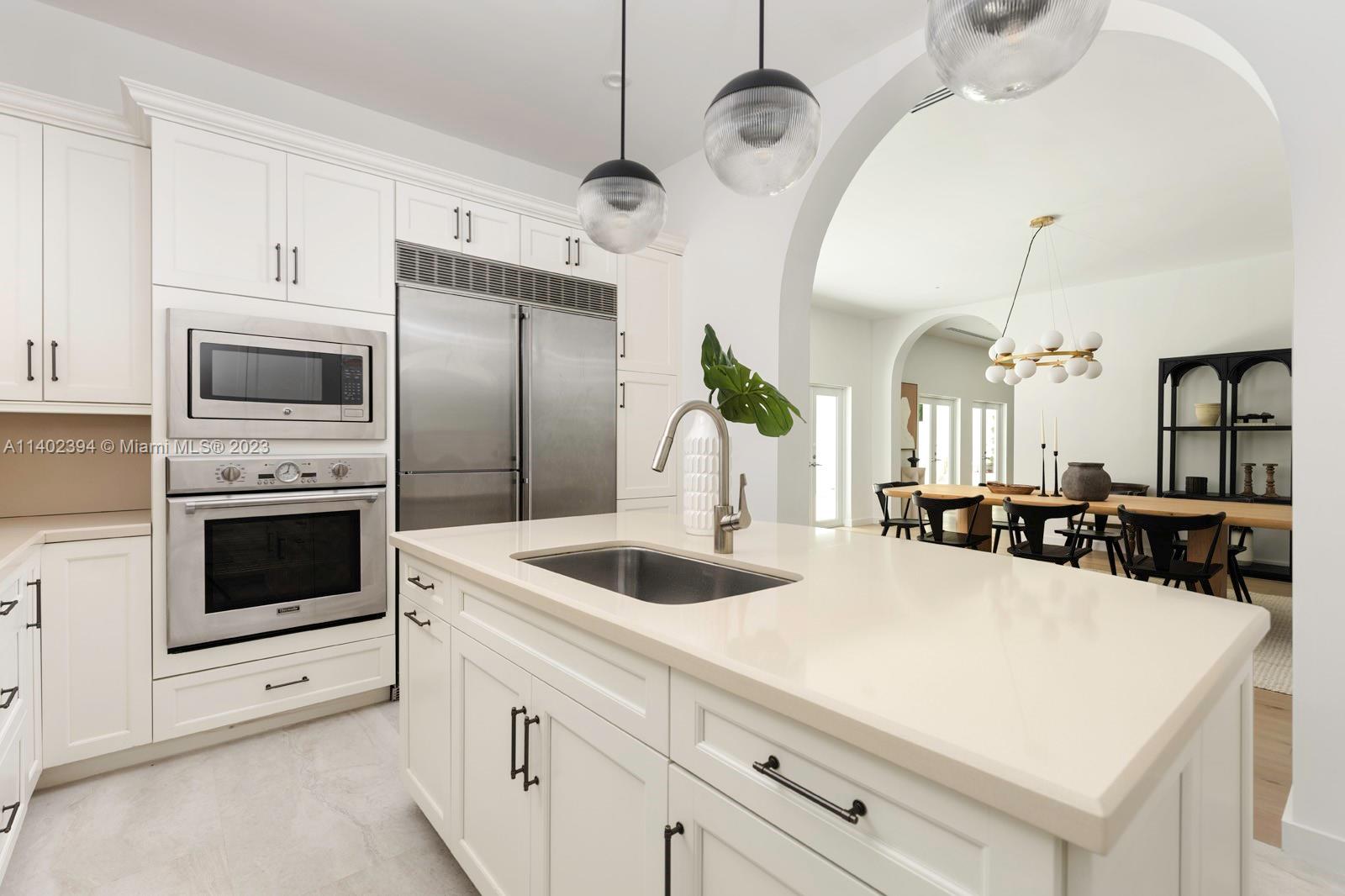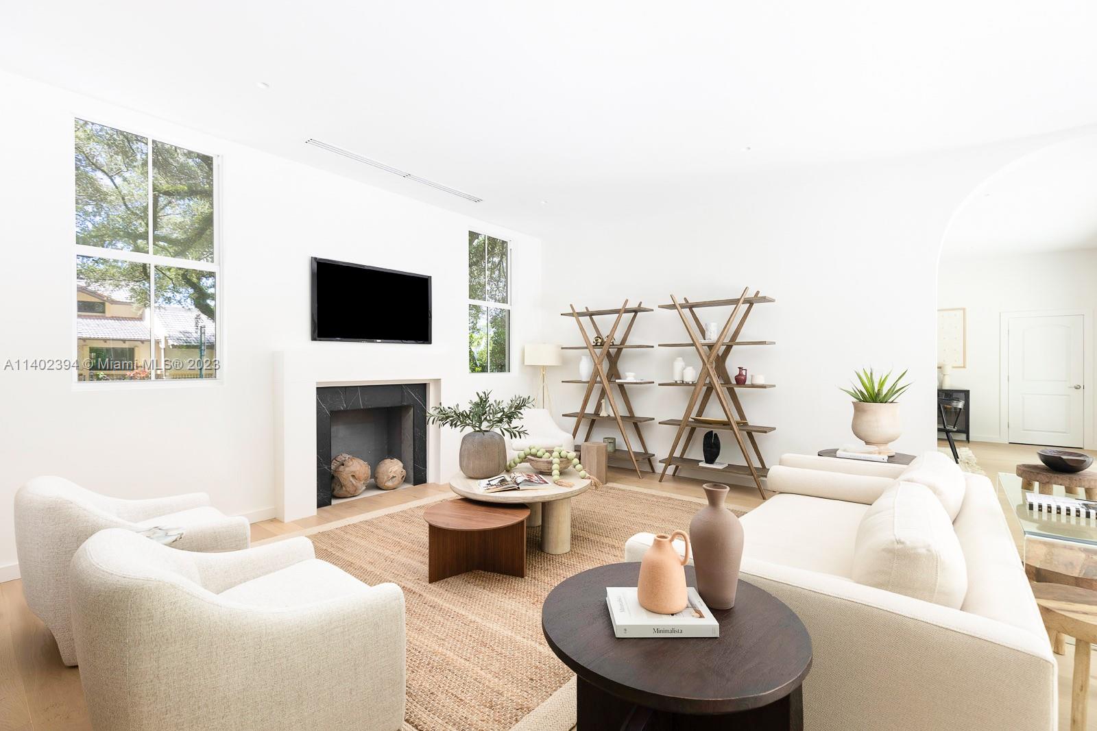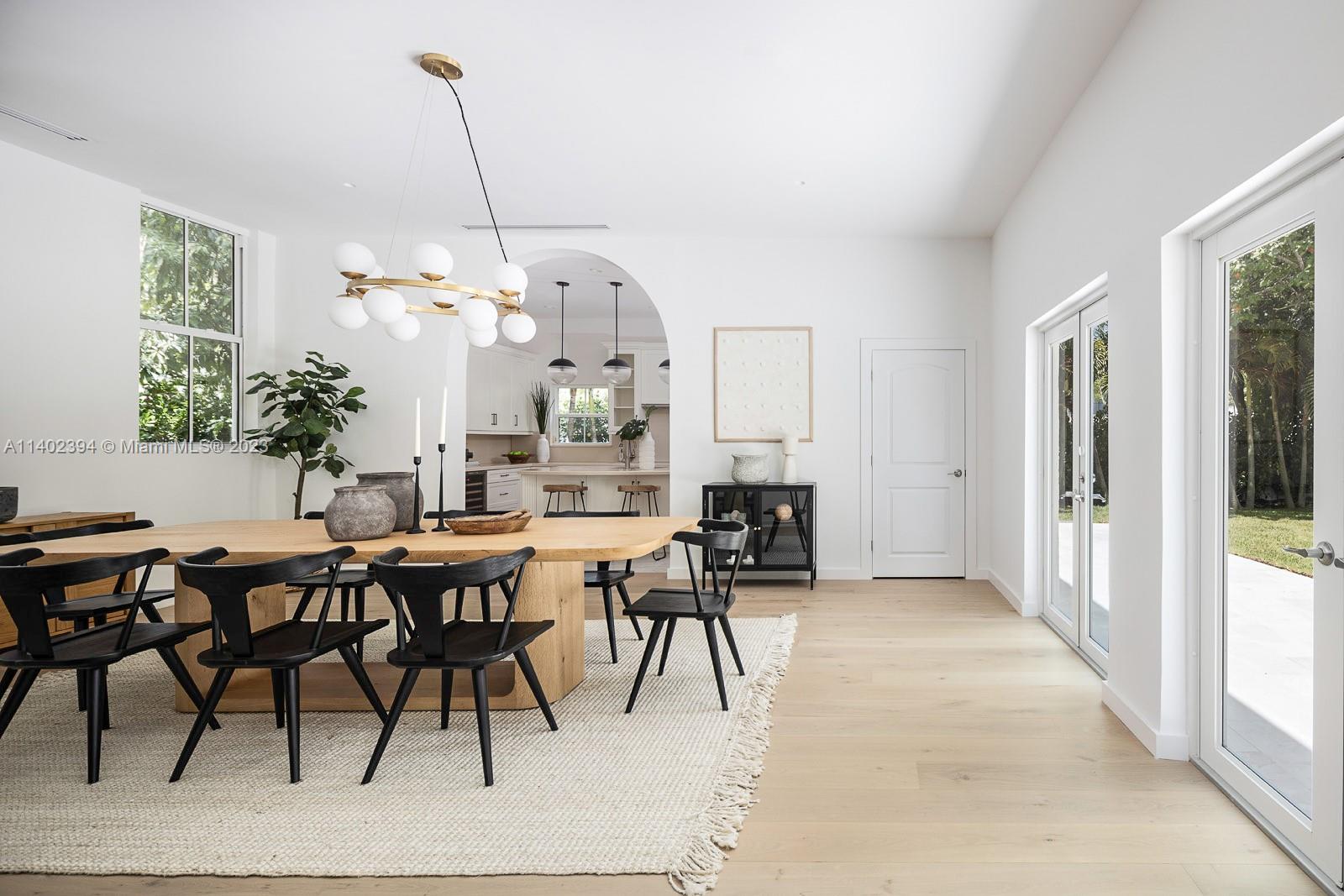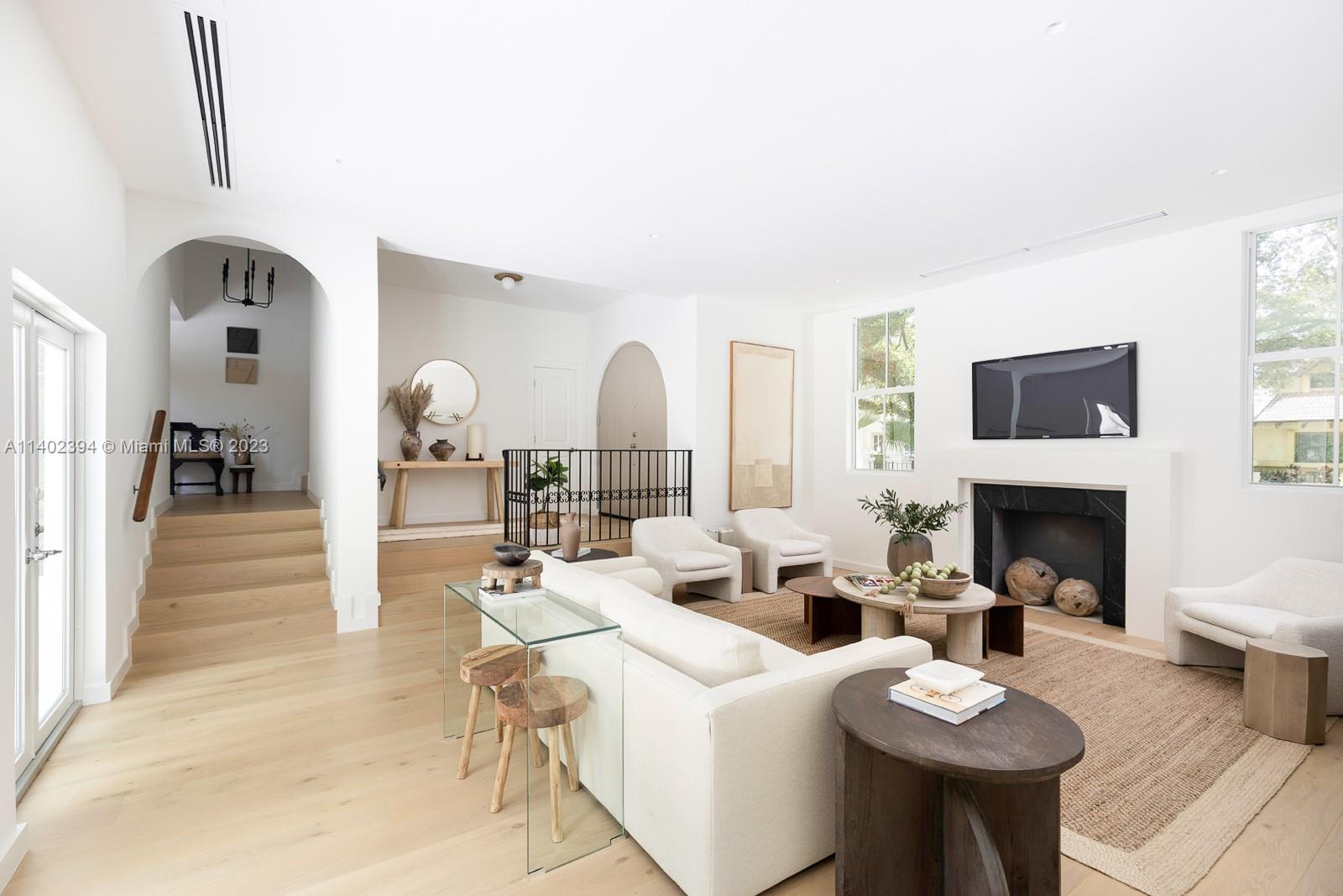 Immerse yourself in the allure of this freshly renovated Coral Gables villa with Tuscan influences. Enter a realm of elegance with 10' ceilings and graceful arched doorways. The French doors bathe the interior in natural light and create an inviting atmosphere. Enjoy the picturesque views of the expansive backyard and glistening pool, a haven for relaxation and entertainment. The modern kitchen features stainless steel appliances and a fresh palette. With 4 bedrooms, including a convenient downstairs bedroom, this villa offers versatility and comfort. The gated property sits on oversized corner lot, adorned with fruit trees. Easy access to 836 ensures seamless connectivity for your daily commute and exploring the area. Embrace the allure of this dreamy villa & elevate your lifestyle.