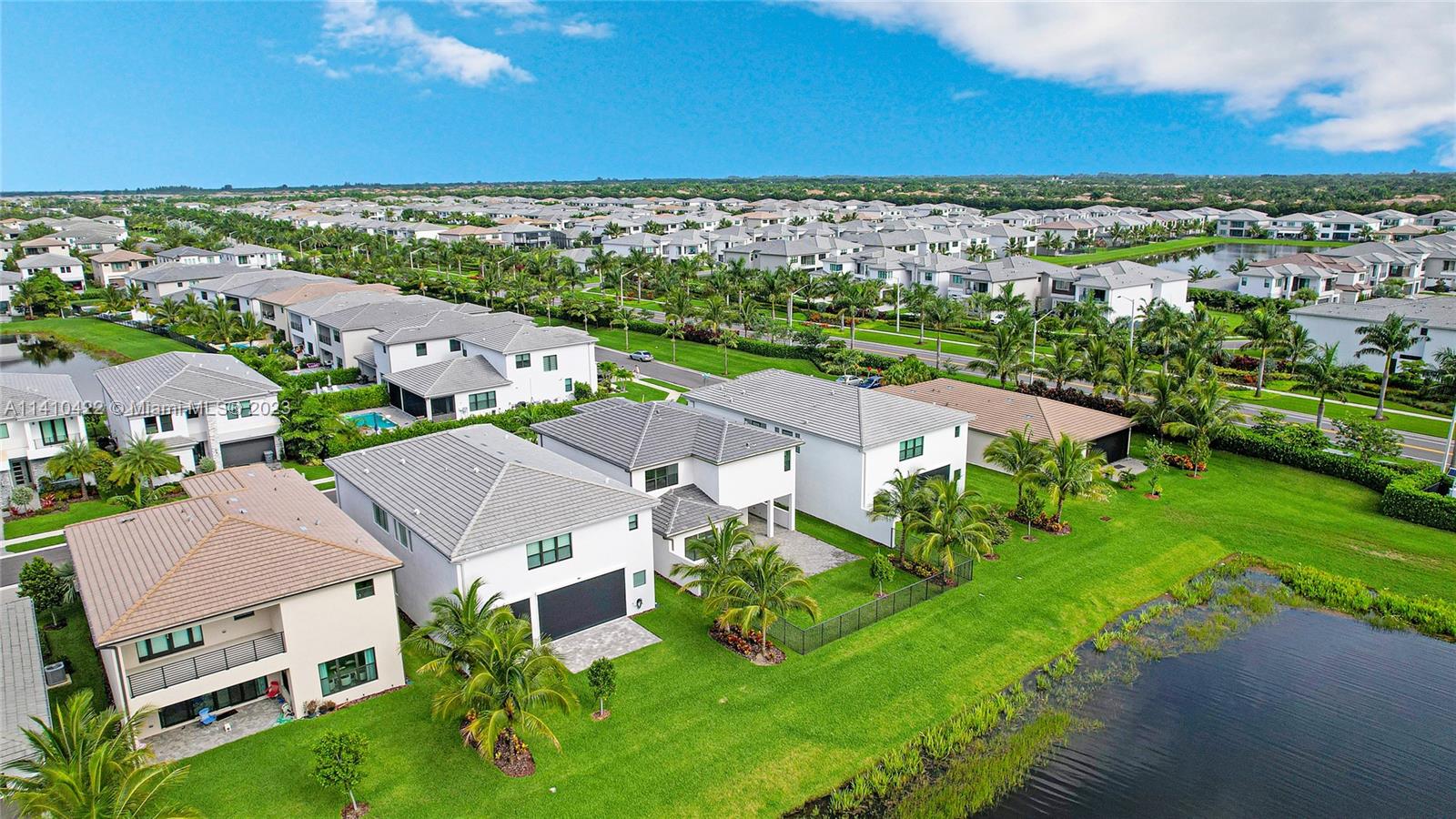 Absolutely stunning 4 bed, 5 bath single family home with oversized den/bedroom & loft. Enjoy panoramic lake views in this spacious, ultra-modern new construction, never lived-in home. No expense was spared in this Caledonia model with impressive gourmet kitchen w/top of the line GE appliances, gas stove, quartz island & ample laquered high-end cabinetry. Neutral tile flooring on 1st level, upgraded wood tile on stairs and 2nd floor, impact windows/doors & recessed lighting. Premium lake-front lot with fence surrounding the oversized backyard. Impressive primary bath w/ spa tub, shower and upgraded custom dual vanities w/ separate sinks. Impressive curb-appeal, landscaping, paved driveway & 2-car garage. Resort style gated community with restaurant & A+ schools. See virtual tour attached.