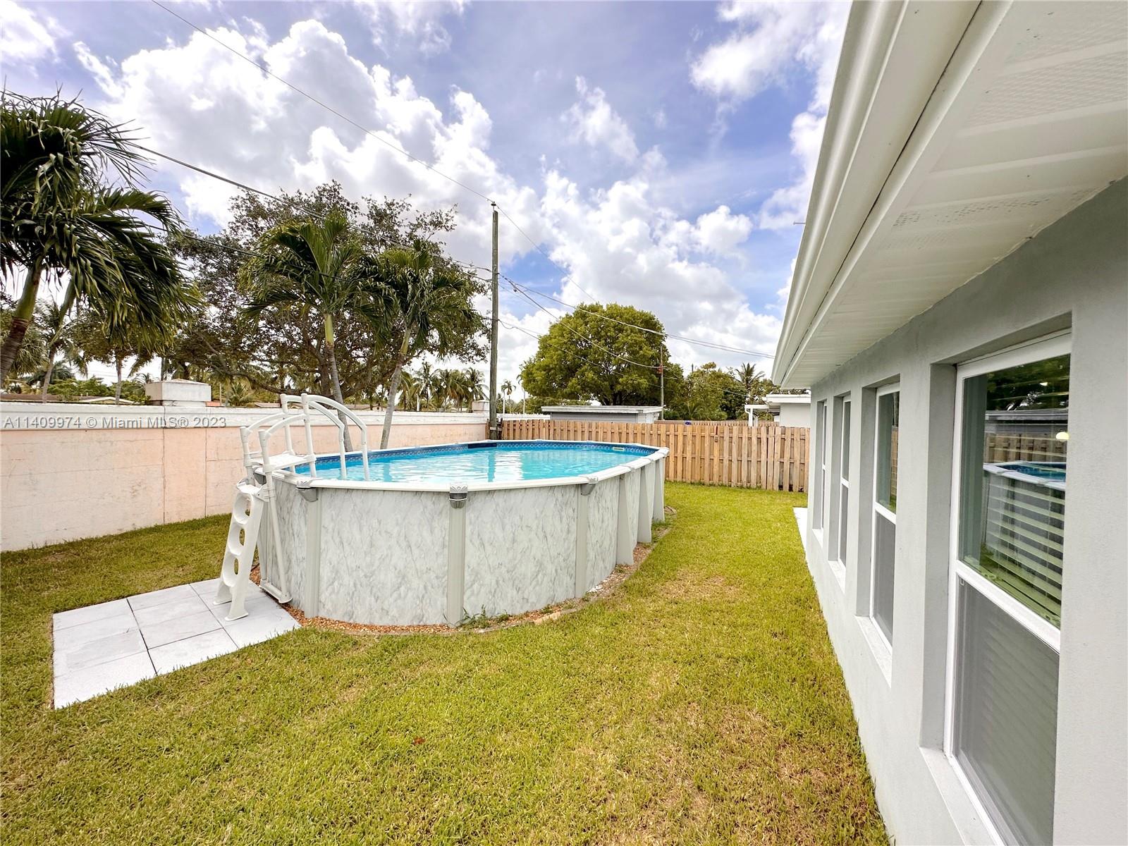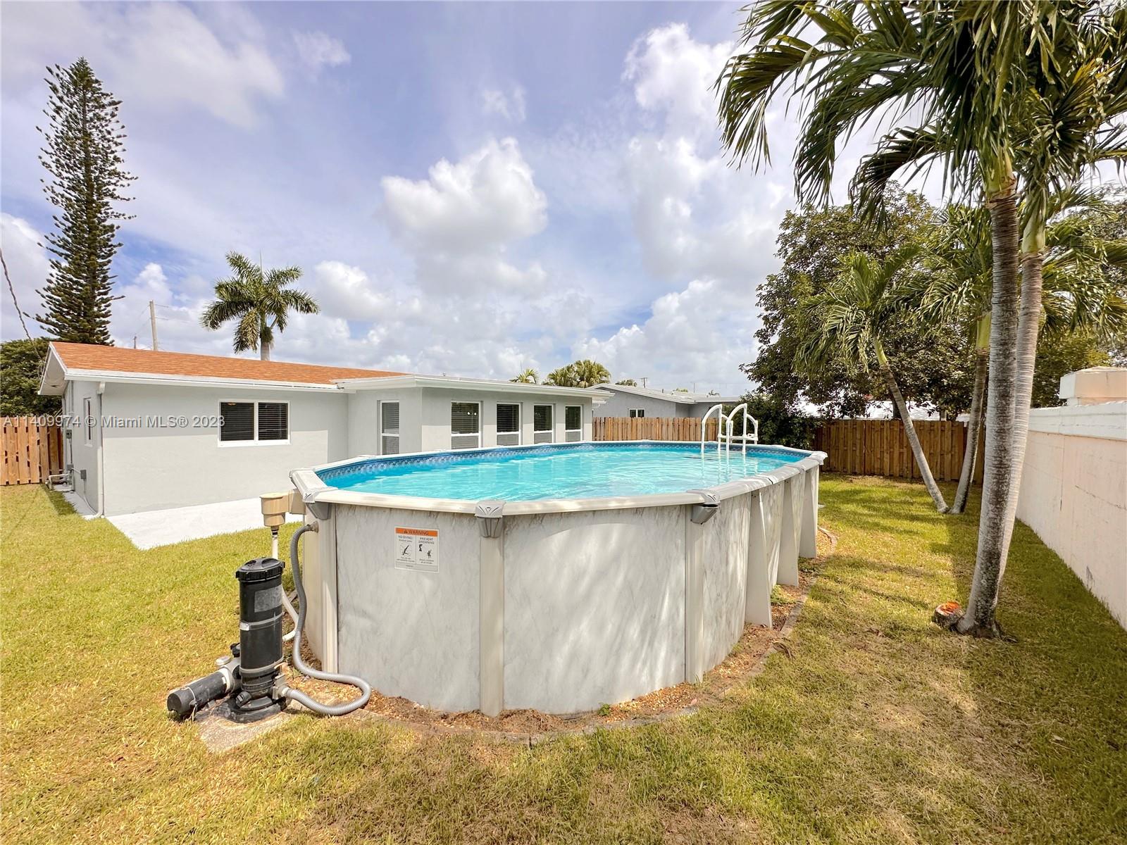 BACK ON THE MARKET. BUYER FINANCING DENIED.This unique GEM is in a league of its own in this area. Luminous elegant one story 2 bedroom and 2 bathroom with Above ground pool. New Roof with permit.New garage Door with permit.New interior electrical panel,New wiring in kitchen and Florida room.New A/C handler.New smoke detectors.New Wood laminate in Bedrooms and tile in Florida room.New bathrooms full remodeled w/new vanity, glass panels. New luxury kitchen w/Quartz counter top on Italian design hard wood Cabinets with New SS Appliances.New Plumbing & Electrical fixtures.New full size washer&dryer.Gas water heater big saving on your elect. bills.New interior doors and New impact exterior doors and windows in Florida room.New landscaping with New Irrigation.New blinds.New driveway asphalt.