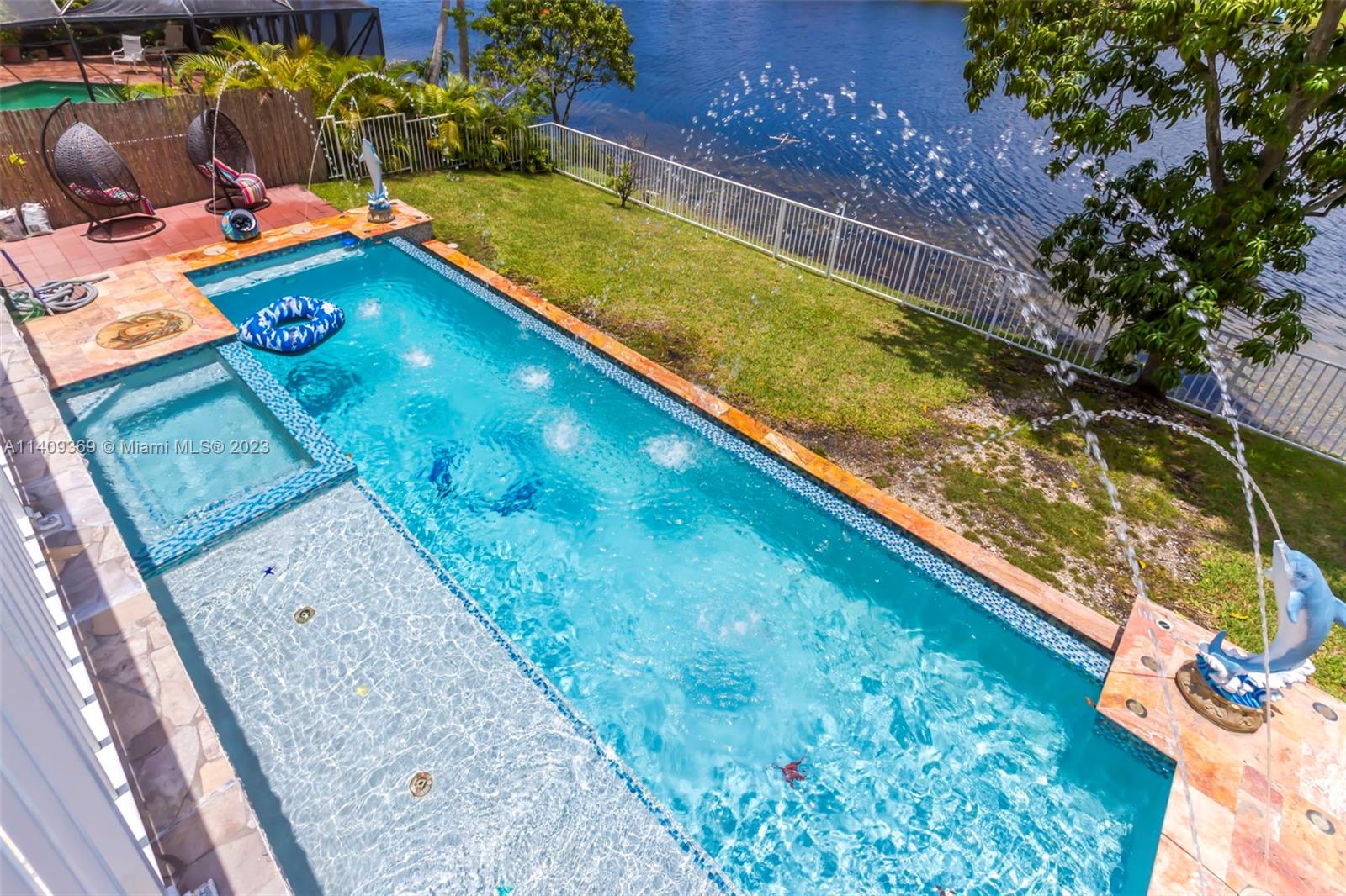 Stunning 4 bed+ office, 3.5 bath home with an oversized modern pool overlooking the lake in the gated community of Silver Lakes! This home has been completely upgraded from top to bottom! All new wood flooring on the lower level, stairs, upper level & a new wrought iron stair railing. Large gourmet kitchen with new hardwood cabinetry, quartz countertops, decorative backsplash & large center island. All bathrooms have been completely upgraded modern style! Oversized primary suite with a huge sitting area, private balcony & custom built-in closets. The backyard feels like a resort, featuring a large smart infinity pool, jacuzzi, covered patio, and fruit trees all overlooking the peaceful lake! Both A/C's updated in 2016!