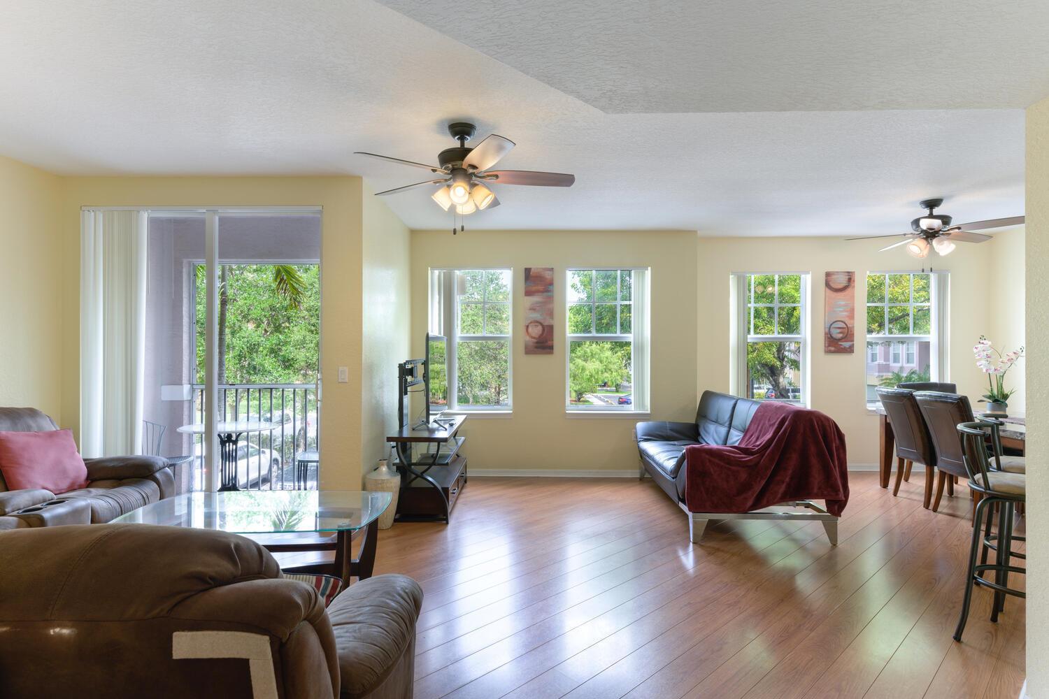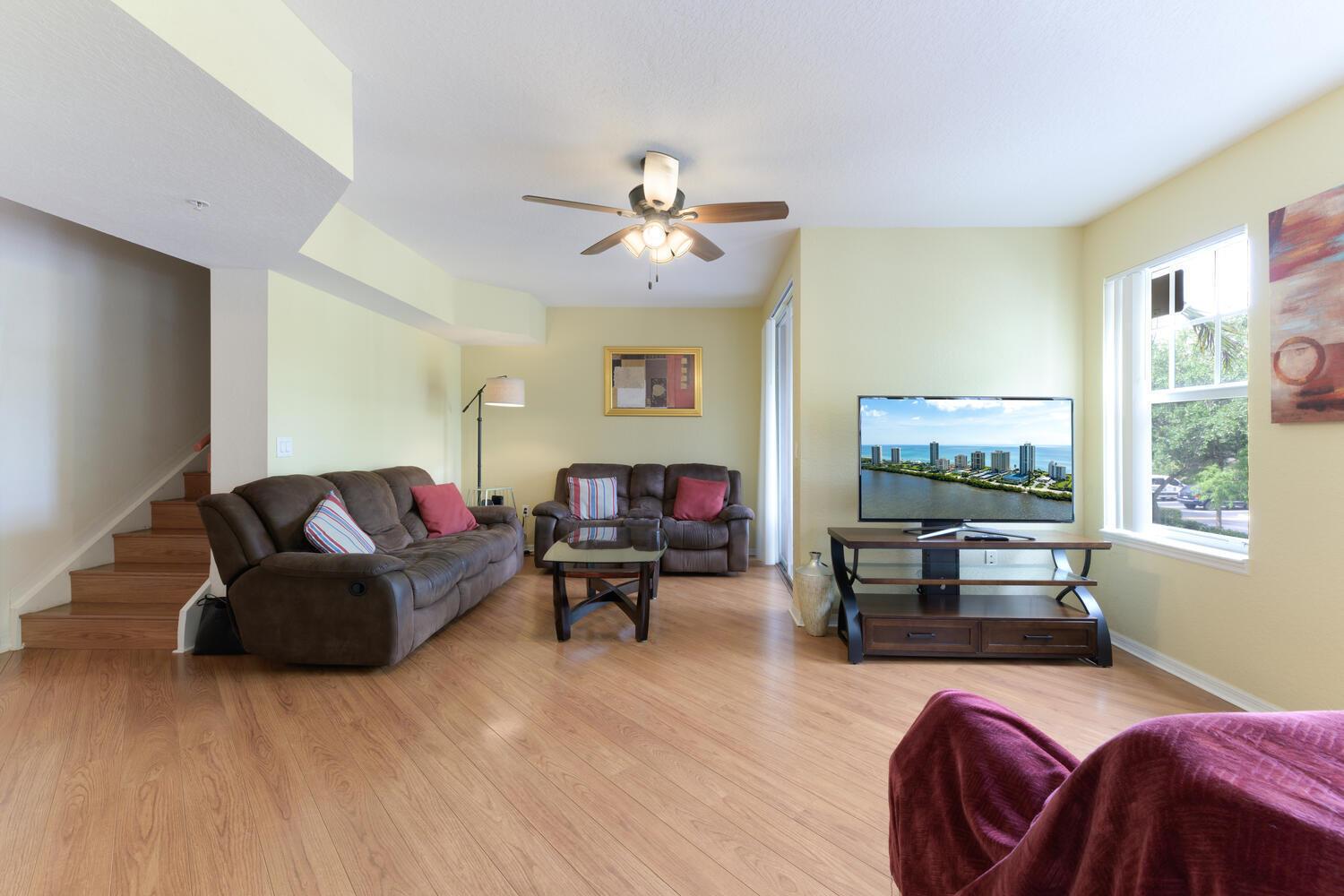 Nestled in the gated community of Cypress Pointe, this townhome offers 3 Bedrooms & 2.5 Baths with attached one car garage. It features wood floors throughout, granite counters, breakfast bar, newer stainless-steel appliances and impact windows. The kitchen's open concept is made to entertain as it seamlessly incorporates both the dining and living area. This main level also offers the laundry area (full size washer & dryer) and powder to ensure privacy upstairs. The top floor hosts all three bedrooms with their walk in closets. Amenities include resort style pool, spa, clubhouse, gym, basketball court and playground. Maintenance fee includes roof, sewer, trash, water and nighttime security. This centralized location in Coral Springs offers access to restaurants, shopping and major roads.