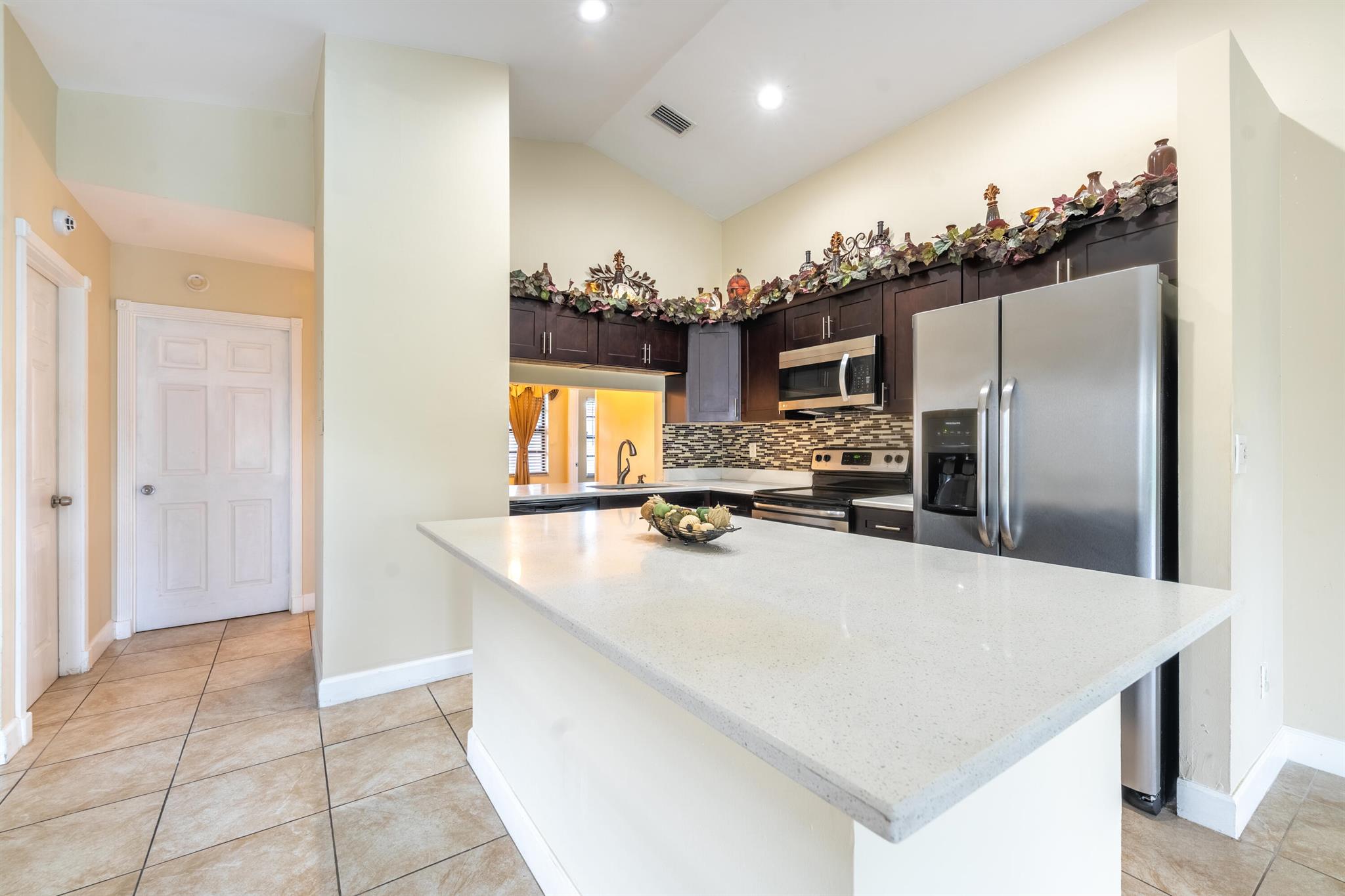 Move right in to this turn key ready open floor concept perfect for entertaining home...Home has a lot to fall in love with! Split plan lakefront home with over 1600 square feet of living area. Featuring remodeled unit with tile in the living area and wood flooring in the bedrooms, custom built island in the kitchen with new stainless steel appliances. In service counter into the family room. ADT home security system installed Samsung washer and dryer included.