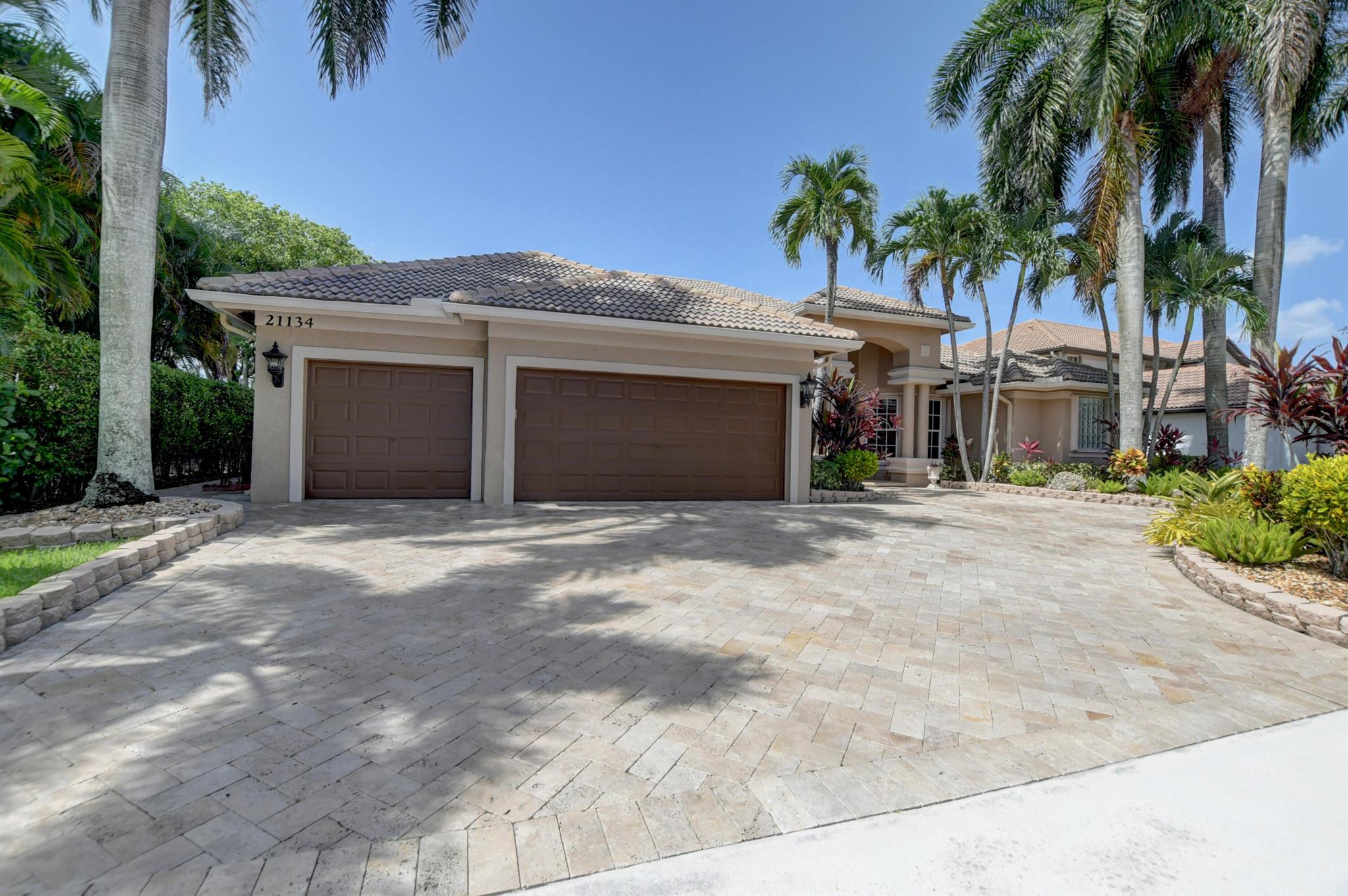 This exquisite Lake View 5 bedroom, 4.5 bath single family home located in the luxurious Estates at Boca Falls is the stunning architectural masterpiece you have been searching for. The spacious corner lot provides plenty of room for entertaining and a backyard oasis featuring oversized pool/jacuzzi, an oversized circular travertine driveway and lush landscaping. It features 21x21 Italian tiles throughout and a Master Suite that includes his and her closets with built in shelves. The Master bath includes a tub and shower for ultimate relaxation and a jacuzzi. The interior of the home offers soaring ceilings, crown molding and plantation shutters.
