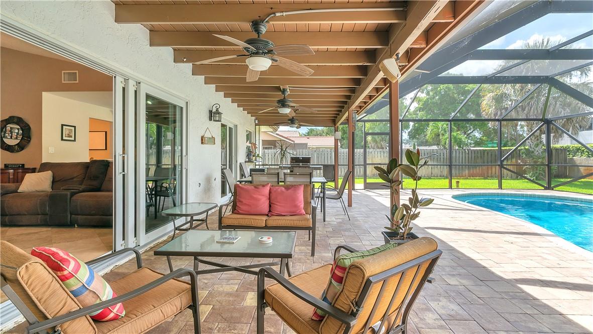 INCREDIBLY UPDATED LARGE 4/2 model with 2,330 under air! MOVE IN BEFORE SCHOOL STARTS!!! Warm traditional styling with travertine & porcelain plank flooring, large baseboards, neutral tones throughout entire home and impeccably maintained. Semi-open concept with formal living & dining areas. Kitchen remodeled with all new Whirlpool appliances 2022. Bathrooms completely remodeled. ALL impact doors, windows & garage. Fully enclosed pool resurfaced & tiled 2018 with heater, paver deck, LED light, salt system and huge enclosed covered patio with exposed beam ceiling. Paver driveway, walkway & front porch. Over 1/4 acre yard fully fenced. WiFi sprinklers, lighting, outlets, locks, thermostat, HQ surveillance, fire, burglar, automation. Walk to school! Near mall, restaurants, grocery, beach...