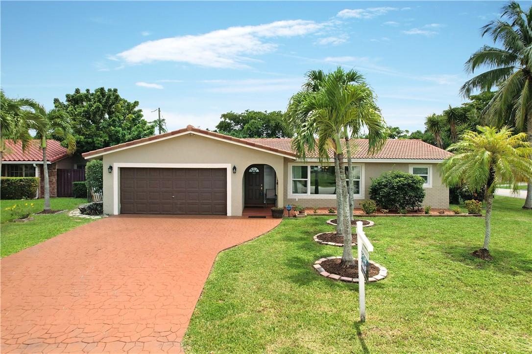 Great opportunity to own this Wonderful 3/2 corner lot pool home in Coral Springs. NO HOA...just under 1900 sq ft. Nicely landscaped with many palm trees. Split bedroom floor plan with living room, dining room, and breakfast area just off the kitchen. Nice size Bedrooms with double closets. Crown moulding in the main areas. Kitchen has SS appliances, granite countertops with tile backsplash. Laminate flooring and carpeted bedrooms. Bathrooms have granite countertops, one of which is a cabana bath. Storm window protection with the exception of the sliders. Enclosed back patio leads to the fenced in backyard pool area with newly constructed pool deck. Security system. Exterior has been recently painted. Roof 2010. 2 car garage.
