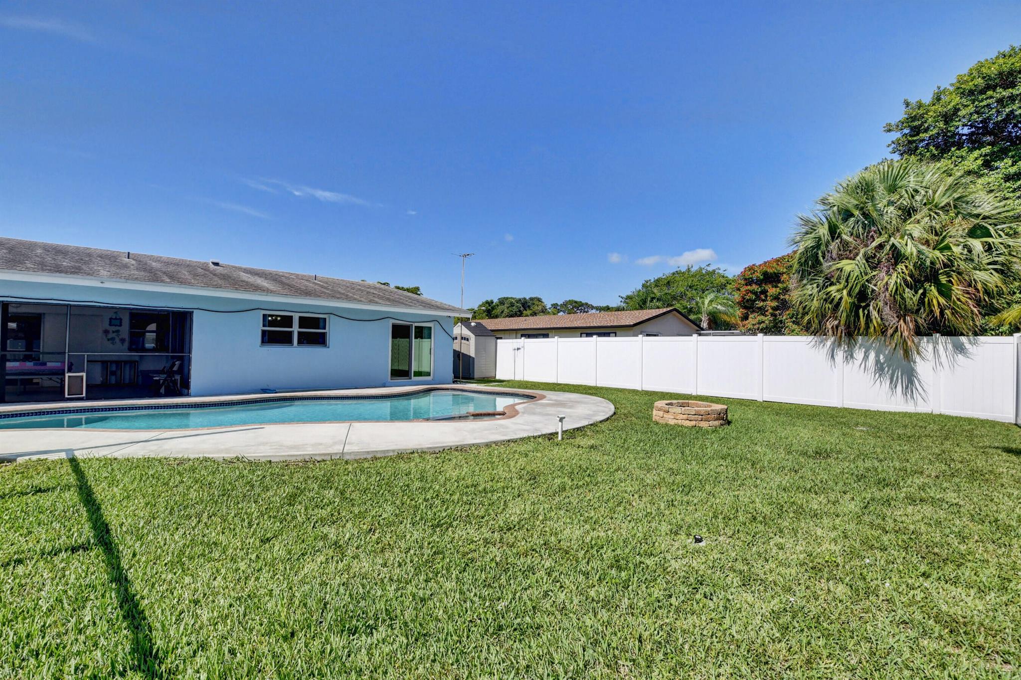 Boca Square 4 bedroom house on an oversized lot with room for everything! Poured concrete parking for RV, boat, trailer-bring them all! East side has 87' parking behind the fence, West side has another 22' poured concrete slab. No need to pay storage or marina fees. Huge pool w/8' depth, fenced yard, large kitchen has newer stainless steel appliances, generous counter space & opens to family room. Laminate flooring throughout. Houses has full hurricane protection including garage door. This is a wonderful area of Boca Square w/no cut through traffic, close to Sugar Sand Park, zoned for Addison Mizner K-8 school. Only a couple of miles from downtown and the beach. No HOA