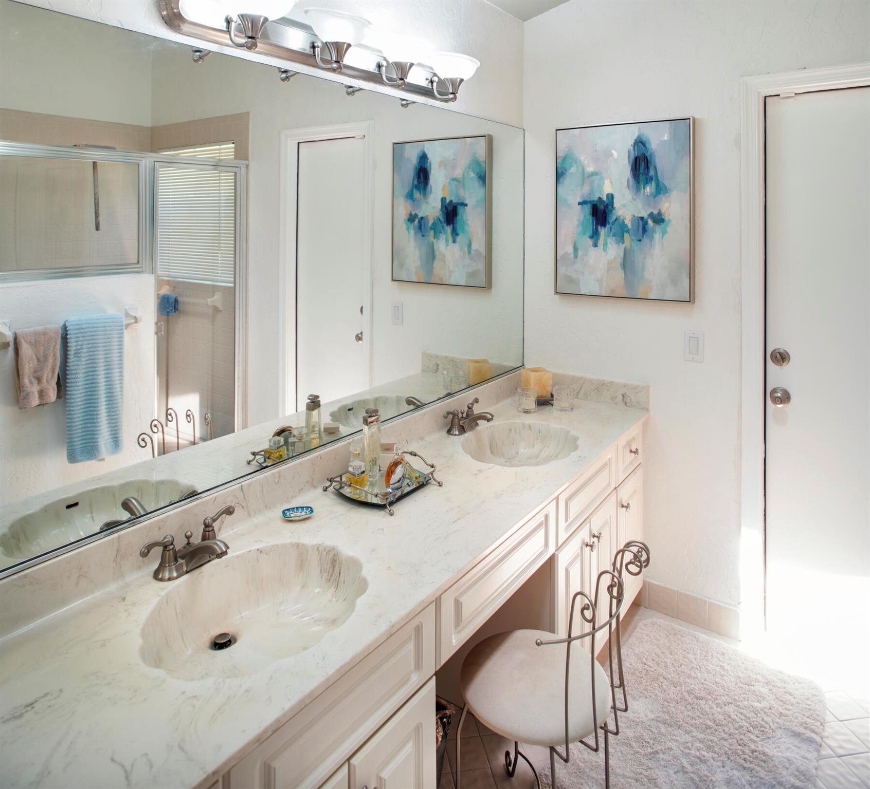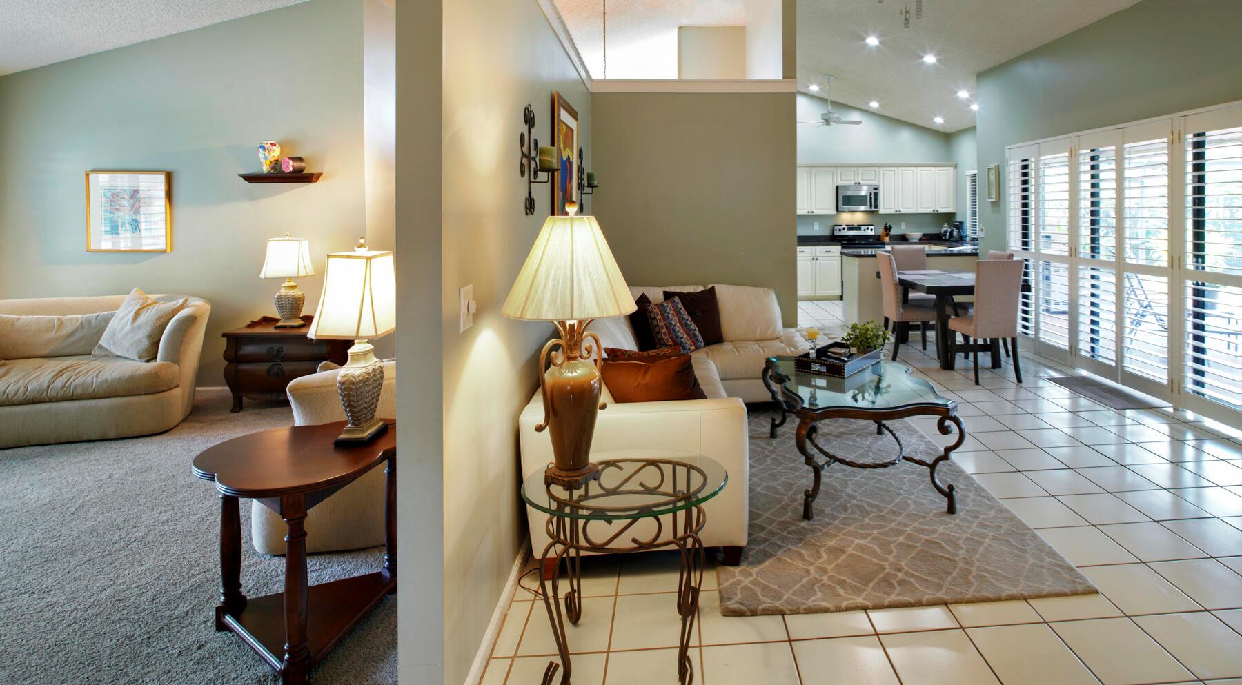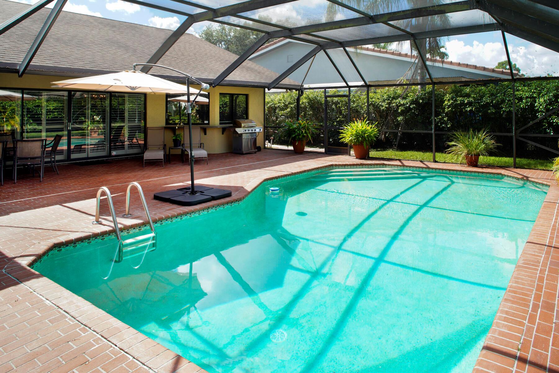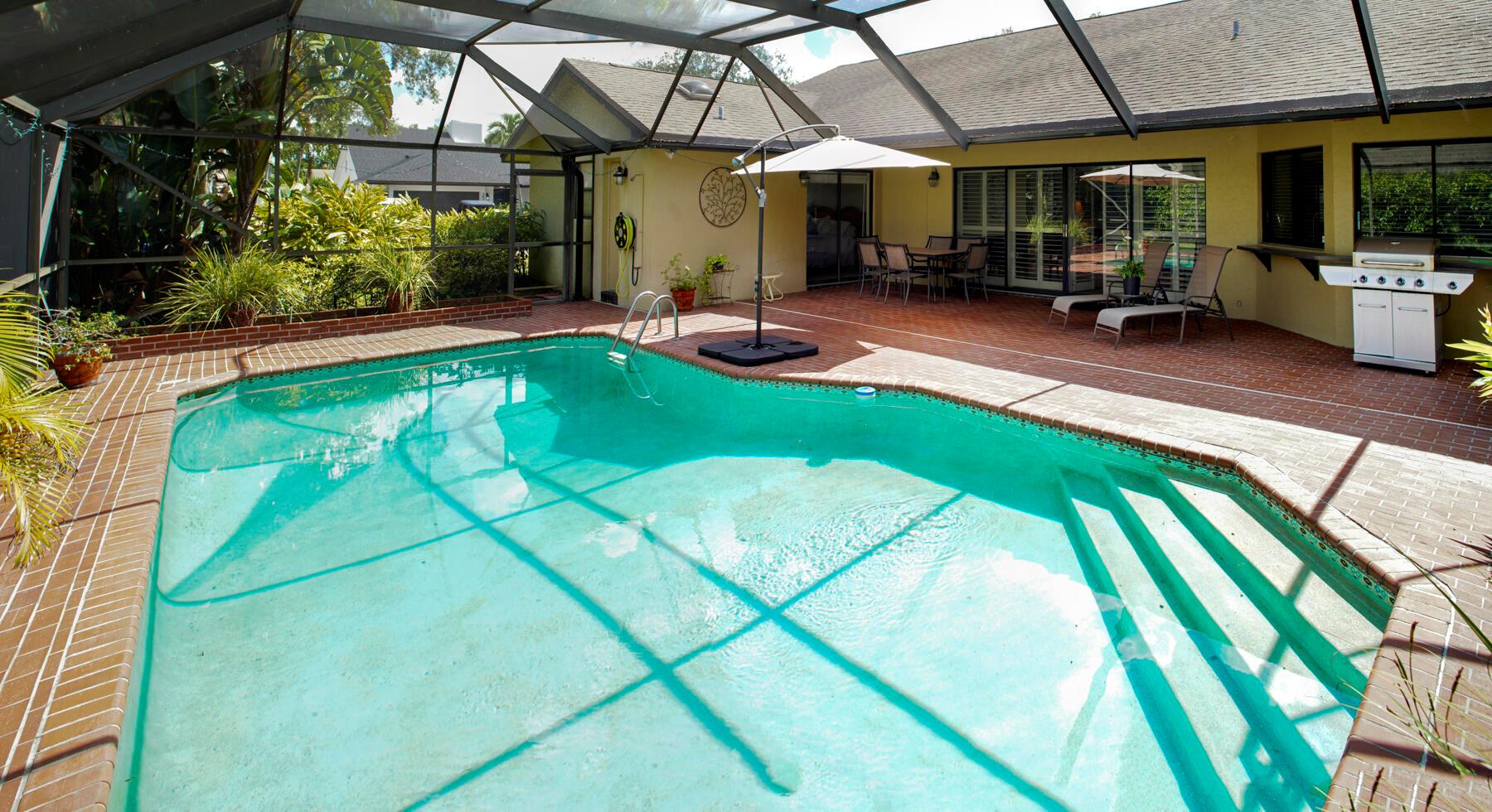 Rare, must see, ''corner'' home in the tree lined Strathmore neighborhood. Lush landscaping and an inviting outdoor entryway opens into a flowing floor plan with cathedral ceilings. Enjoy tranquil pool views and sunsets from your kitchen, family room and master bedroom. This brick 4 bedroom home has sturdy bones and is full of exciting possibilities to create your dream home. Great location, Great A+ schools, low HOA, a perfect opportunity to call this your home. Minutes to Town Center Mall, many restaurants, Mizner Park, and the beaches.