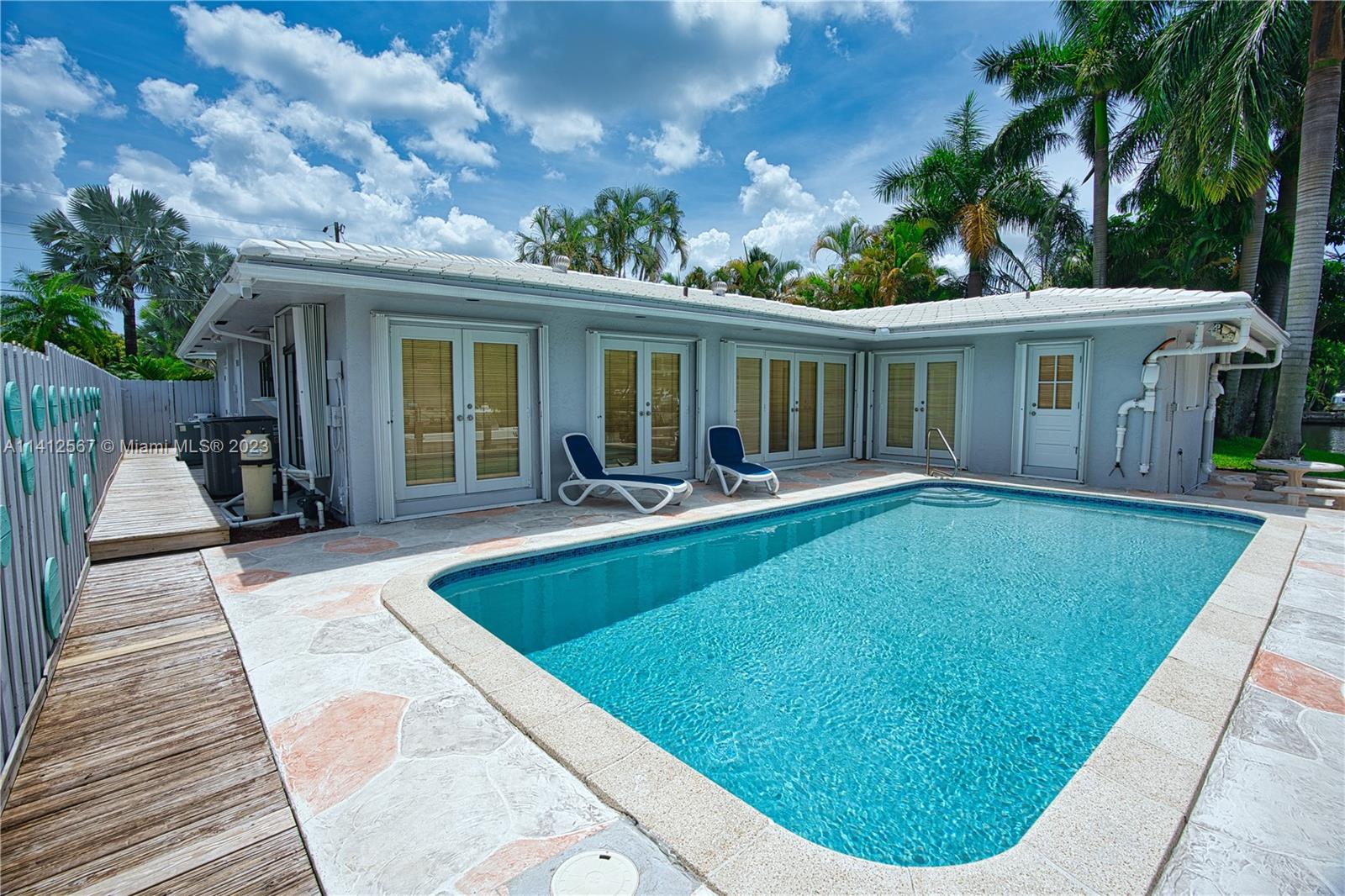 BEAUTIFUL WATER VISTAS 3 BEDROOMS 2 FULL BATHS, 107' SEAWALL, BOAT LIFT 8800 LBS, NEW 50 AMP DOCKSIDE POWER PEDESTAL, 4 WATER FAUCETS, DEEP WATER DOCKAGE 7' 4" HIGH TIDE, NO FIXED BRIDGES- DIRECT ACCESS TO THE INTRACOASTAL WATERWAY AND THE OCEAN, SPARKLING RENOVATED HEATED POOL. Brand New Air Conditioning System July 2023. Open Water Vistas is like going to the Boat Show every day. Easy Maneuvering for Docking Large Motorboats or Fixed Keel Sailboats because of the Wide South Fork New River Location. Dock can be expandable both ends. This is an Excellent Southeast Florida Location, Minutes to Downtown Fort Lauderdale and the Fort Lauderdale Airport. Close to Miami and Miami International Airport as well. FEMA MINIMAL FLOOD FACTOR 1-HOME HAS NEVER FLOODED. FLAMINGO PARK PARADISE AWAITS!