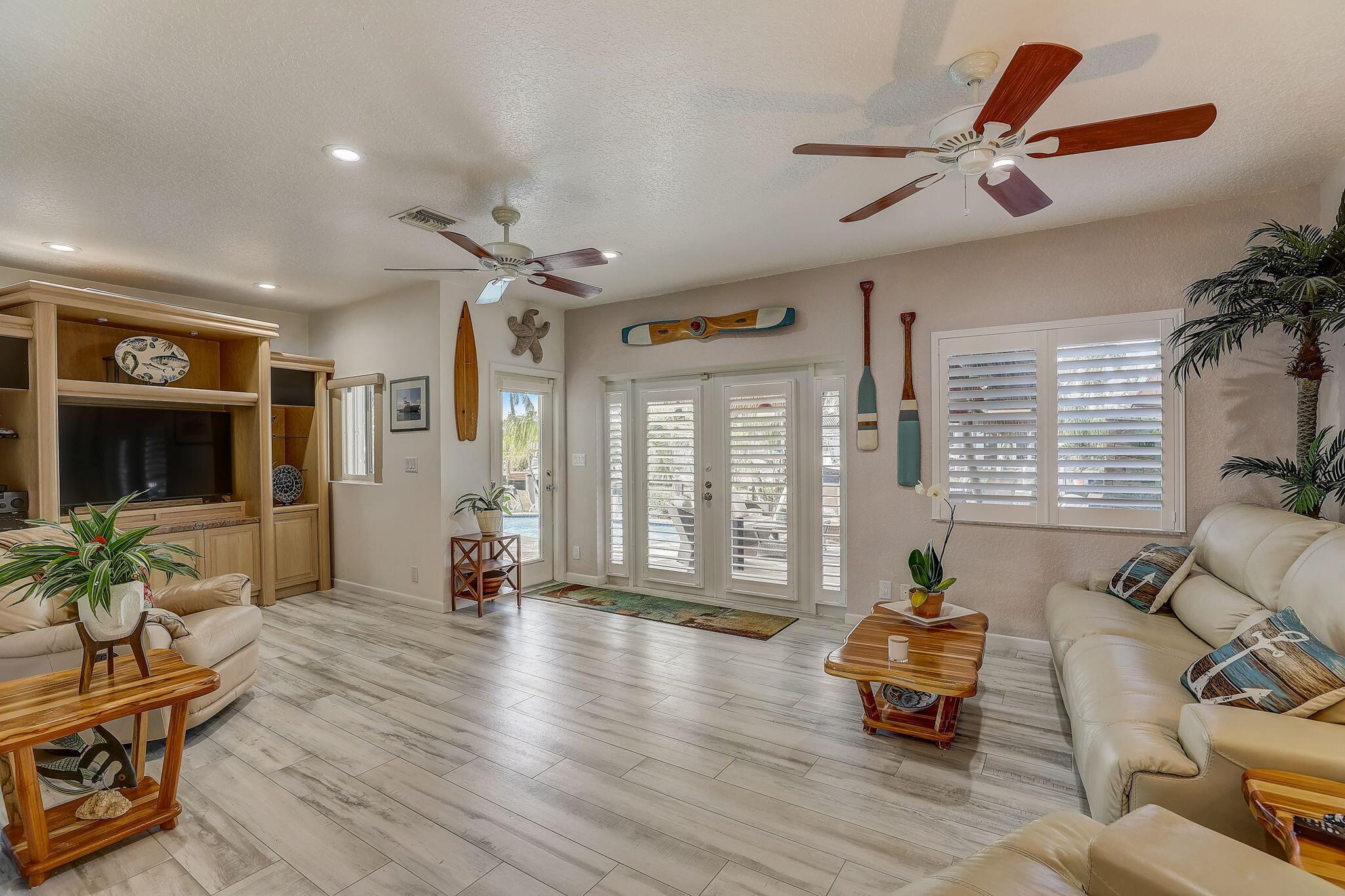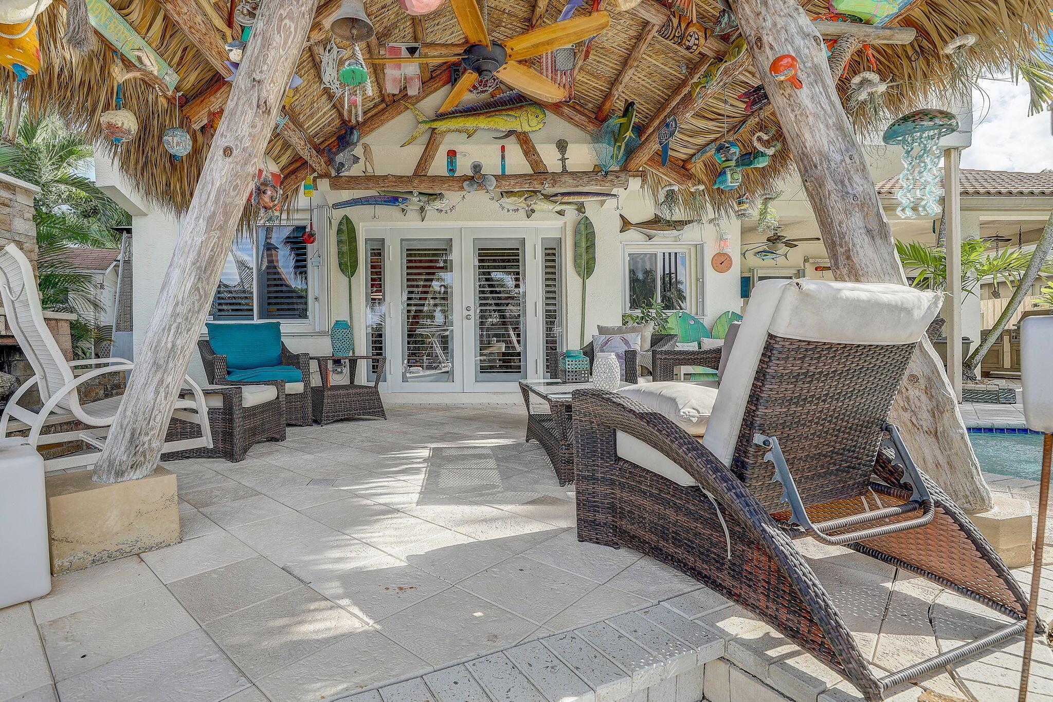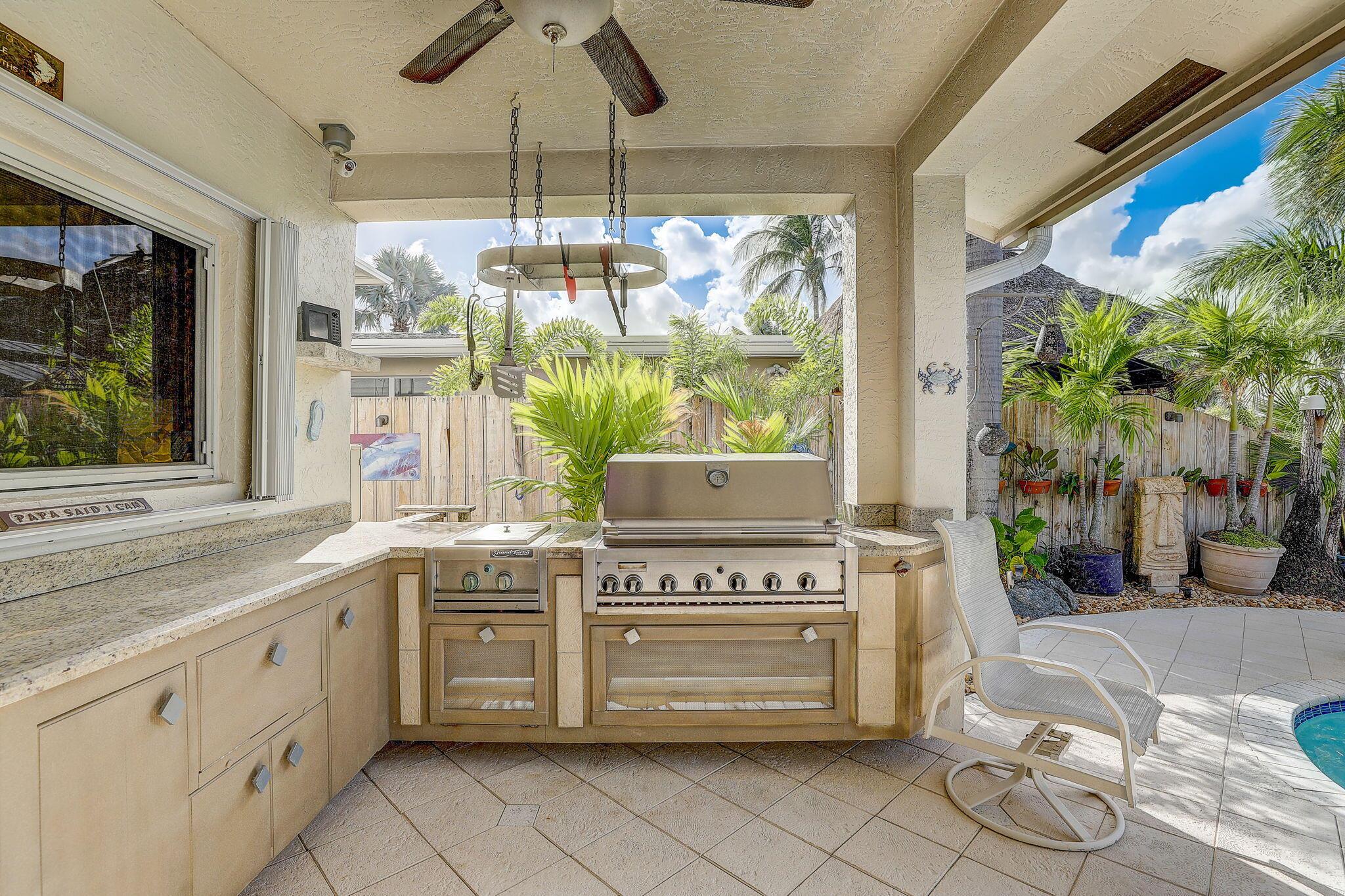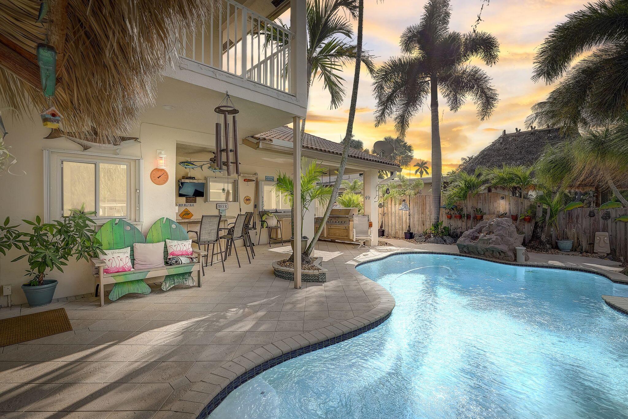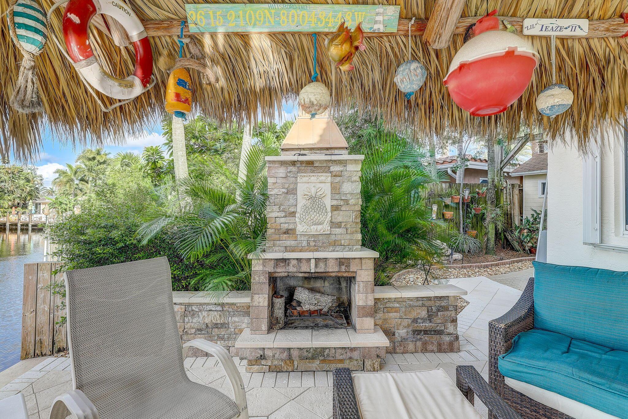 WATERFRONT CUSTOM BUILT HOME / ROOF 2006 / TWO AC: Main Floor = 3yrs / Master = 7yrs. OUTSIDE is private OASIS, TIKI SITTING AREA, full bar, outdoor kitchen, fishing station, HEATED POOL w/ natural gas, and a real fireplace! Acclaimed CYPRESS HARBOR. SPACIOUS OPEN CONCEPT: Living Room, Dining Room, Family Room & gas fireplace, 10' CEILINGS. Amazing detail w/walls of large windows and sliders to make it light and bright; recessed lighting, gorgeous 2-tier granite kitchen peninsula, tons of cabinets, kitchen pantry. PRIVATE MASTER SUITE: 30'x20' w/10' ceilings, 2 private balconies, 2 walk-in closets, double sinks and showers, oversized Jacuzzi tub; separate AC Zone; 4 Camera SECURITY SYSTEM. The plans for Pompano Beach improvements are already approved by the City and HOME VALUES WILL...