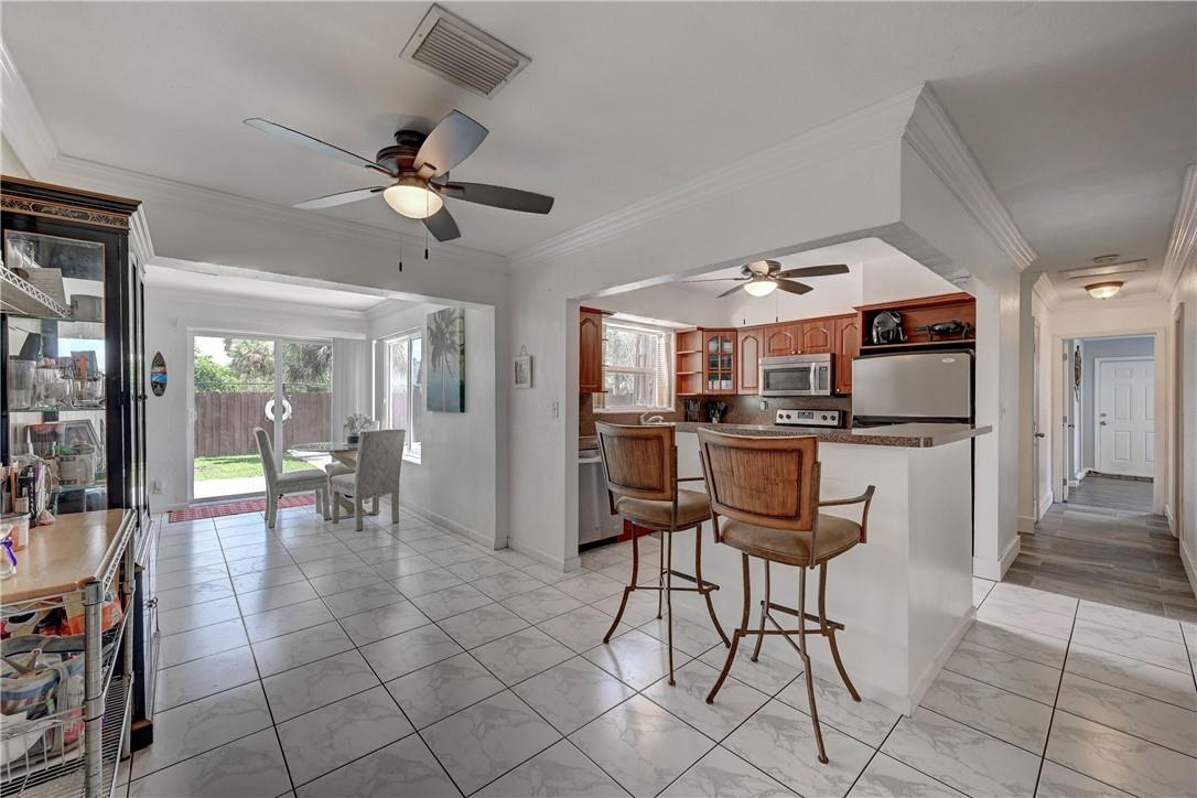 Charming 2 bed/2 bath home w/ pool and bonus room. Recently appraised $483K! This comfortable residence features hurricane impact windows and doors throughout. The interior boasts a delightful enclosed sunroom under AC. This home offers a cozy and inviting atmosphere with a functional layout. You will love the large primary bedroom with its double sink primary en suite bathroom and a walk-in closet with custom built out shelving. Take advantage of the refreshing pool for those hot summer days. Don't miss out on this affordable gem, now priced below appraisal! Sq Ft to be verified by buyer. NOTE: Still taxed as 3/2 - a former owner combined two small bedrooms into the large primary suite. One could easily add AC to the already enclosed carport bonus room to make a 3rd bedroom.