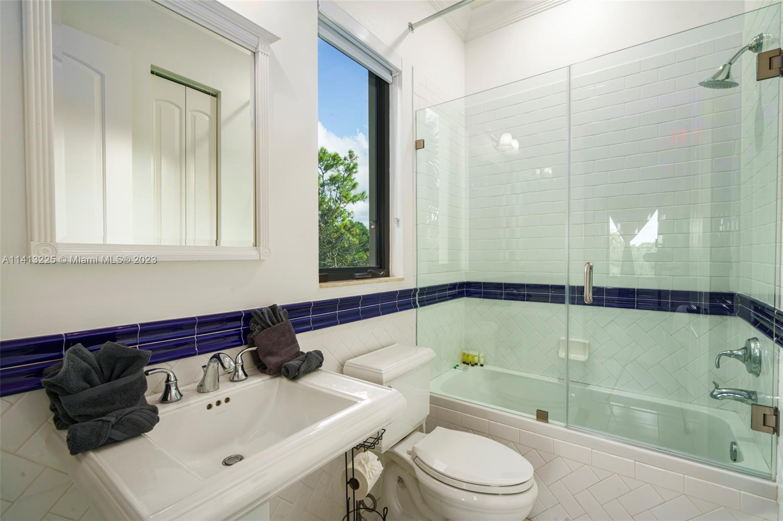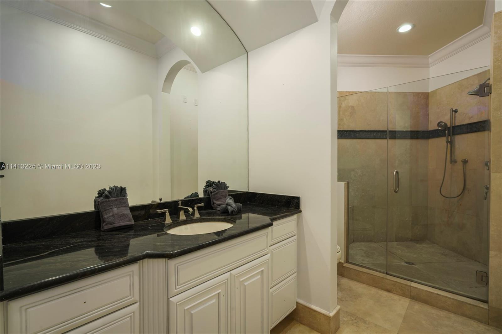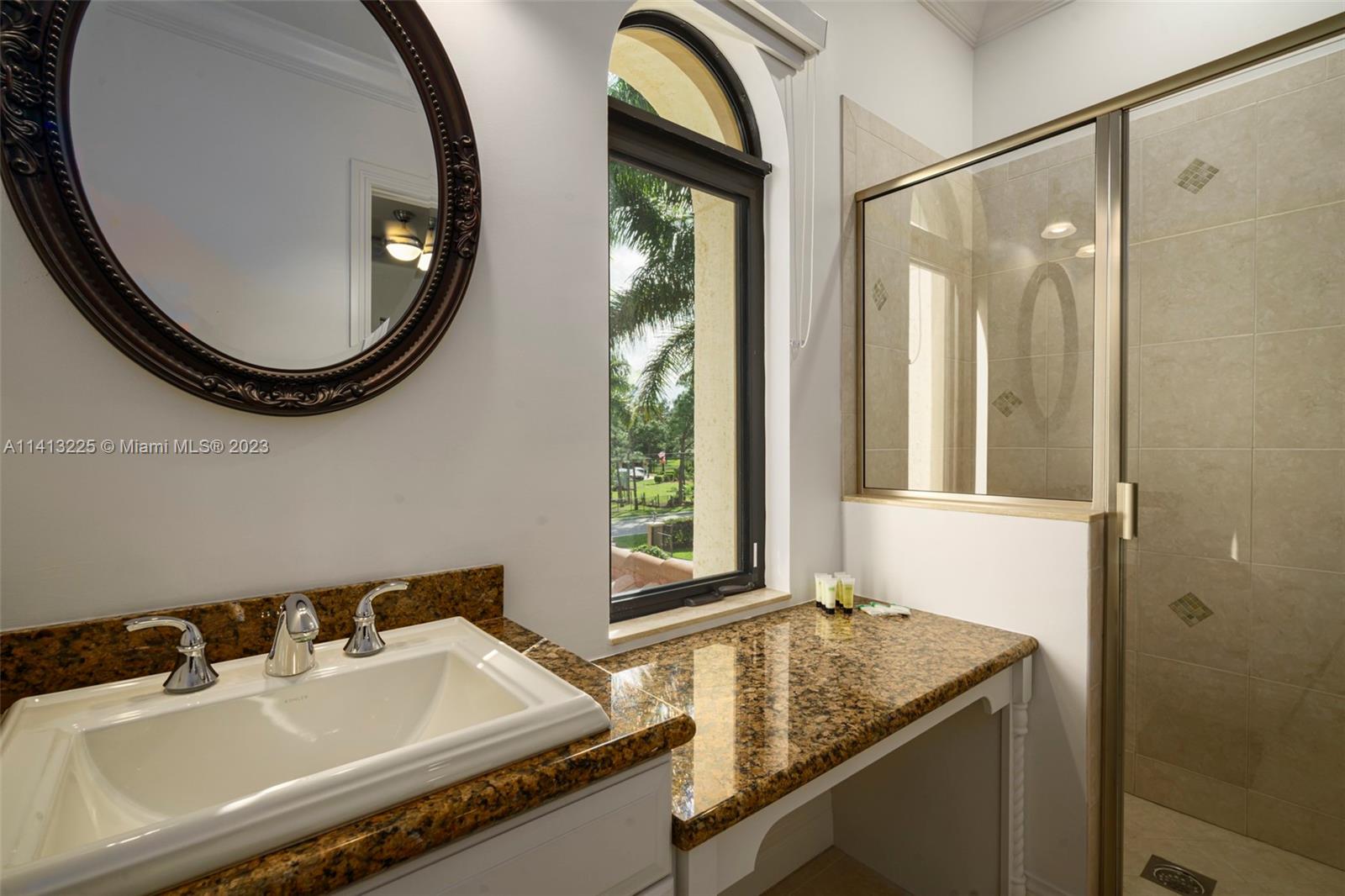 Spacious 6,000 sq ft modern home on 1.16 acres. 8 bedrooms, 5 bathrooms, cinema, game room, private outdoor paradise. Custom Mediterranean design with luxurious features. Twin bridal staircases, courtyard, pool with spa. Equipped chef's kitchen, wood cabinets, granite counter, breakfast bar. In-law/nanny suite, cabana bath, office, wet bar. High ceilings, laundry. Upstairs with separate wings, ensuite bedrooms. King-sized primary suite with sitting/office area, balcony. Custom walk-in closet, palatial bath. Impact windows, sliders. 5,848 sq ft home with 3 zones, 4 HVAC units.