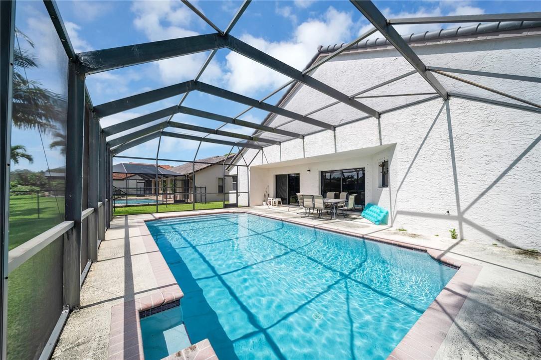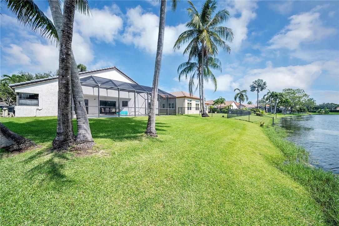 This comfortable home is located in the wonderful neighborhood of North Orchard. Only one entrance this quaint circular street is known as kid & pet friendly, hidden from traffic. This home is situated on a huge rarely available, preferred east facing waterfront lot, capturing prevailing SE breezes. This Custom Designed Home features a Bright & Open Concept, a perfect decorator ready floorplan. The Chef's Kitchen features Plenty of Counter Space & Breakfast Bar, opens to a Vaulted Great Room. Formal Dining Room flows thru the Living Room. Master Suite boasts an impressive layout & Vaulted Ceilings, spacious walk-in closet. The roomy Master Bath offers a Separate Shower & relaxing Garden Tub. Sparkling Pool, new pool heater, new screened patio, a Peaceful Lakeside setting**New roof '21**
