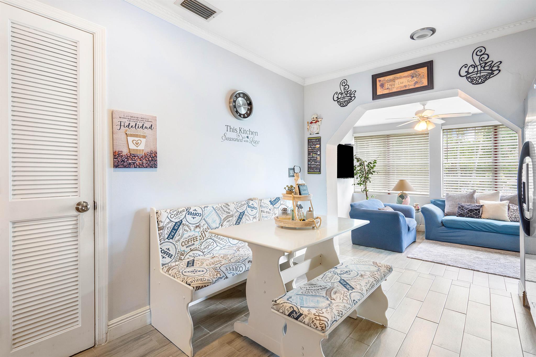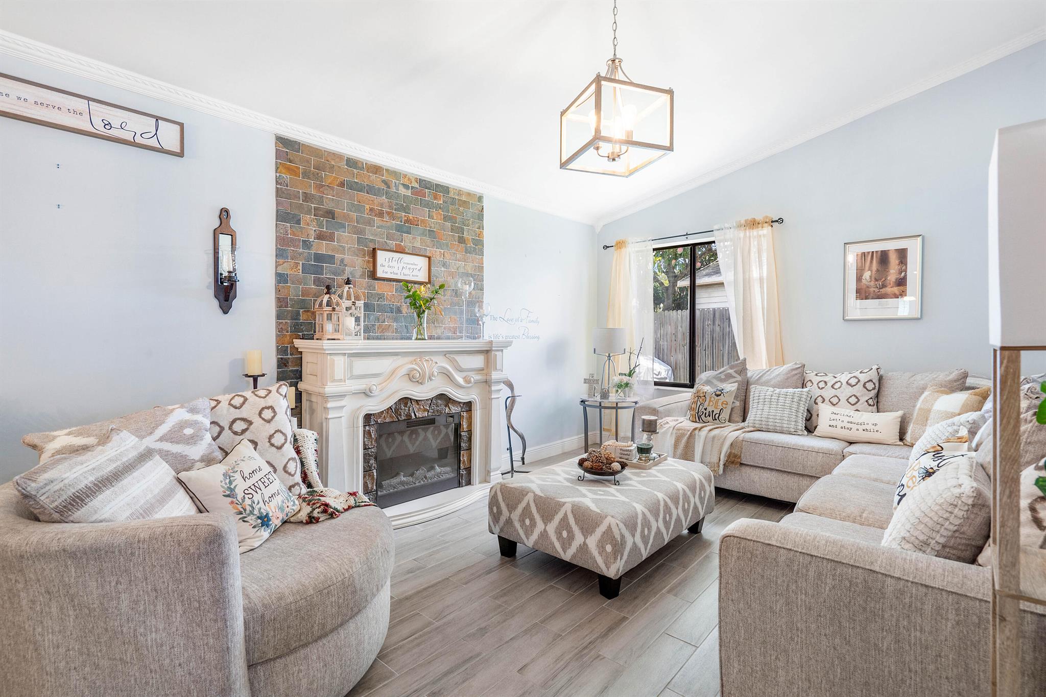 Check out video! Welcome to this charming estate situated in a warm and welcoming neighborhood, nestled on a peaceful cul-de-sac, ensuring a serene and private environment. As you approach, you'll be greeted by a spacious porch, perfect for enjoying the outdoors. Inside, this delightful home boasts tiled flooring throughout and underwent a tasteful remodel just three years ago. The master bedroom, located at the front of the house, offers both comfort and privacy with its own luxurious private bathroom suite and double closets. The living area features a lovely fireplace, which is included in the sale, creating a cozy ambiance. Adjacent to the living area is a formal dining room, ideal for hosting gatherings and accommodating a large table.