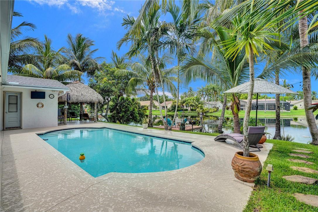 Escape to your own tropical paradise! This beautiful 3BD, 2BA pool home in highly coveted Plantation is a true gem. Situated at the edge of a serene lake, this home offers unparalleled tranquility & has been thoughtfully upgraded for a perfect blend of comfort and style. The new roof, impact glass & newer appliances provide years of worry-free living, while the fully updated interior completes the package. The large Florida room offers extra living/office space with natural light & panoramic views of the beautiful surrounding. Soak up the Florida sunshine on the new pool deck, fish from your private dock or lounge under the tiki hut. Palm trees, fruit trees & lush landscaping surround this is ultimate space for creating lifelong memories. Close to shopping/dining/entertainment.