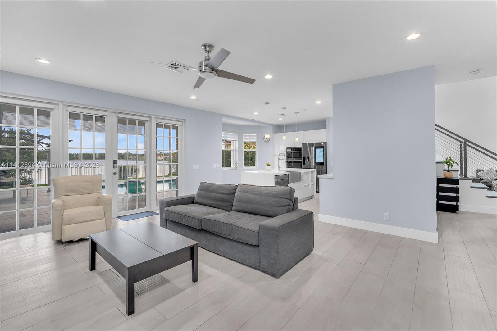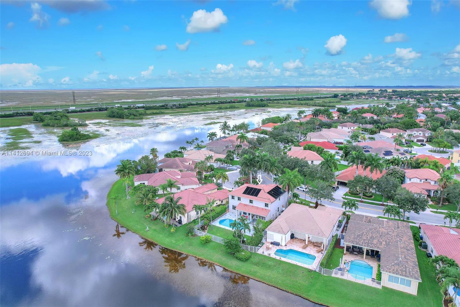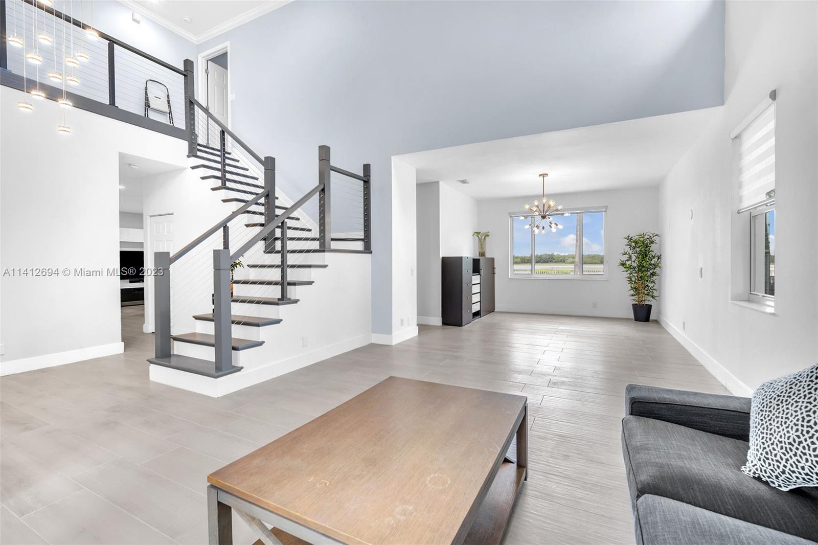 This beautiful, modern 4bed 2.5bath smart home has spectacular lake views on west side. The rustic, fruited entrance with rocks & orchids leads into an open, 20' ceiling, well lit living/dining area with stunning chandeliers that showcase the wood & metal staircase. To your left is a large family area next to the kitchen & b/fast nook with quartz counters, state of the art Samsung appliances & cabinetry enhanced by a glass backsplash. The large master has a den + glass enclosed shower, with tub, double sinks, and finished dual closets. All bathrooms & closets have been refitted & all appliances are newer. Backyard has a pool, is well manicured, has Seegar Apple & Loquat trees + summer kitchen. Downstairs has ceramic, wood like tiles & upstairs is laminate. 5 parking spaces. A "WOW" home!!!