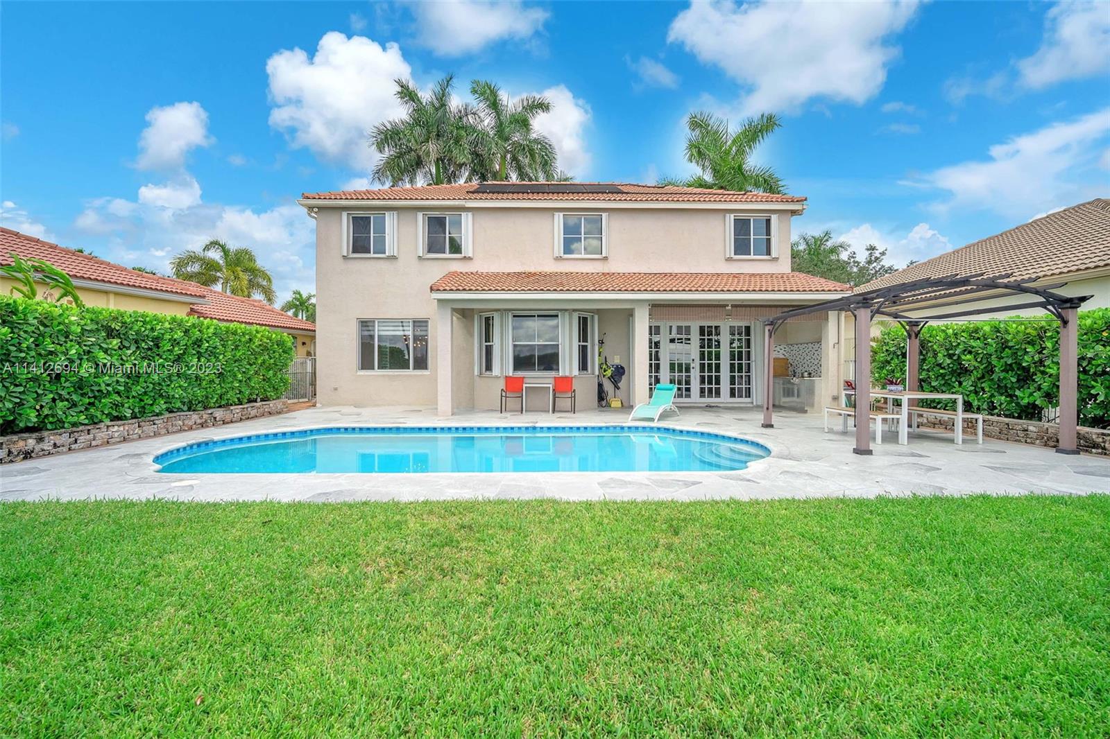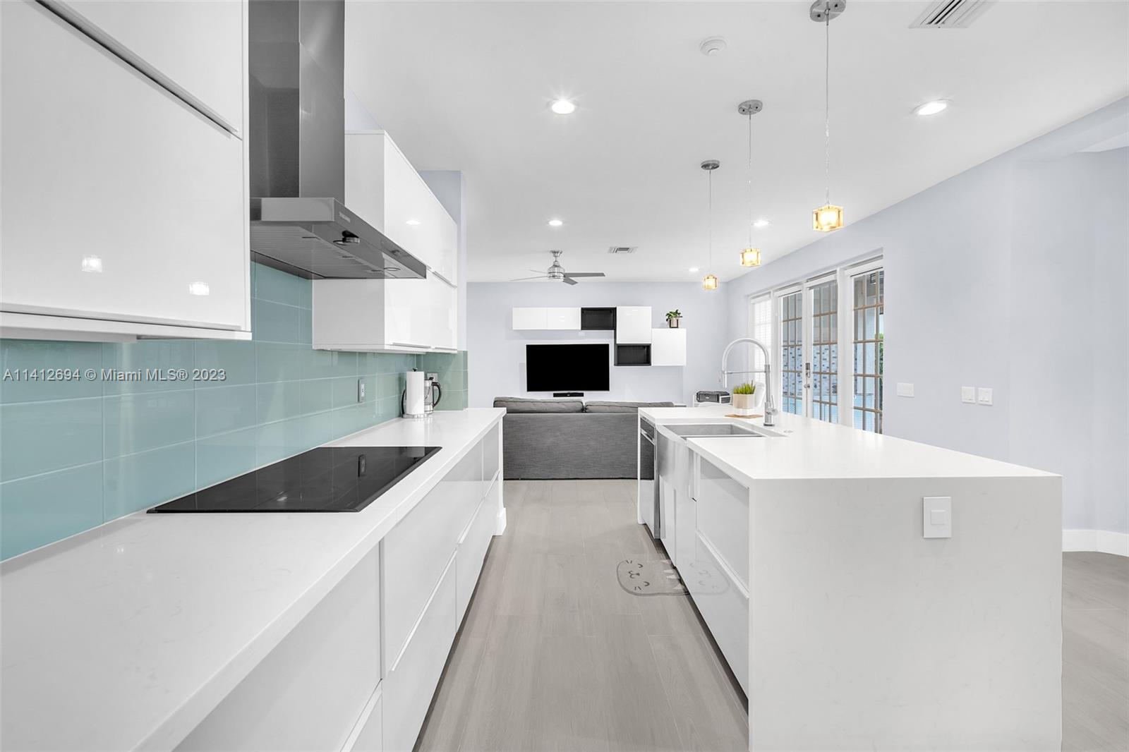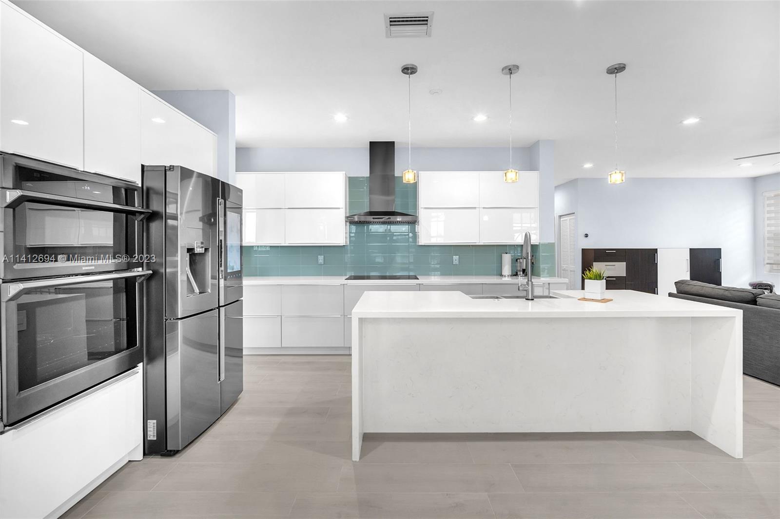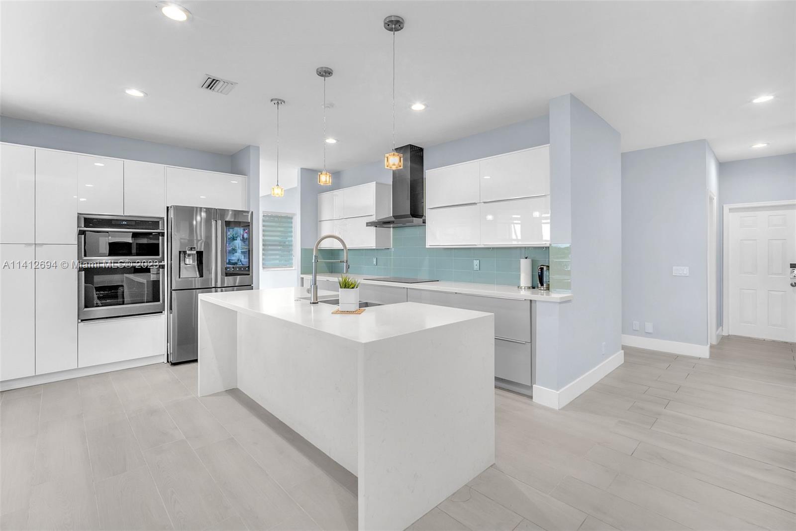 This beautiful, modern 4bed 2.5bath smart home has spectacular lake views on west side. The rustic, fruited entrance with rocks & orchids leads into an open, 20' ceiling, well lit living/dining area with stunning chandeliers that showcase the wood & metal staircase. To your left is a large family area next to the kitchen & b/fast nook with quartz counters, state of the art Samsung appliances & cabinetry enhanced by a glass backsplash. The large master has a den + glass enclosed shower, with tub, double sinks, and finished dual closets. All bathrooms & closets have been refitted & all appliances are newer. Backyard has a pool, is well manicured, has Seegar Apple & Loquat trees + summer kitchen. Downstairs has ceramic, wood like tiles & upstairs is laminate. 5 parking spaces. A "WOW" home!!!