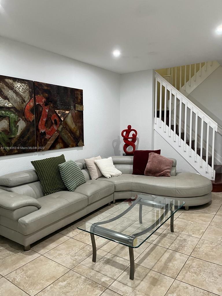 Beautiful townhouse for sale in Sonoma at Doral. Kitchen was completely remodeled with top of the line finishes, quartz countertop. Legal 4/3 currently a 3/3 with a small room in the garage that can be used as play area or bedroom. Full bathroom on first floor. Remodeled yard floor, fenced backyard. Laminate floor in stairway and second level. Family room upstairs. 2 parking spaces. Gated community with gate guard. Community has lowest HOA in all of Doral. Great location in Doral close to shopping centers, restaurants and more. Located in great school district.