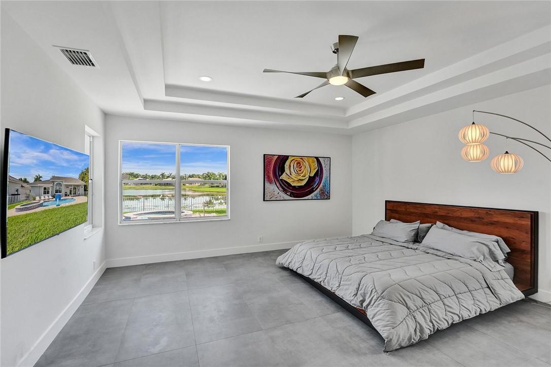 Exquisitely remodeled waterfront luxury stunner in the highly coveted gated community of Boca Falls with A+ schools. Incredible lake views sunrise to sunset overlooking a heated pool! Very private large lot. NEW ROOF! Immediately you'll be impressed by the massive ceilings and views. The spacious and bright layout continues throughout this home, featuring 5 bds & loft. Custom European gourmet kitchen with designer lighting & best materials around. Oversized Italian porcelain center island and top-of-the-line Bosch, Miele, and Sub-Zero appliances, custom cabinetry, and storage. Renovated cabana bath includes shower w/ frameless doors. Brand new W/D stack in the renovated laundry room. Gorgeous 24x48 Italian Porcelain tile main floor, new flooring, baseboards, doors throughout the home.