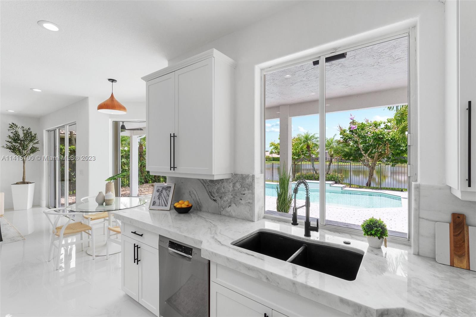 One of a kind masterpiece in Saturnia Capella, one of the most highly sought after communities in West Boca. Exquisitely and tastefully remodeled this home boasts 5BR and 4BA. Situated peacefully on a lakeside lot, the large swimming pool is accentuated by a charming pergola sitting area and personal putting green. Inside, high volume ceilings show off the open floor plan punctuated by gorgeous oversized porcelain floors. No detail has been overlooked in this stunning home. Full house Generac generator, smart home SONOS system, speakers throughout, thermostatic shower system panels in bathrooms, elegant modern LED lighting and fixtures. Main air handler is 2022 and is equipped with dehumidification system. Community clubhouse has pool, tennis courts, workout rooms and more.