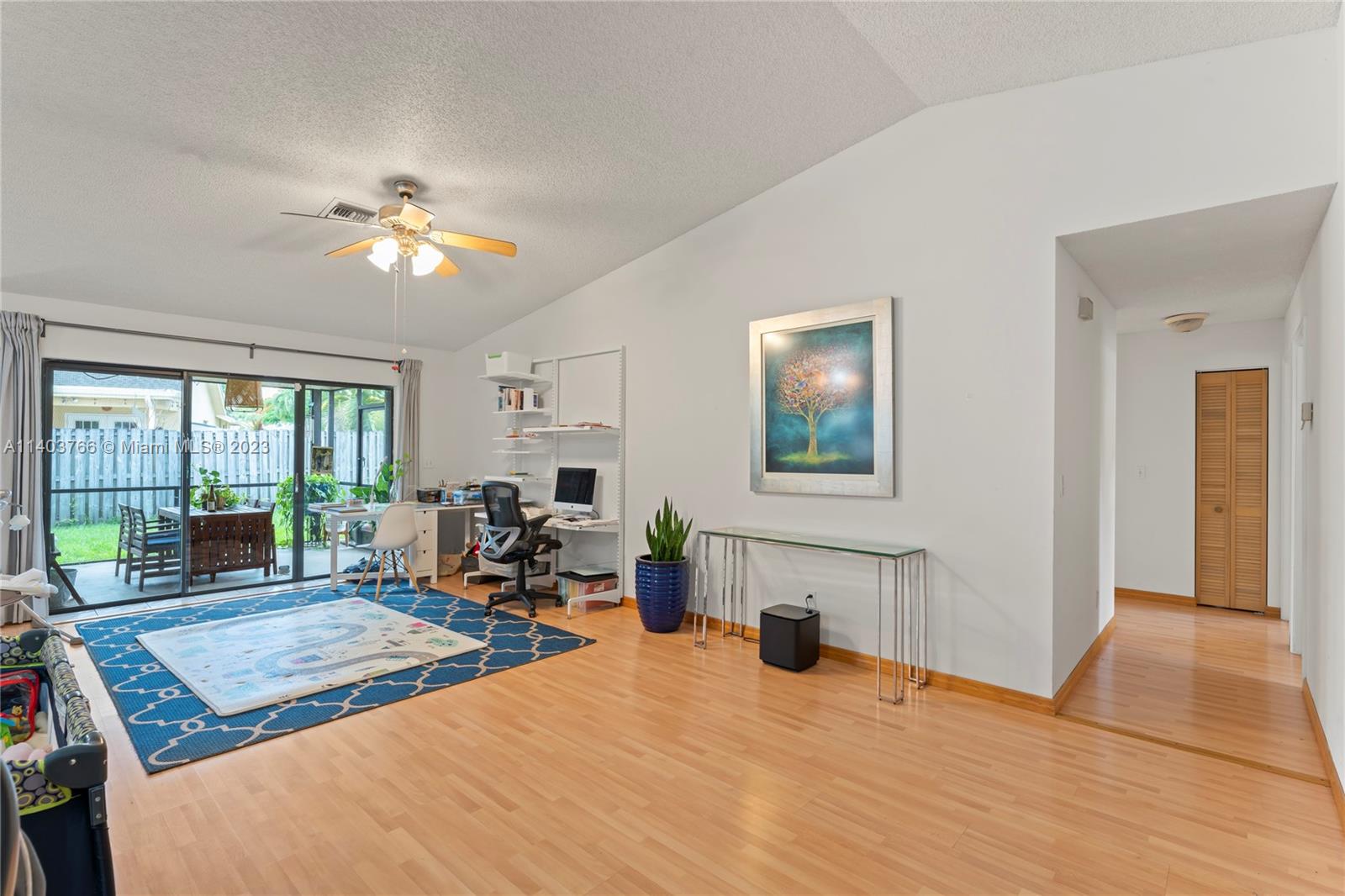 Welcome to this stunning one-story single-family home located in the quite neighborhood Isles of Welleby in West Sunrise, blocks away from Nob Hill. Spacious open floor plan with 3 bedrooms & 2 bathrooms and vaulted ceilings. Kitchen with ample counter space, custom cabinetry with beautiful countertops and main appliances. The backyard is fully fenced, with a screened patio, and a beautiful garden for you BBQ. Two-car garage for secure parking and storage and property is equipped with hurricane shutters. Situated in one of the most sought-after communities in Sunrise, you'll enjoy the tranquility of the neighborhood while still being within easy reach of shopping center. Schedule a tour today and prepare to be captivated by all that this remarkable house and location has to offer.