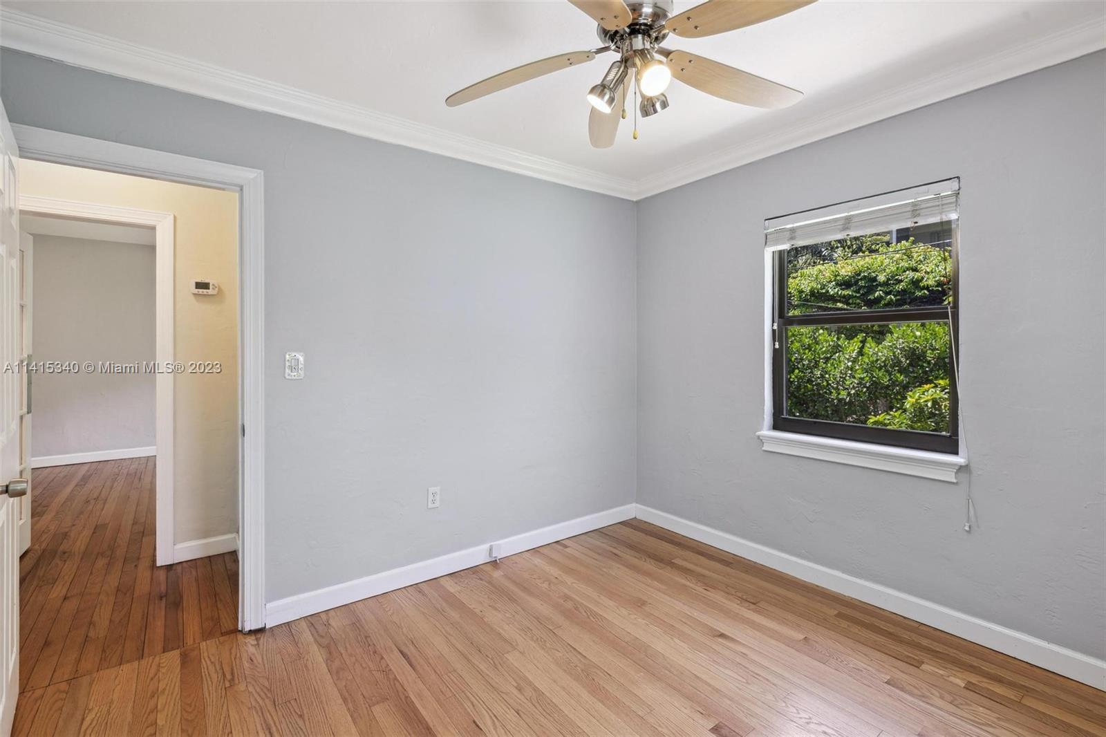 Absolute perfection and expertly maximized use of space in this immaculate Coral Gables charmer. Completely renovated with newer roof, impact glass windows and doors. Gorgeous kitchen with white cabinets, granite counters, and stainless steel appliances and under the counter lighting. Real hardwood floors and remodeled bathroom includes subway stile shower and newer vanity. Updated lighting fixtures and new AC 2023. Lush mature trees line the dead-end street. Large backyard perfect to entertain with mango and avocado fruit trees. Pristine one car garage includes washer and dryer. Walk to fine shops and restaurants off LeJeune. Best schools.