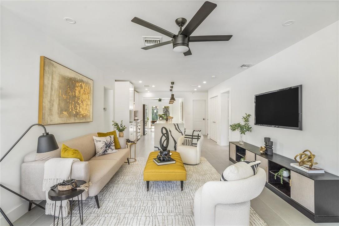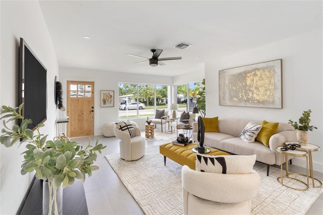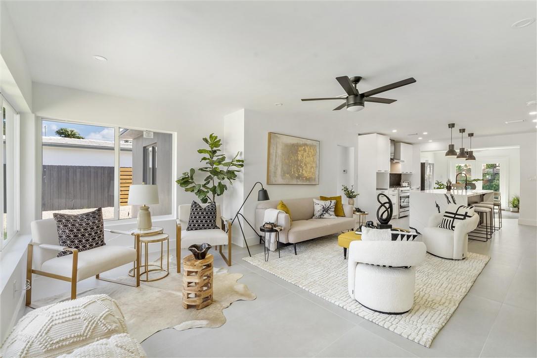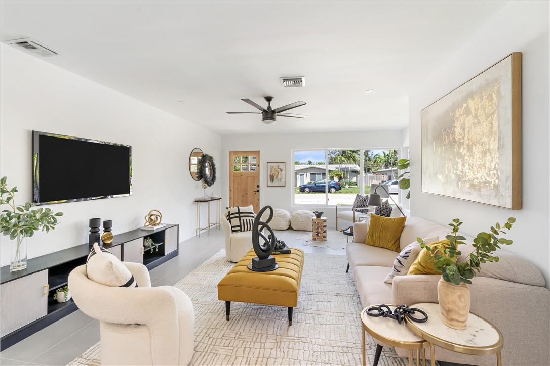 Luxury awaits in this 4-bed, 2-bath newly renovated home. Flooded with natural light, the open floor plan and chef's dream kitchen with a quartz island and modern cabinetry make for a bright and inviting space. The bathrooms and tiled flooring are all brand new, and impact windows and doors offer added security. Enjoy outdoor dining on the porch and patio with a view. Each bedroom has its own closet, and the master bedroom suite is a true retreat, featuring a unique master bathroom design with his and hers showers and a floating double vanity. Located just minutes from Las Olas and the beach, with easy access to amenities and shopping, this home is a must-see for those seeking modern living. Schedule a viewing today!