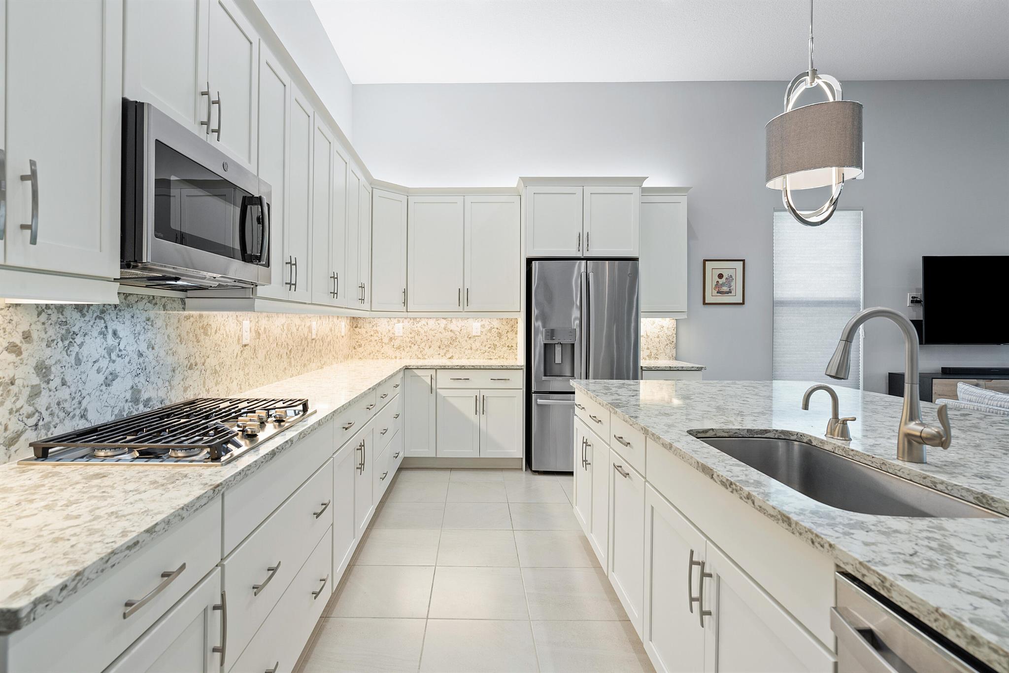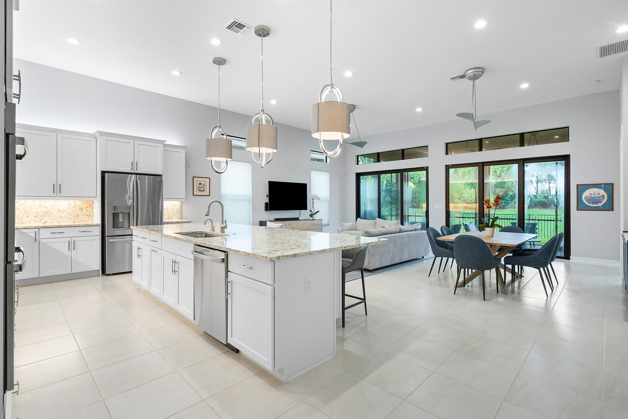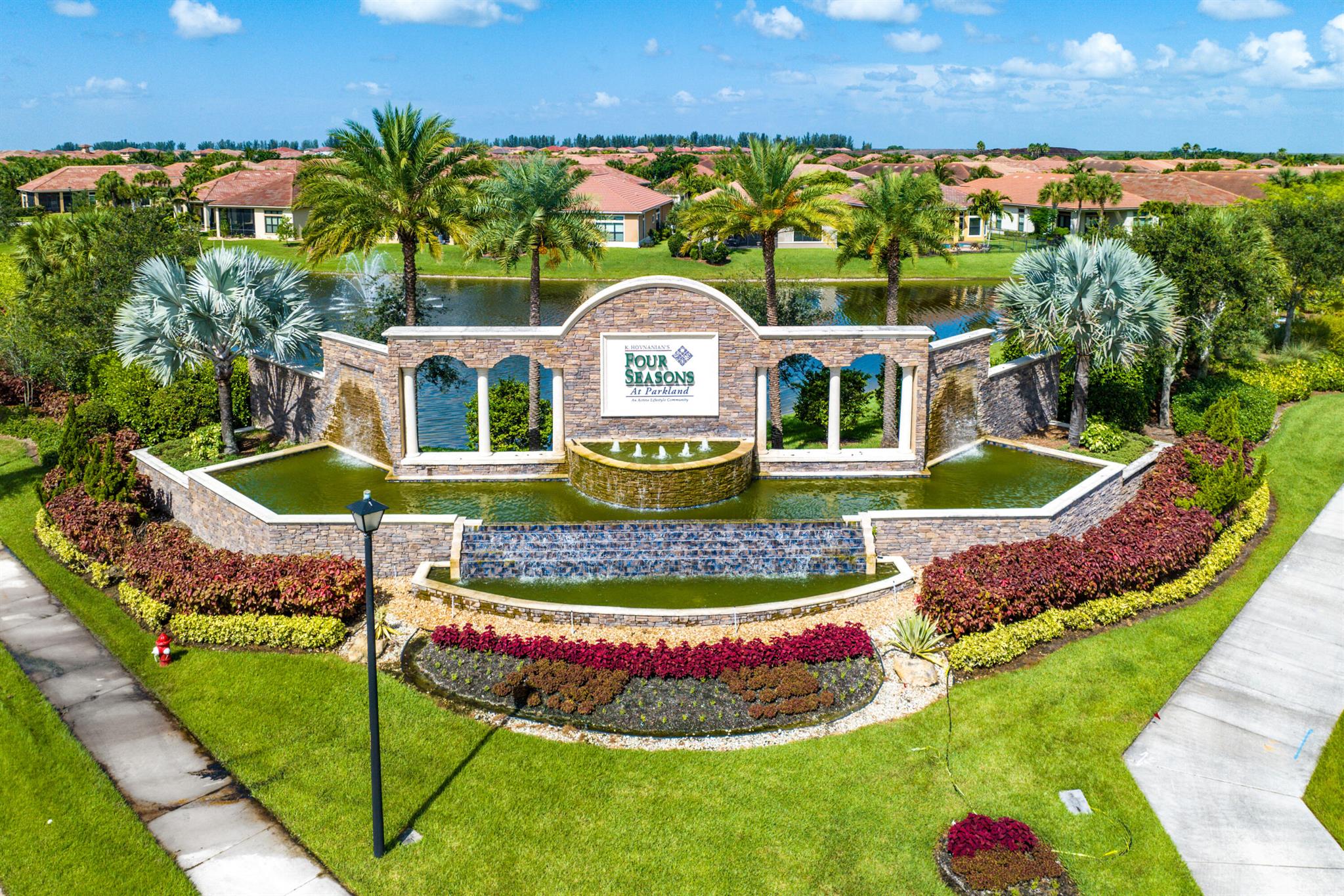 Must see this bright and beautiful Flora model in Four Seasons Parkland. Best priced home in Four Seasons. This highly upgraded home features 3 full bedrooms, 2 1/2 baths and 3 car garage. LED lighting and fans throughout home. Gourmet white kitchen with stunning quartz countertops. Huge island with additional storage cabinets. Neutral porcelain tile. Large owner's suite features a spa bathroom with dual vanities and customized closets. Screened lanai and fenced yard. Gas bib outlet on lanai for barbeque. Outdoor lighting including floodlights. Nest security system and thermostat. Tinted windows and glass sliders. Solar panels. 3 car garage with insulated garage door and attic. Air conditioning unit in garage. Halo purifier built into A/C. GE appliance warranty.