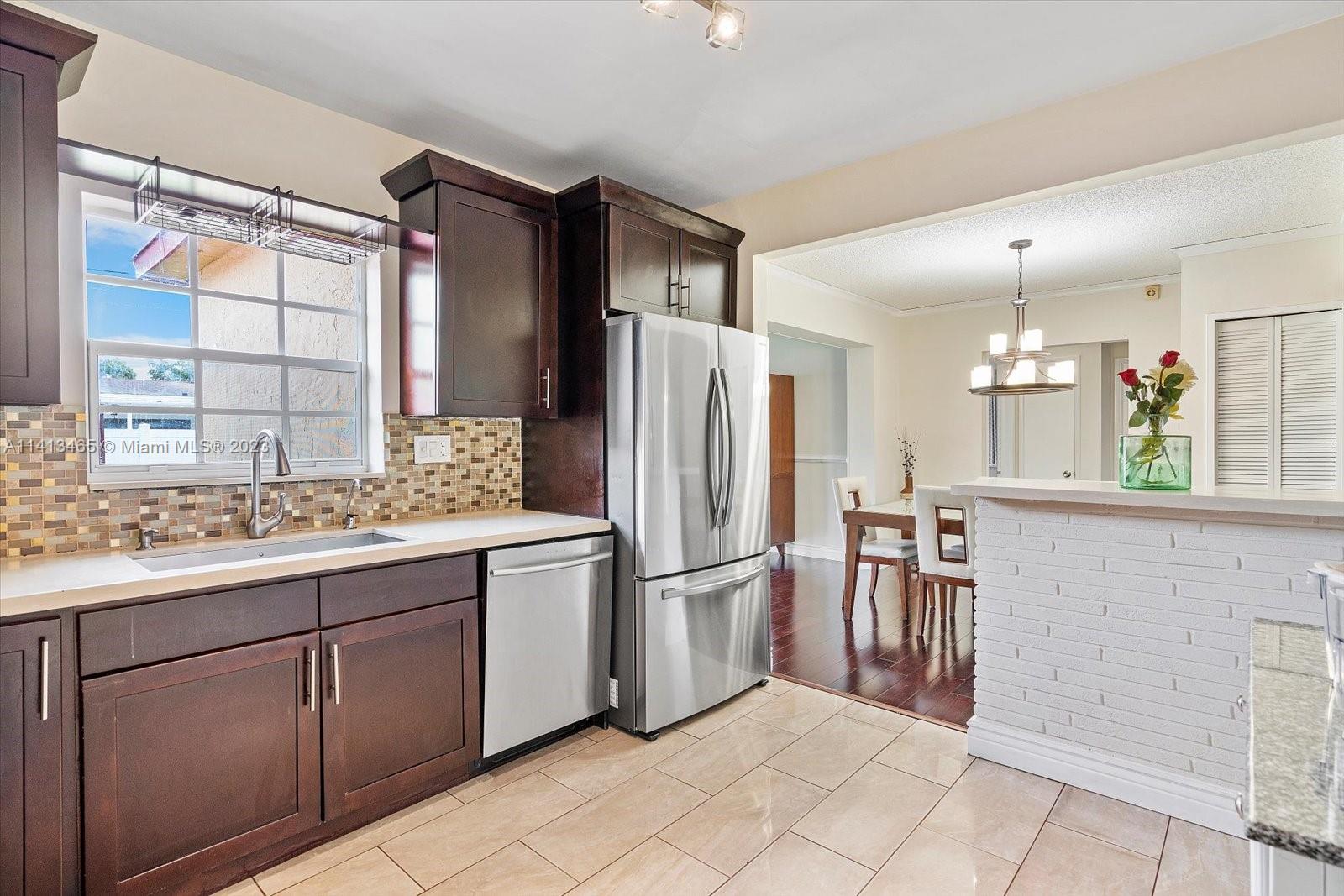 Step into this beautifully updated 3 bedroom, 2 bath home with gleaming floors and light and bright airy rooms. The kitchen was updated with newer cabinets, stone countertops, and stainless steel appliances. One bathroom has been fully renovated while the other is in great original condition. Roof is only 1 year old and the AC is in great condition. This home is ready for you to move in and enjoy living in Miramar!