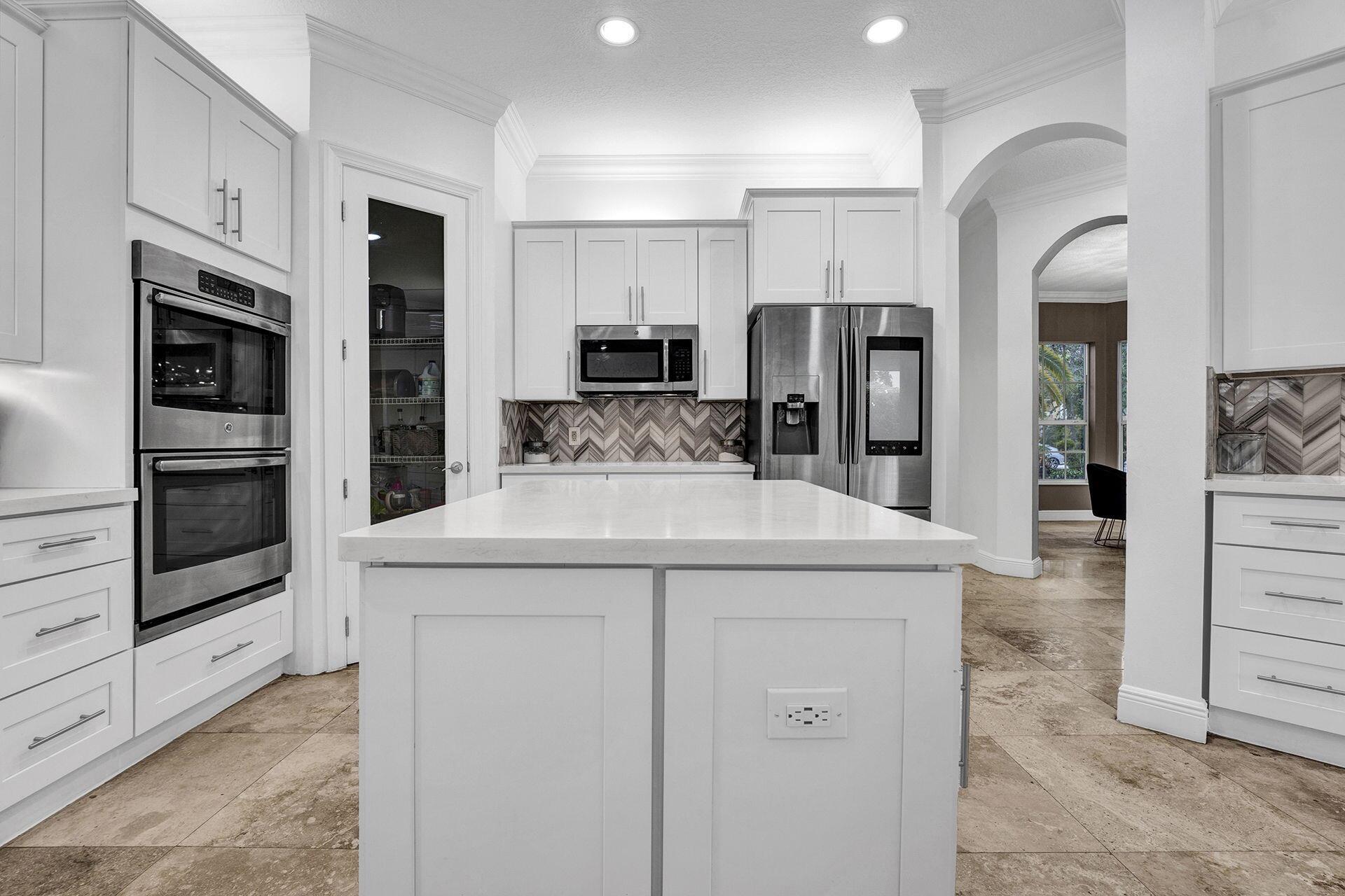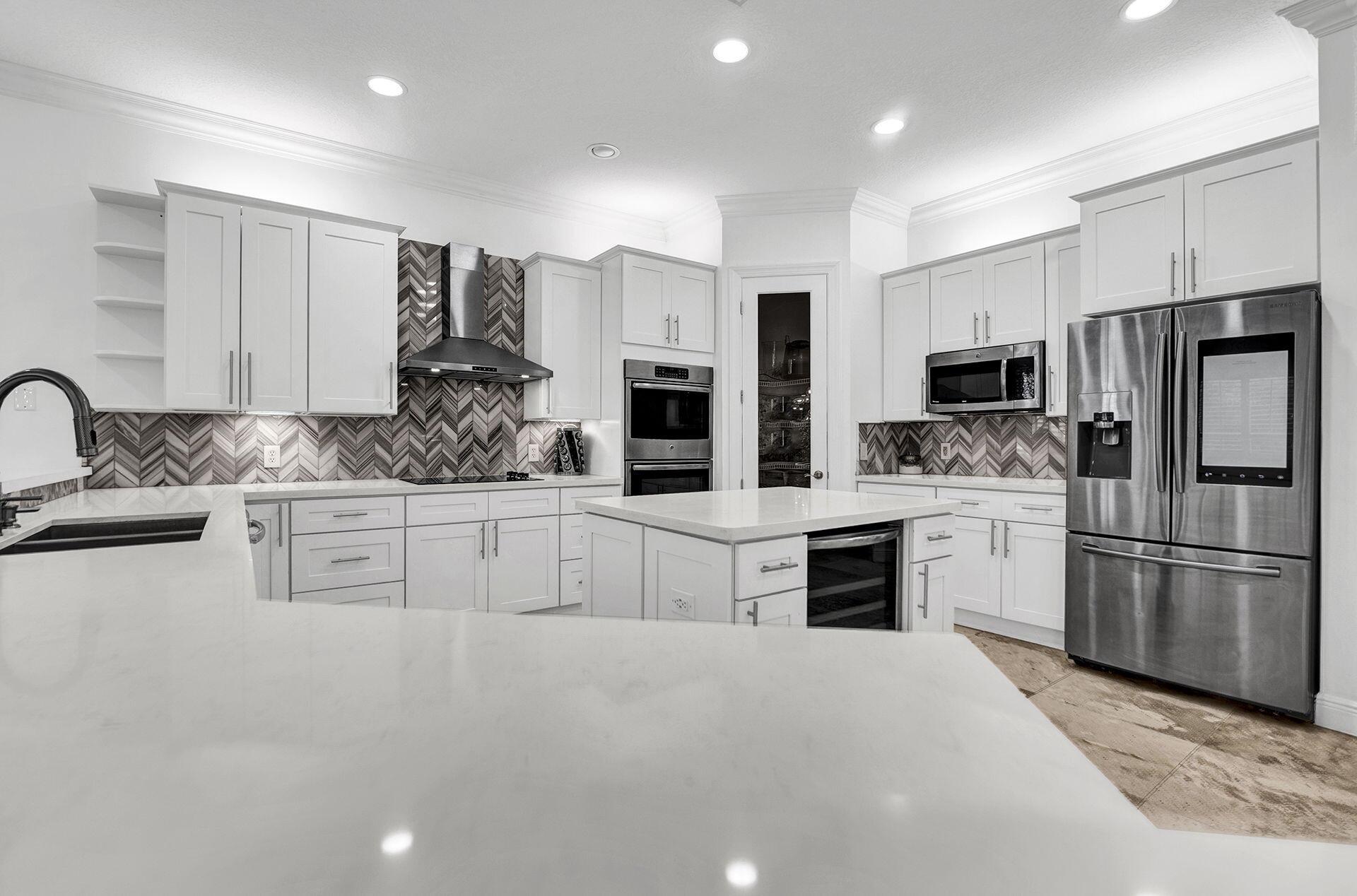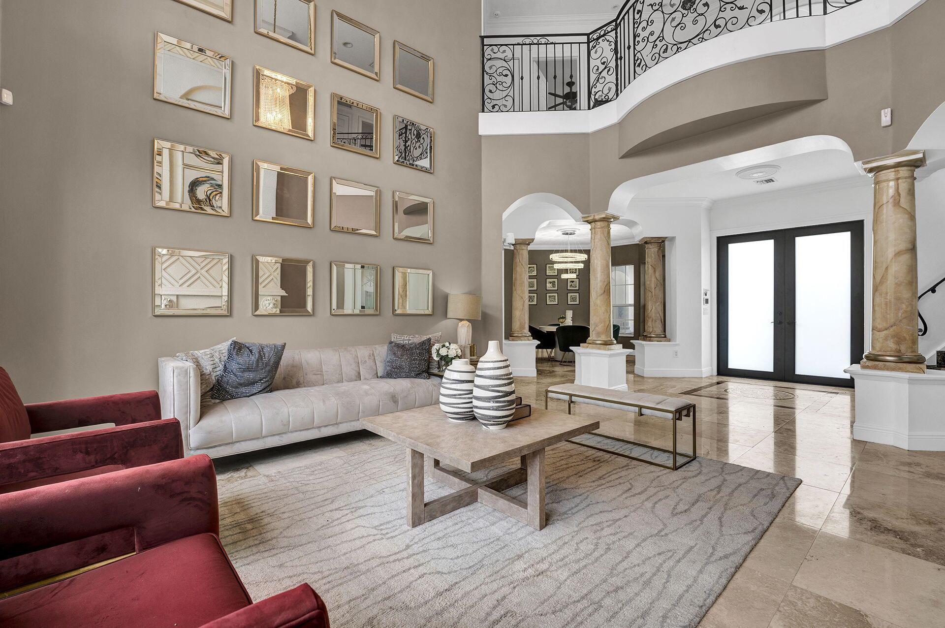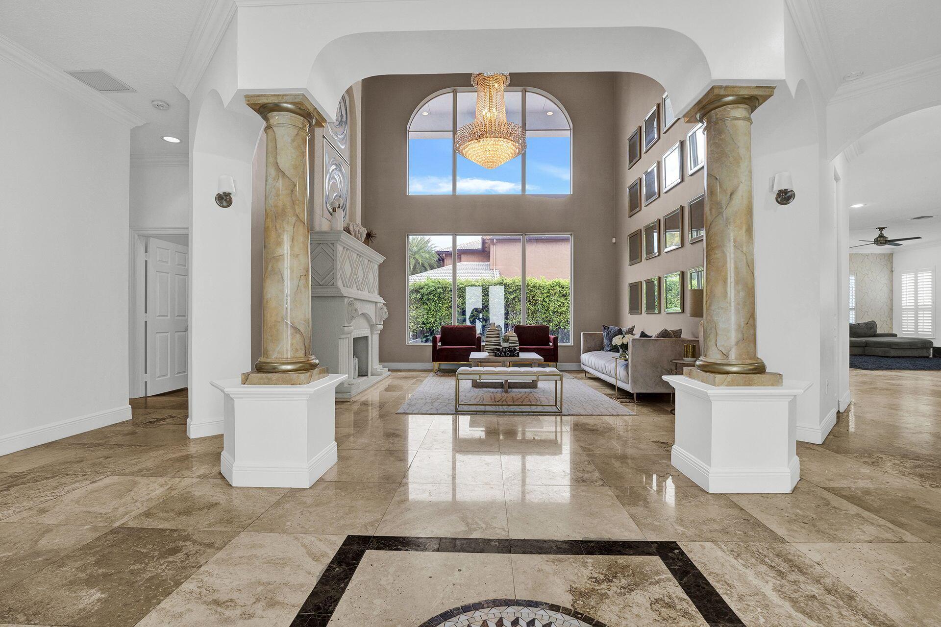 Welcome to this exquisite luxury home, a masterpiece of elegance & opulence. As you approach the grand entrance, the sight of this architectural marvel takes your breath away. This sprawling 6 bedroom, 4.5 bathroom residence is a testament to luxury living at its finest. Upon entering, you're greeted by soaring 20 foot ceilings with the stunning marble floors that stretch across home. The open floor plan leading you to the heart of the home: the custom-designed kitchen. High-end appliances seamlessly blend with custom cabinetry & granite countertops, creating a culinary haven that is both functional & visually striking. This home has been designed to embrace outdoor living & the backyard with private sparkling pool and meticulously manicured landscaping.