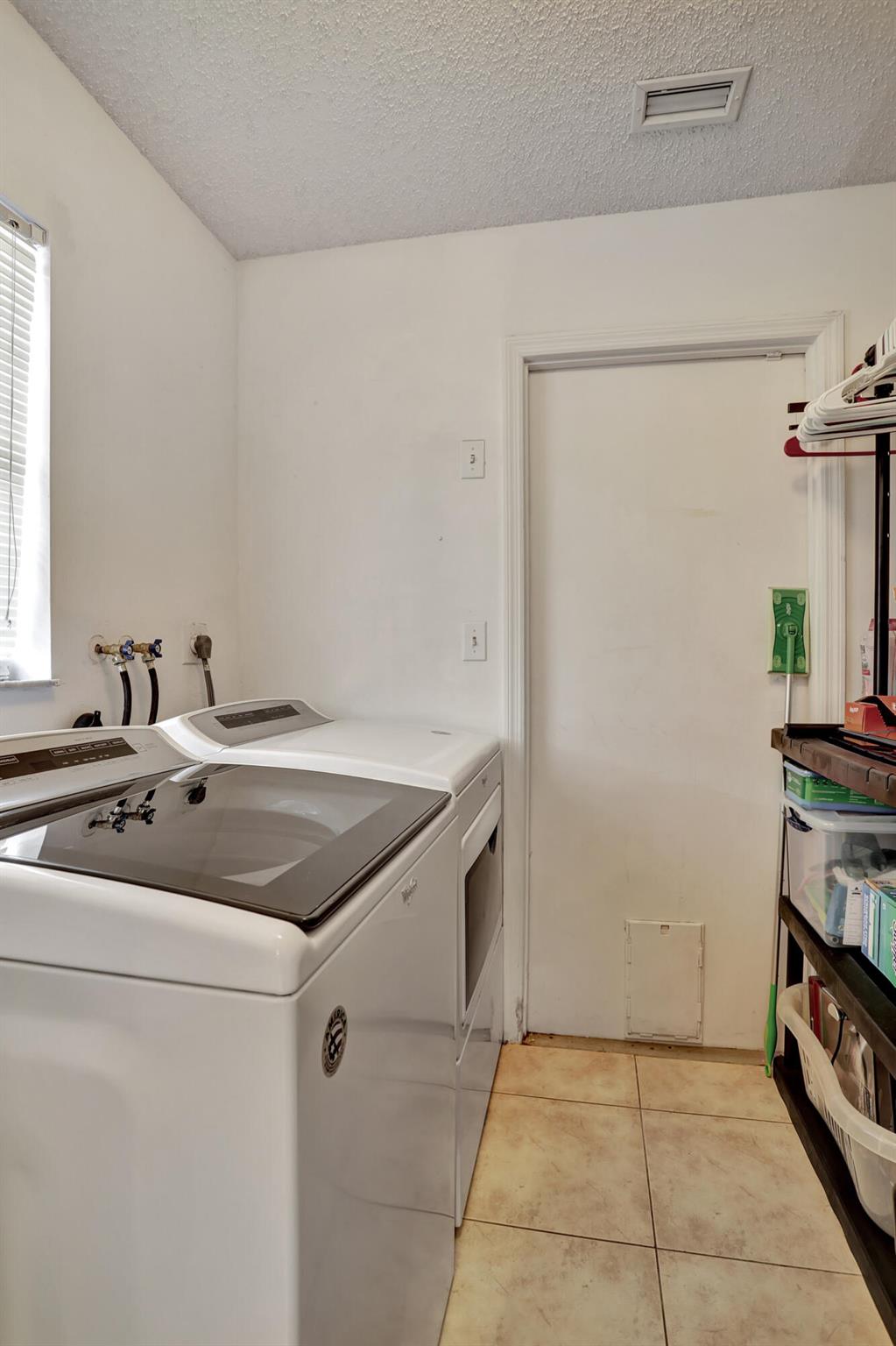 This wonderful home is nestled on a quiet street in a heavily desired community where mature shade trees line the streets. Features include vaulted ceilings, large neutral tile, laminate in the bedrooms, a large ensuite master with plantation shutters, double sink vanity, step down shower, and cabana door to the pool area. The kitchen opens up to the family room with bar seating and includes white shaker cabinets, granite counters, undermount sink, newer Whirlpool washer, dryer and refrigerator. The roof is approx. 6 years old, and the AC is 4. The pool has Southern exposure, it has a salt system and a new pump motor. The backyard is completely fenced, a smart irrigation system was installed along with new gutters w/ screens. The garage fridge does not convey.