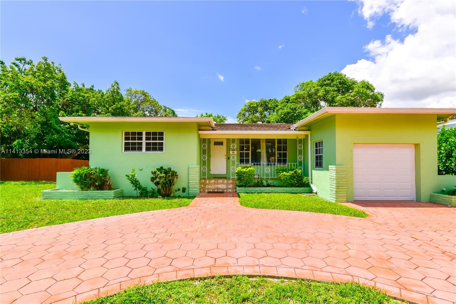 Charming Mid-century 3 beds & 2,5 baths + Den in the heart of North Miami! Features incl. a spacious split floor plan, updated open kitchen w/ SS appliances that faces the formal dining area, private master suite w/ great closet space, updated bathrooms & hardwood & tile floors throughout. Garage has been converted and is under central air so it can be used as a Den or additional office w/ its own entrance. Located on a DOUBLE 14,000 sf lot with plenty of room for a pool & tons of green space, this is the perfect place to enjoy a nice family gathering & call it HOME! Additional features include lots of natural light, great storage space and security system. Centrally located near all the local shops, grocery stores, restaurants and so much more. EASY TO SHOW.