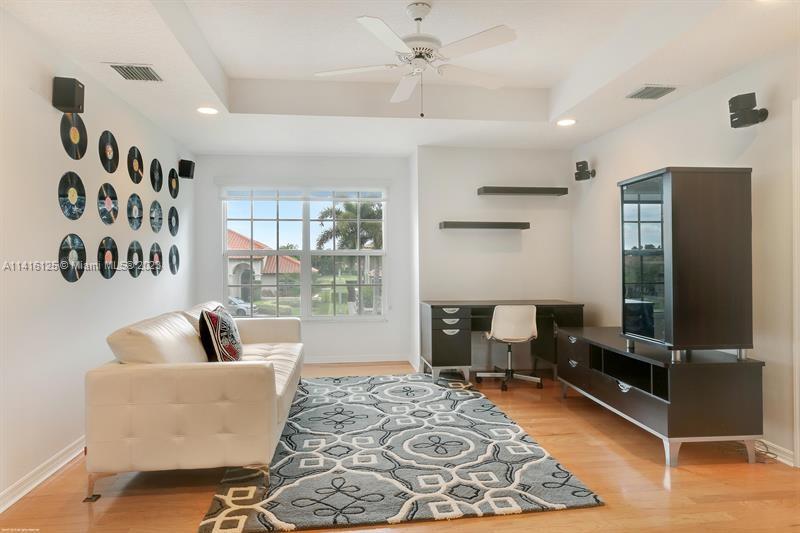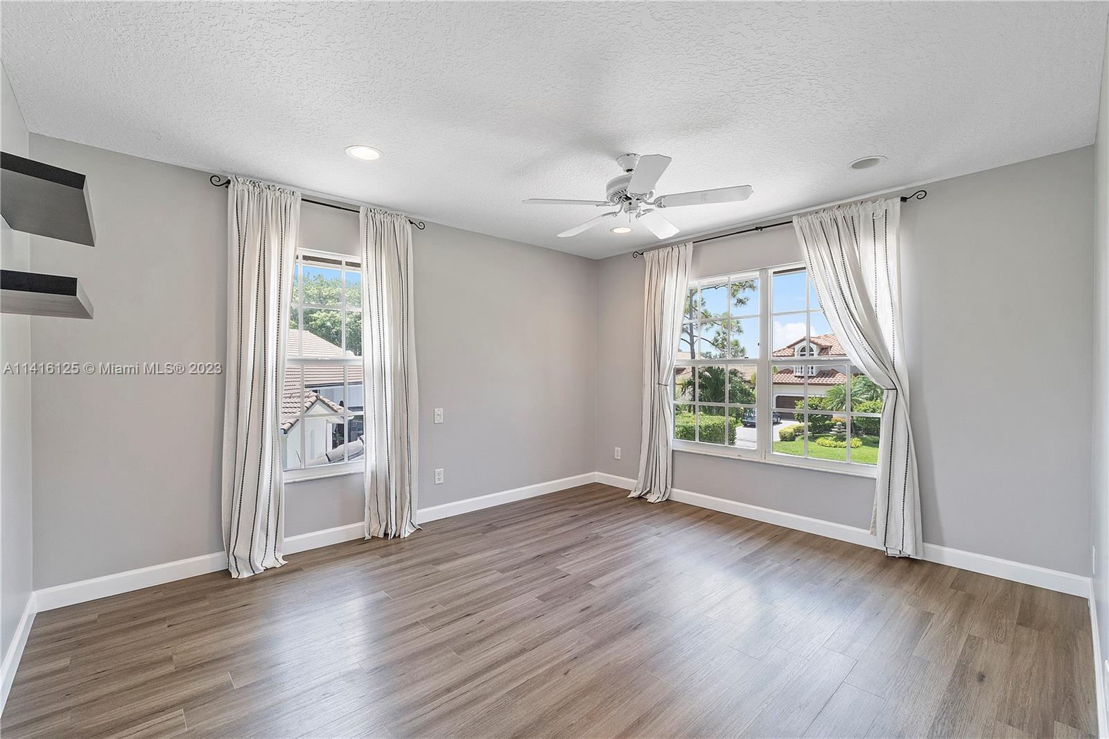 Warm modern, rarely available updated Move-in Ready! 6 bedroom, 4 bath + bonus room home with oversized pool/patio on a lushly landscaped lot in the exclusive gated community of Buena Vista/Cloisters. 3-way split floor plan with master bedroom downstairs. New roof in 2020, gutters, Fresh interior & exterior paint in 2023, newer A/C in 2017 (downstairs) and 2016 (upstairs). Upgrades include oak barn wood floors, LED high hats, white quartz countertops, stainless Samsung appliances, a dual-zone full-size wine cooler, designer fixtures, custom window treatments, and a travertine patio pool deck. Plenty of storage and closet space. 3 car garage and oversized brick paved driveway. Minutes to Boca beaches, walk/bike ride to shops and restaurants. All AAA Schools. LOW HOA! NO Carpet in House!