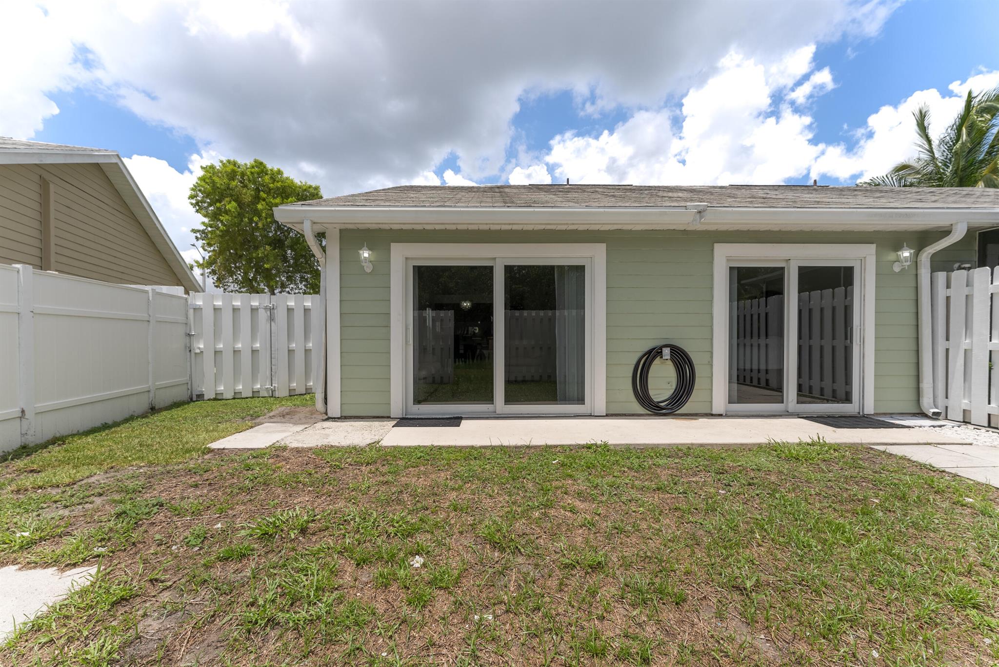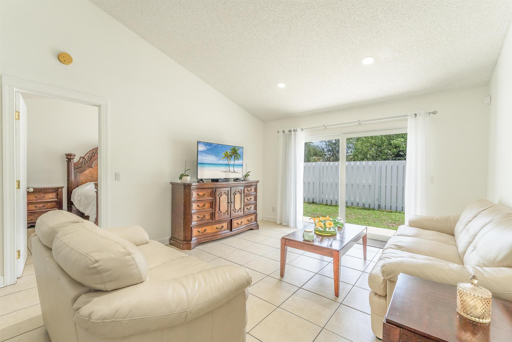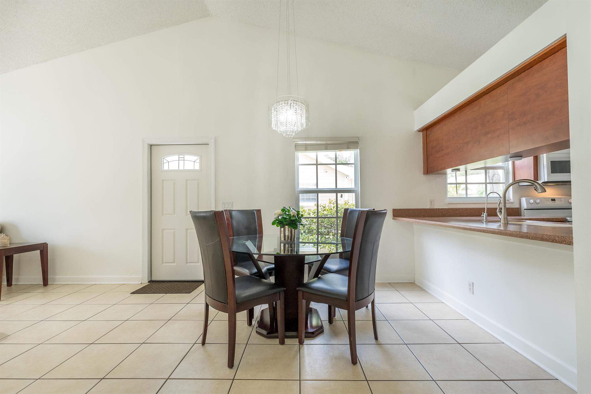 Dont miss your opportunity to purchase this beautiful 2 Bedroom 2 Single Story Townhome with Hurricane Impact Windows and Doors, Fully Fenced in Private Backyard Space,Tile Floors throughout, Full Size Washer and Dryer in the unit and an Oversized Driveway to that can fit multiple cars no problem. You're going to love the vaulted ceilings and natural light feel of this home with a wonderful floorpan, boasting ample bedroom and closet space in both rooms. The HOA even allows you to build on to your unit for some additional living space, possibly a 3rd bedroom or a back patio option for entertaining. This property is located in a quiet family friendly all ages welcome community that is only a few miles from the beaches, airports and endless shopping and dinning options. This one won't last!