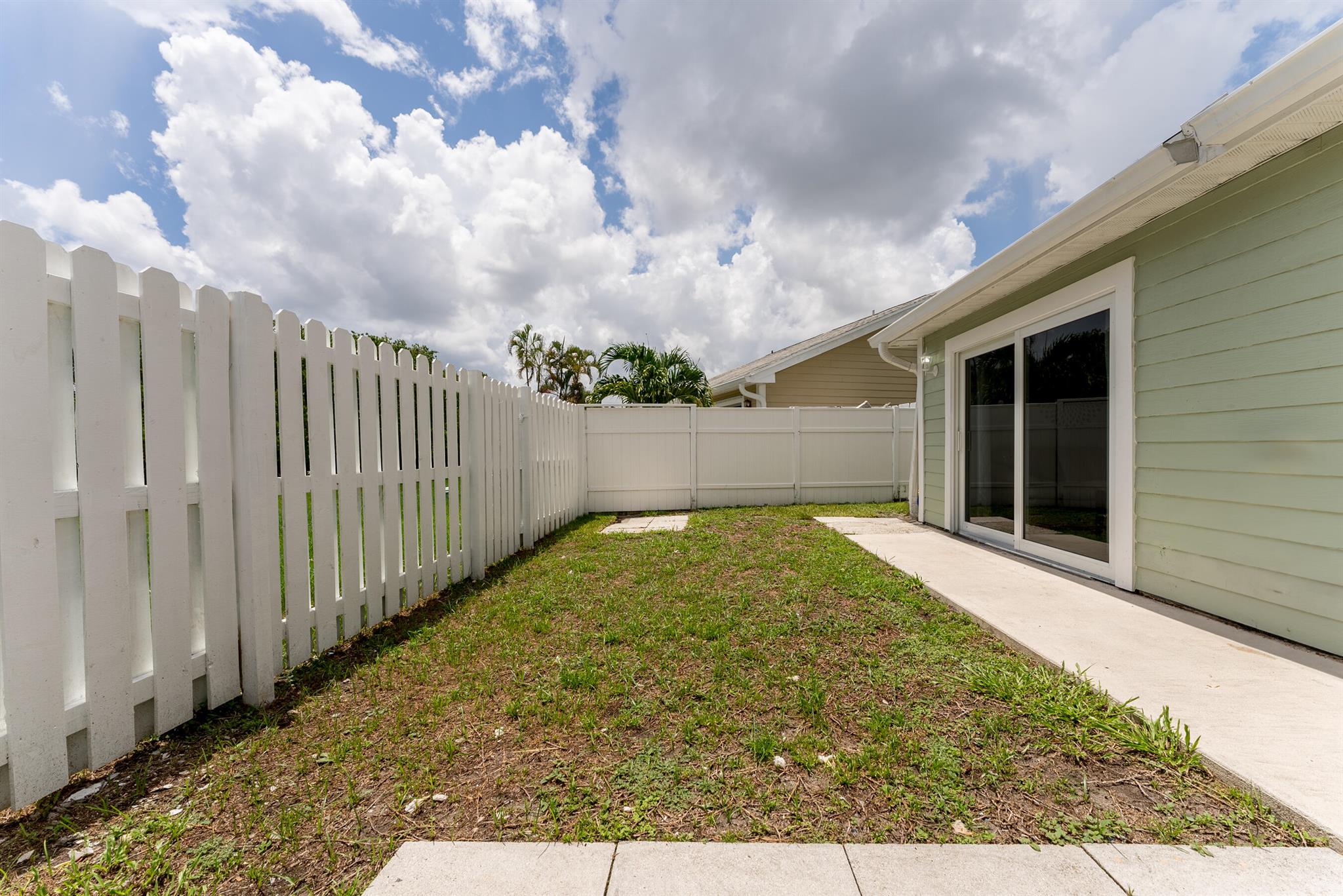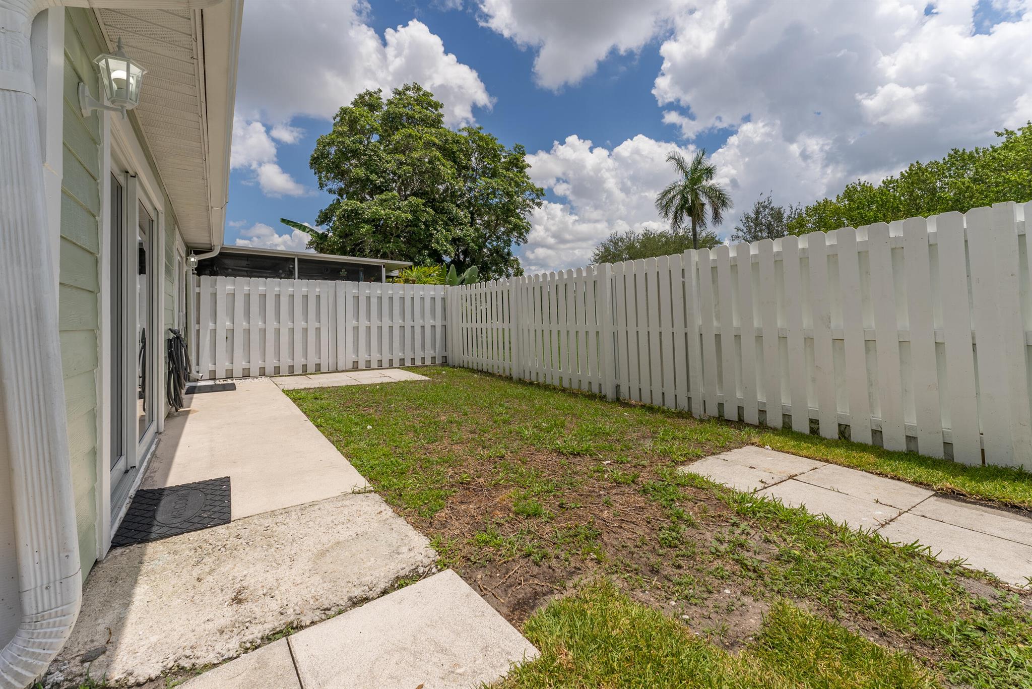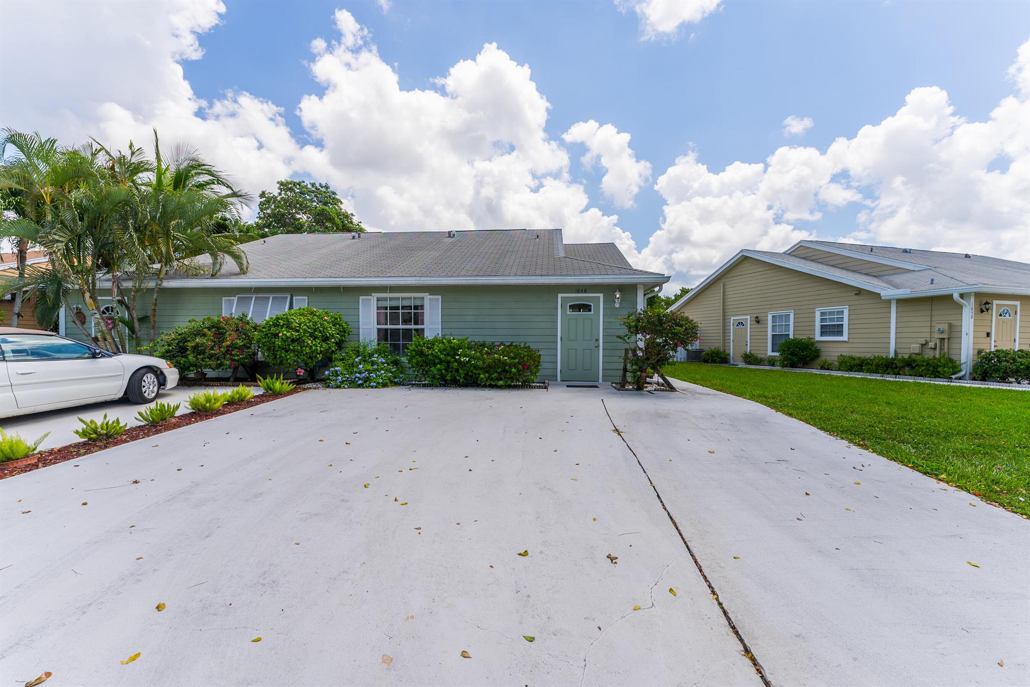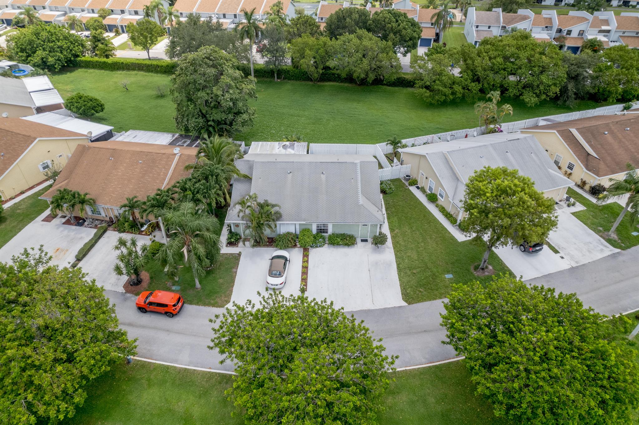 Dont miss your opportunity to purchase this beautiful 2 Bedroom 2 Single Story Townhome with Hurricane Impact Windows and Doors, Fully Fenced in Private Backyard Space,Tile Floors throughout, Full Size Washer and Dryer in the unit and an Oversized Driveway to that can fit multiple cars no problem. You're going to love the vaulted ceilings and natural light feel of this home with a wonderful floorpan, boasting ample bedroom and closet space in both rooms. The HOA even allows you to build on to your unit for some additional living space, possibly a 3rd bedroom or a back patio option for entertaining. This property is located in a quiet family friendly all ages welcome community that is only a few miles from the beaches, airports and endless shopping and dinning options. This one won't last!