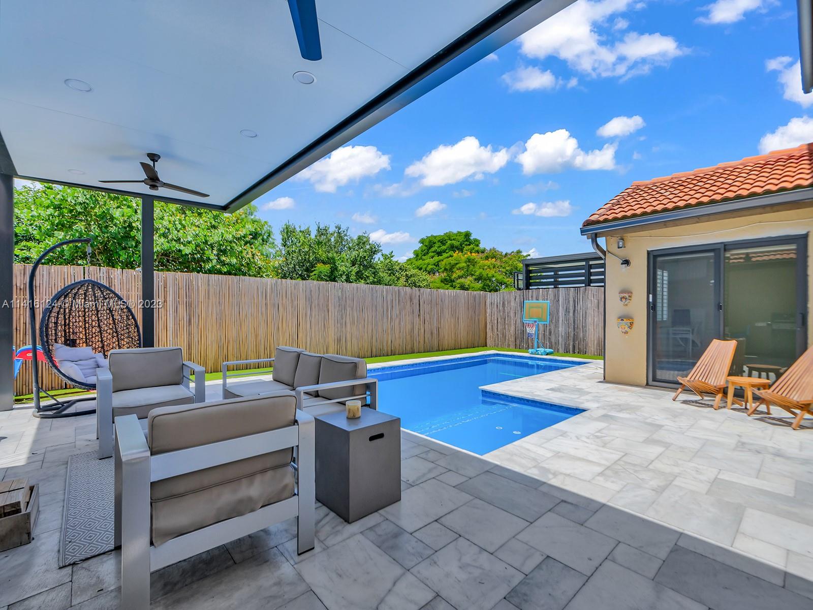 Desirable gated community, Marbella Park West (guarded gate 24/7). Turn key property. Enjoy living in a spacious 3 bedroom, 2.5 bathroom with 2 car garage. This gorgeous house is updated with open living concept, bright illuminated kitchen, marble counter and stainless steel appliances, plus gas stove! New Flooring and bathrooms. In addition, an amazing heated pool with pergola overlooking a peaceful park. The backyard + park is excellent for parties, outdoor activities and entertainment! New driveway done this year with turf. The home is close to shopping centers and major freeways, I-75, Palmetto and Turnpike. LOW Maintenance fee. Owner occupied. Showings by appointment only.