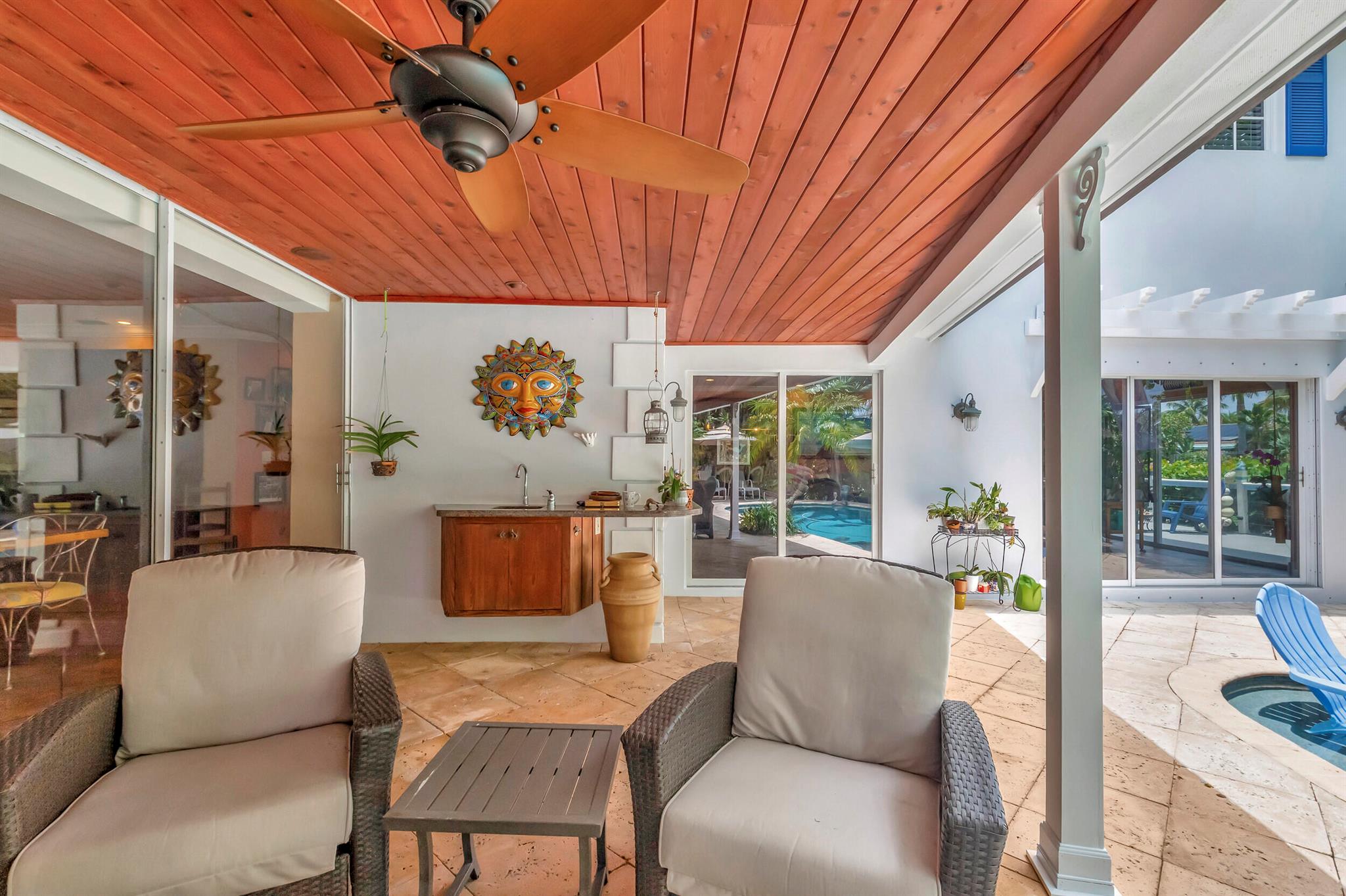 Bring your large yacht and discover an extraordinary waterfront retreat in Boca Raton. This immaculate home offers 4 beds, 3.5 baths, and a harmonious blend of luxury and functionality. Master bedroom conveniently located on the main level ensures privacy and easy access. 90ft water frontage and ocean access with no fixed bridges make it a boater's paradise. Dock, deck, and sea wall renovated 4 years ago enhance the waterfront experience.Experience ultimate outdoor entertainment with a thoughtfully designed poolside wet bar, perfect for unwinding while enjoying stunning waterfront views. Private heated pool with 8ft sun shelf and free-standing Jacuzzi spa creates a serene oasis for relaxation and rejuvenation.