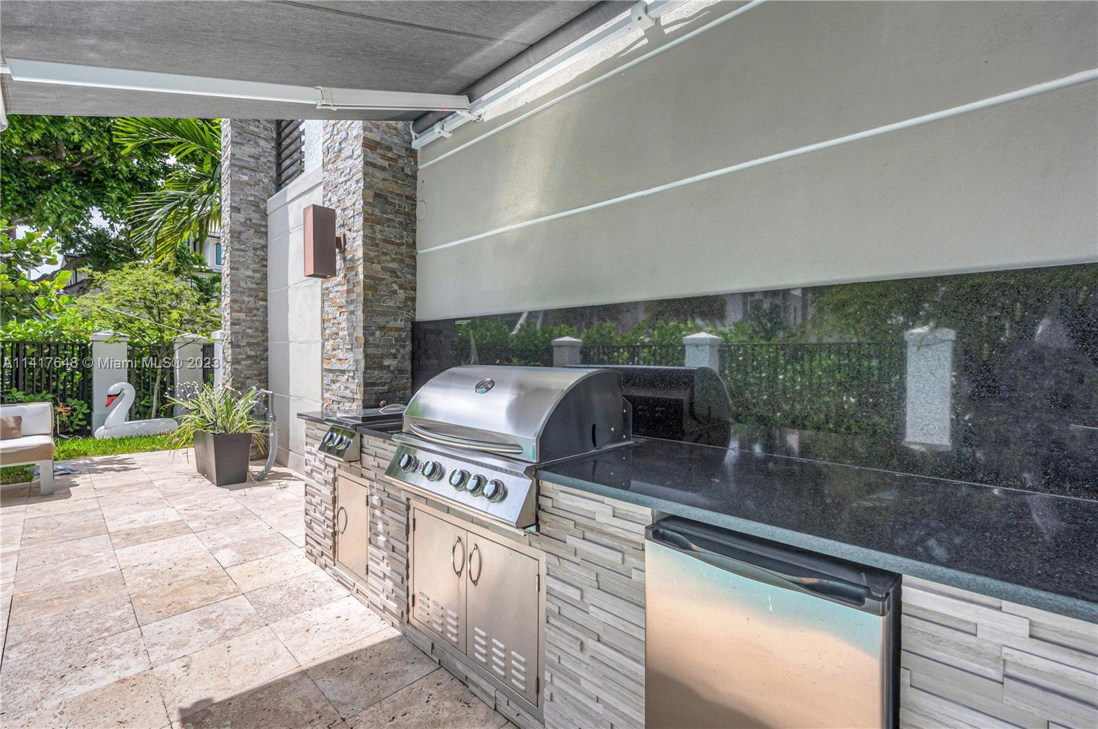 EXTRAORDINARY 3-STORY TOWNHOUSE, ALL CONCRETE CONSTRUCTION, WITH ELEVATOR ON LARGE CORNER LOT !!! Quiet and Private Corner, 3bedroom 3.5 bath + den, 2 car garage, private pool, patio, gas BBQ area/fridge with wind sensor retractable awning/light, 2nd floor covered patio overlooking pool n front balcony,3rd floor sundeck,3 cameras (Entrance, Pool, Garage), Smart Home wired, central vacuum, Natural gas lines for all Appliances/BBQ, VIKING APPLIANCES, French Door Oven, Security Safe anchored in Closet, upgraded light fixtures and window coverings, gorgeous 36X36 White Tile in living areas, wood floors in bedrooms. Chef's Kitchen-Wood cabinetry, Quartz tops. Upgraded bathrooms all with rainfall shower heads,Ferguson fixtures. Come See!! Lots of Upgrades including Garage Floor Coating.