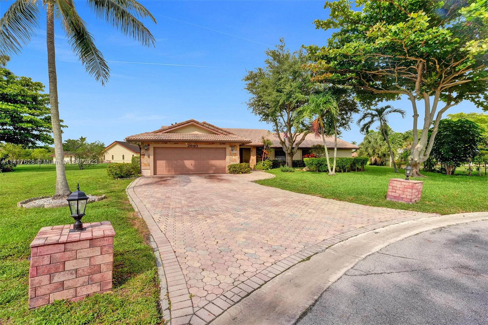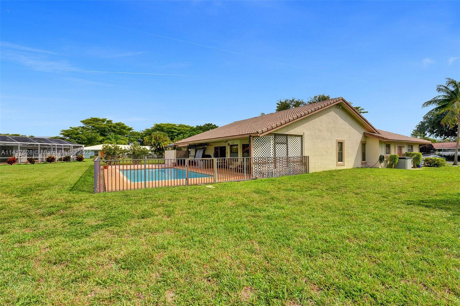 NO HOA!! Welcome home-this Coral Springs Country Club subdivision spacious home is situated on an oversized lot (almost 1/2 acre- .41 acre) Install a 6ft privacy fence & enjoy! Complete w/pool & secluded jacuzzi. Paver driveway allowing ample parking in addition to the 2 car garage. Located at the end of the cul de sac minutes from everything you need in Coral Springs-expressways, restaurants, parks, Sportsplex, Publix, schools, FLA Live Arena. New electrical panel 2023. New water heater 2022. Each of the 4 bedrooms has large walk in closets. There's a newly remodeled shower in the master bath along with a roman tub to relax all your stress & cares away in. Sky lights. Vaulted ceilings. Plenty of room for entertaining, family and making this a lifetime home. Did I mention NO HOA!