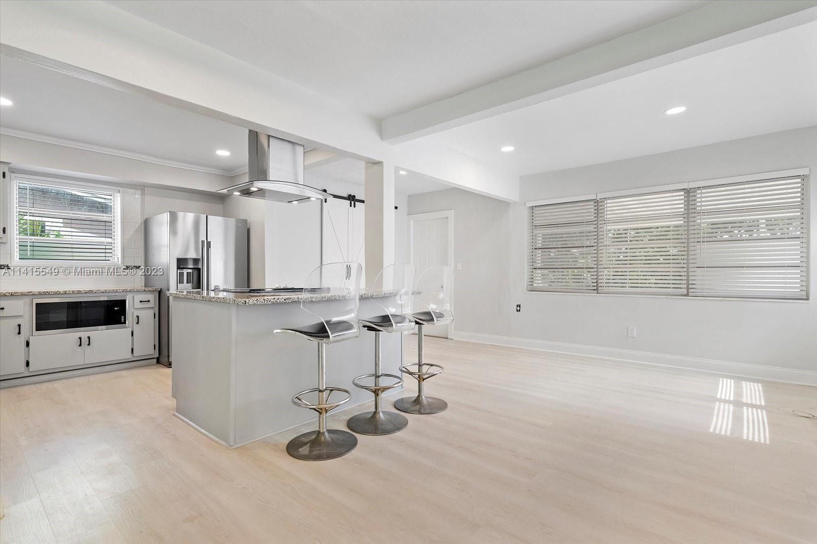 Renovated two bedrooms and one-bathroom property present an exceptional opportunity to own a beautiful home in a strategic location in Miramar. An open floor plan ensures optimal flow and functionality throughout, creating a harmonious living experience. The modern kitchen with a central aisle is a true culinary haven, featuring granite countertops and stainless steel appliances. Wood laminate floors throughout. Plenty of natural light streaming in through large windows. The expansive backyard is ideal for hosting outdoor gatherings, with a covered area and ample space to add a pool: one car garage and a significant driveway to fit up to 3 cars. No HOA. The roof and A/C are in 2022. This home provides easy access to major highways, making commuting a breeze.