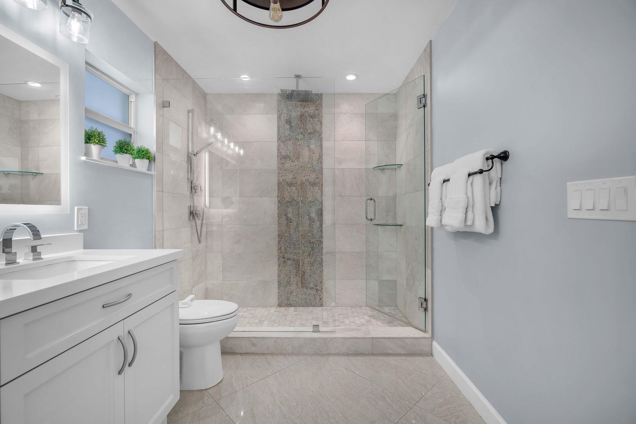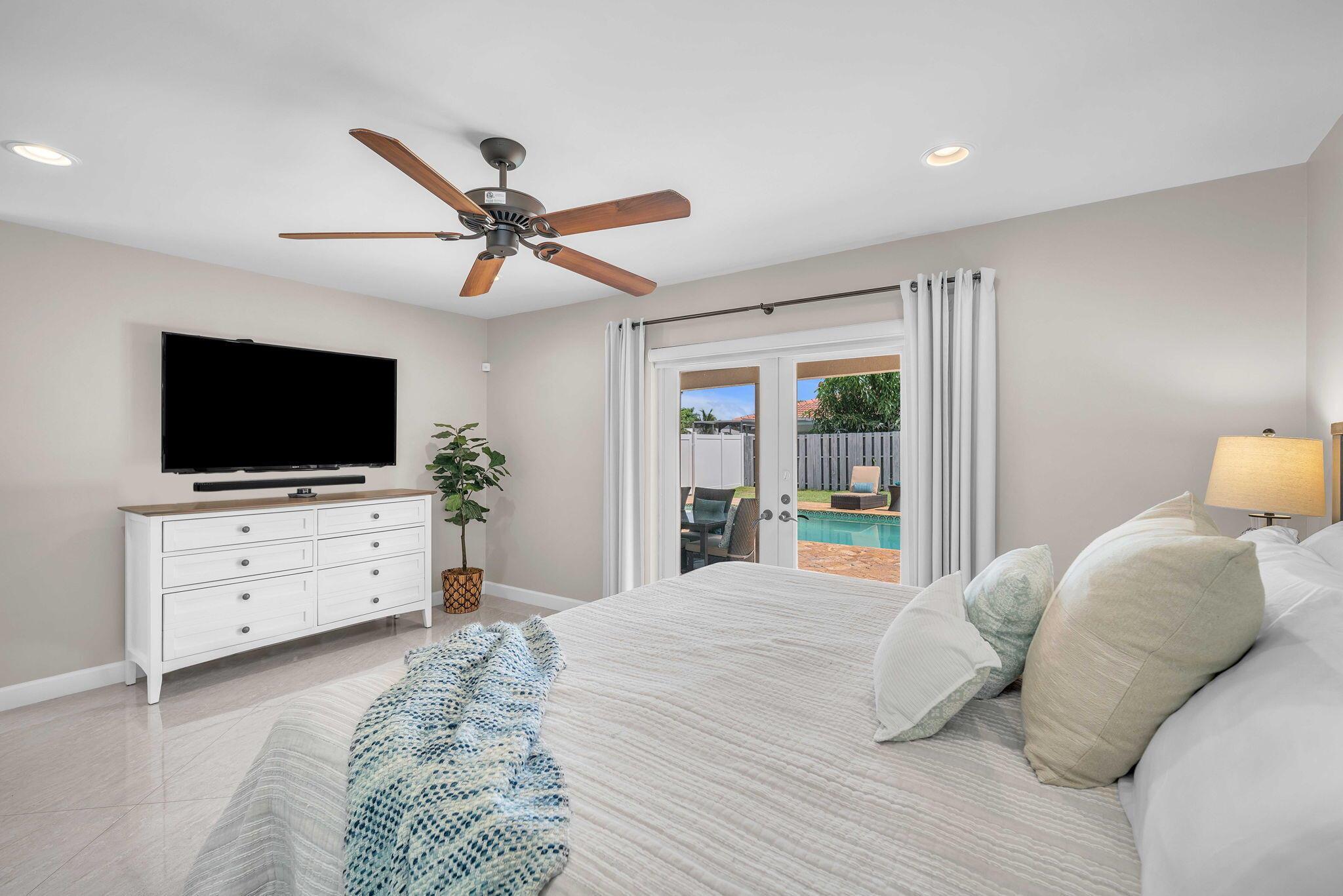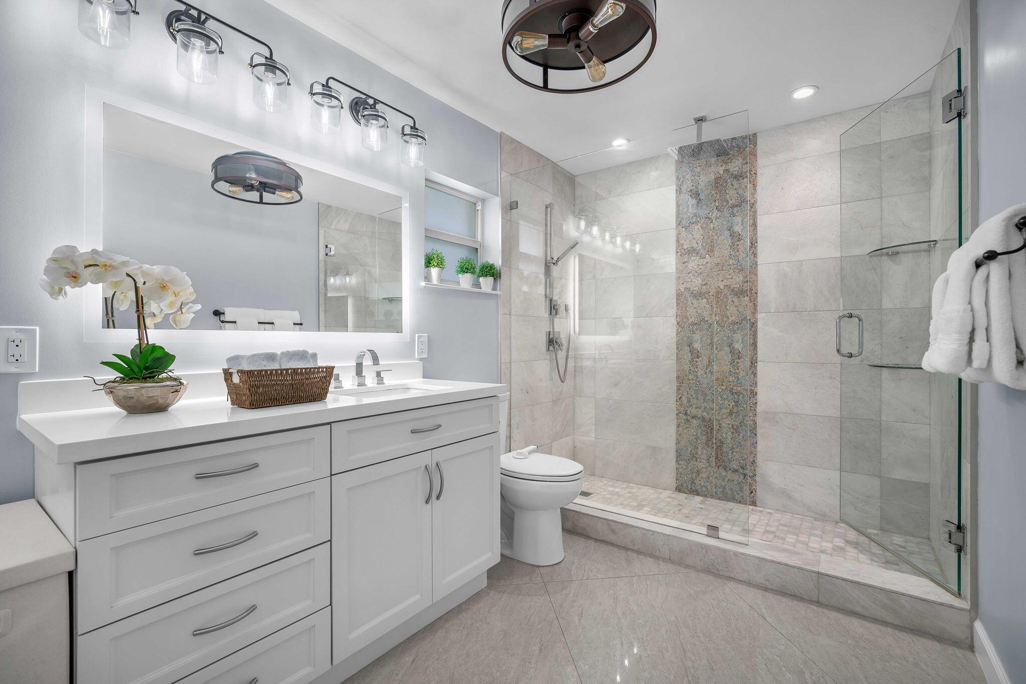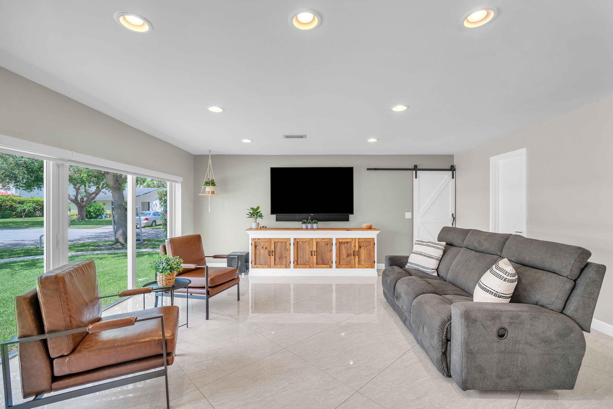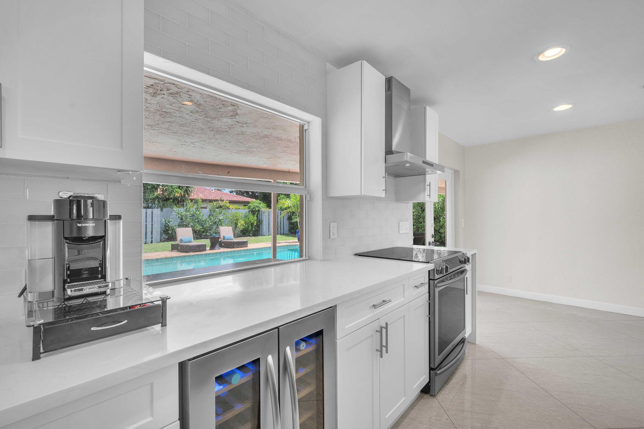 Welcome to your luxurious oasis in the highly desirable community of Boca Raton! This stunning 3 bedroom, 3 bath home has been completely remodeled to create a modern and inviting space. With its open design and abundant natural light, this house is perfect for entertaining. Inside, you'll be greeted by oversized, beautiful porcelain tile and elegant Calacatta Miraggio white quartz countertops on dark chocolate shaker cabinets at the impressive 15 ft kitchen island. The split bedroom plan ensures privacy, and each bedroom boasts a walk-in closet for added convenience.Prepare to be amazed by the special luxuries this home has to offer. Samsung appliances, including a cutting-edge Samsung Family Hub refrigerator, complete with built-in wifi, speakers, and an inside view camera.