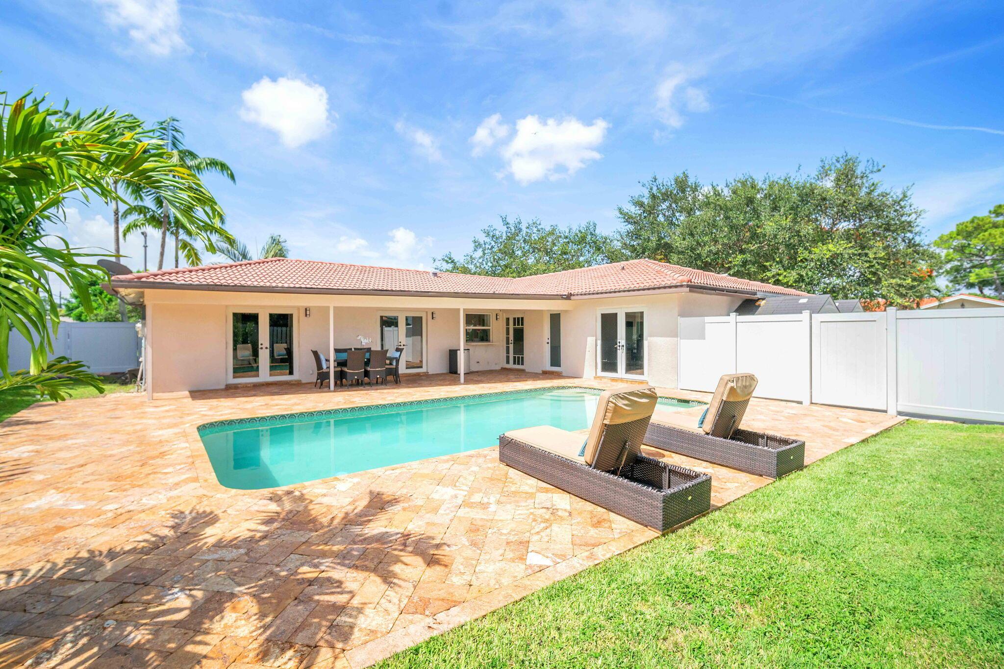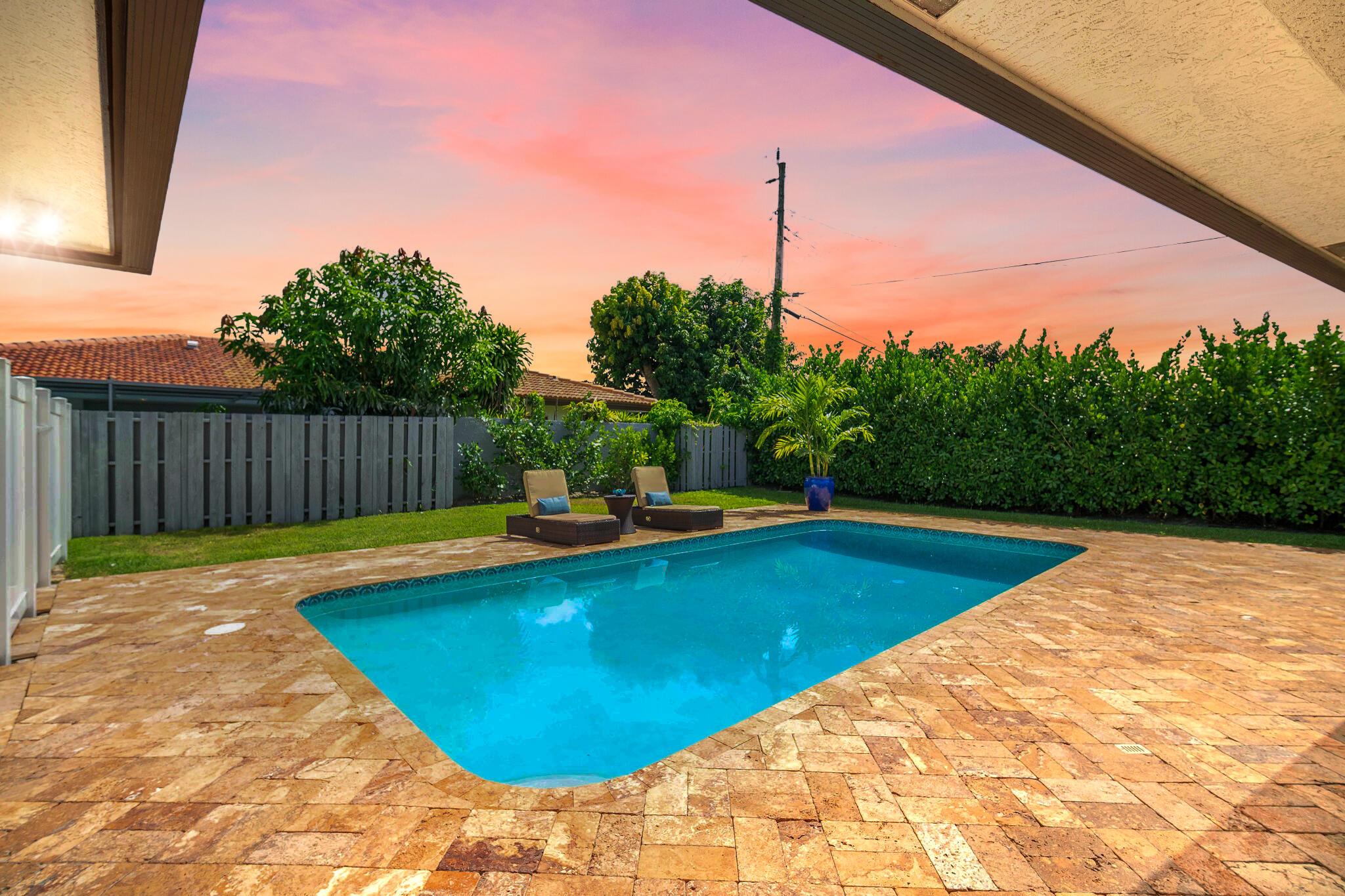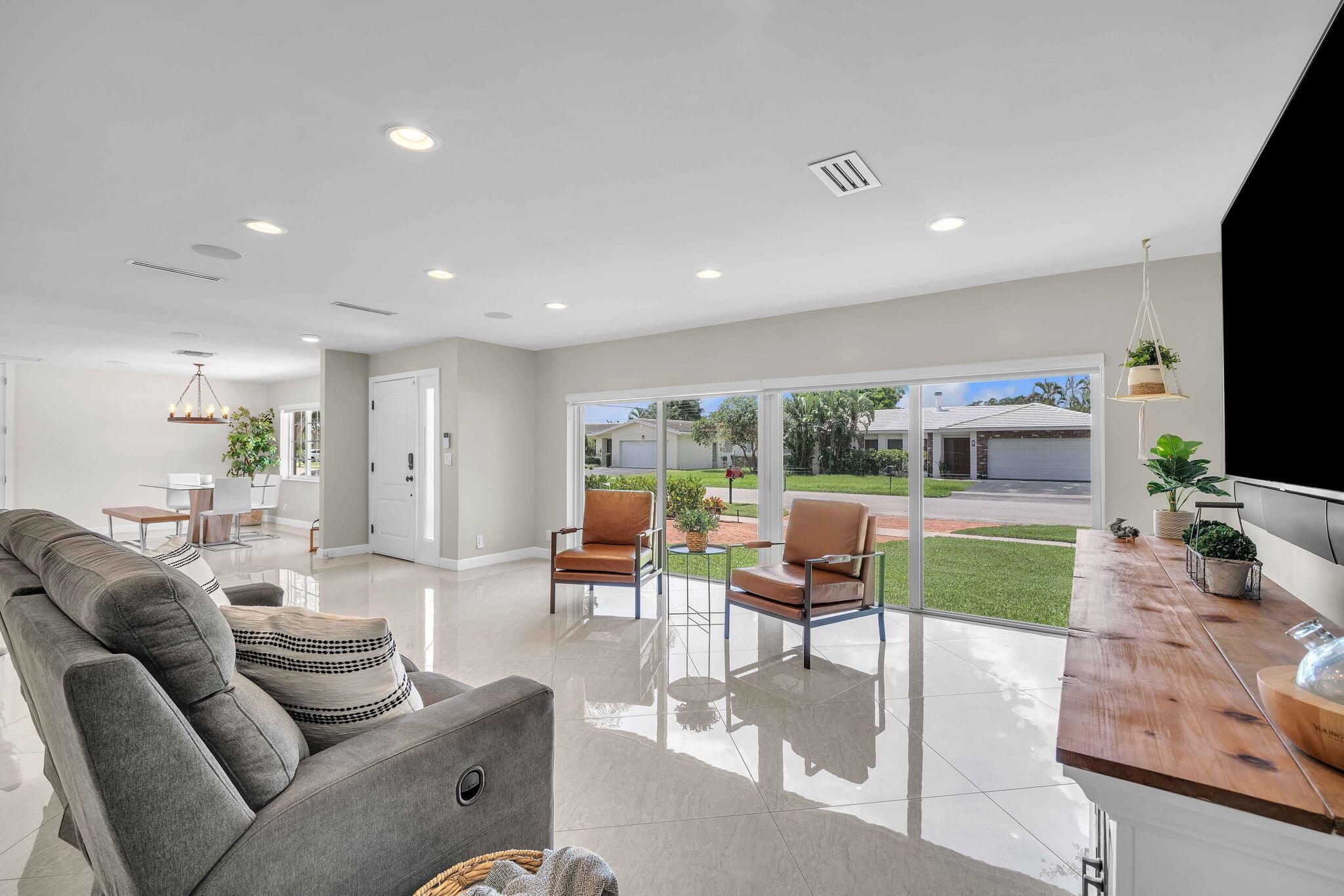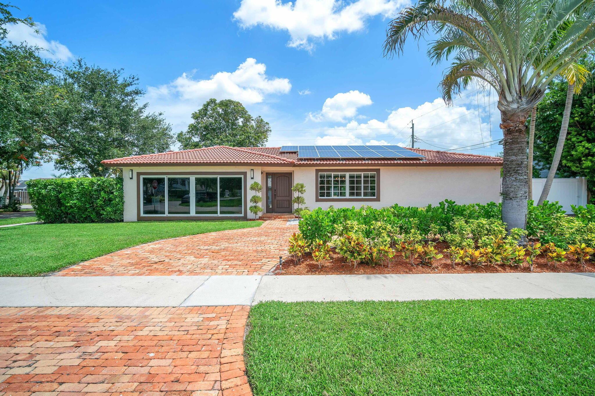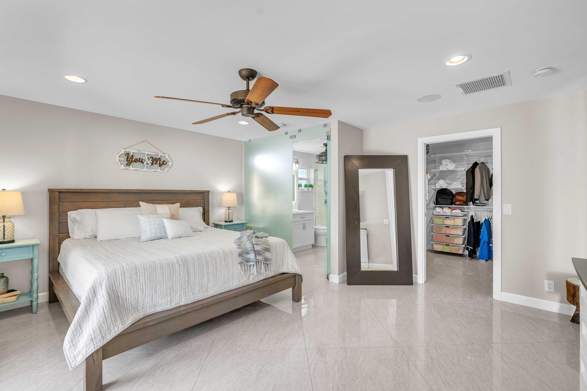 Welcome to your luxurious oasis in the highly desirable community of Boca Raton! This stunning 3 bedroom, 3 bath home has been completely remodeled to create a modern and inviting space. With its open design and abundant natural light, this house is perfect for entertaining. Inside, you'll be greeted by oversized, beautiful porcelain tile and elegant Calacatta Miraggio white quartz countertops on dark chocolate shaker cabinets at the impressive 15 ft kitchen island. The split bedroom plan ensures privacy, and each bedroom boasts a walk-in closet for added convenience.Prepare to be amazed by the special luxuries this home has to offer. Samsung appliances, including a cutting-edge Samsung Family Hub refrigerator, complete with built-in wifi, speakers, and an inside view camera.