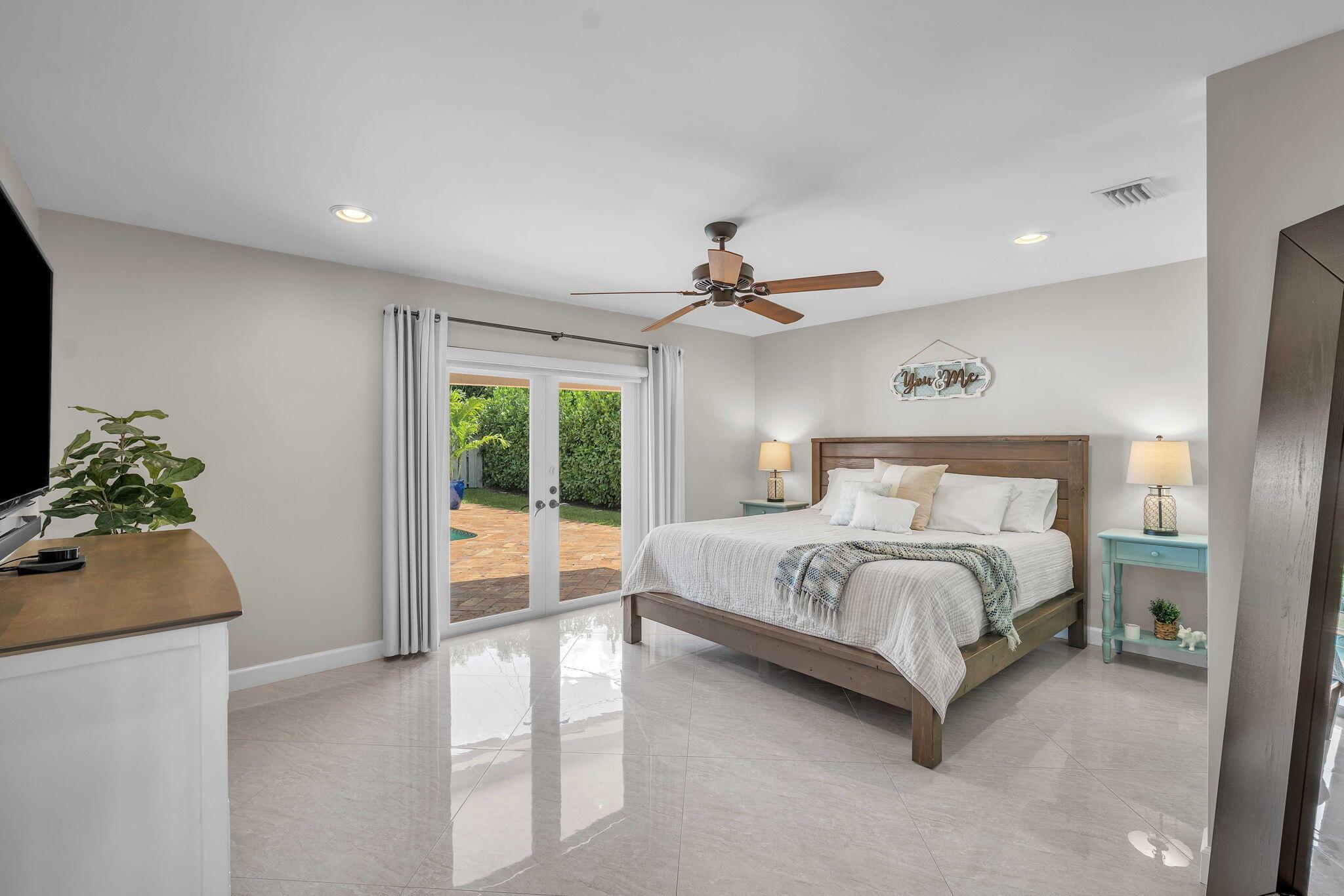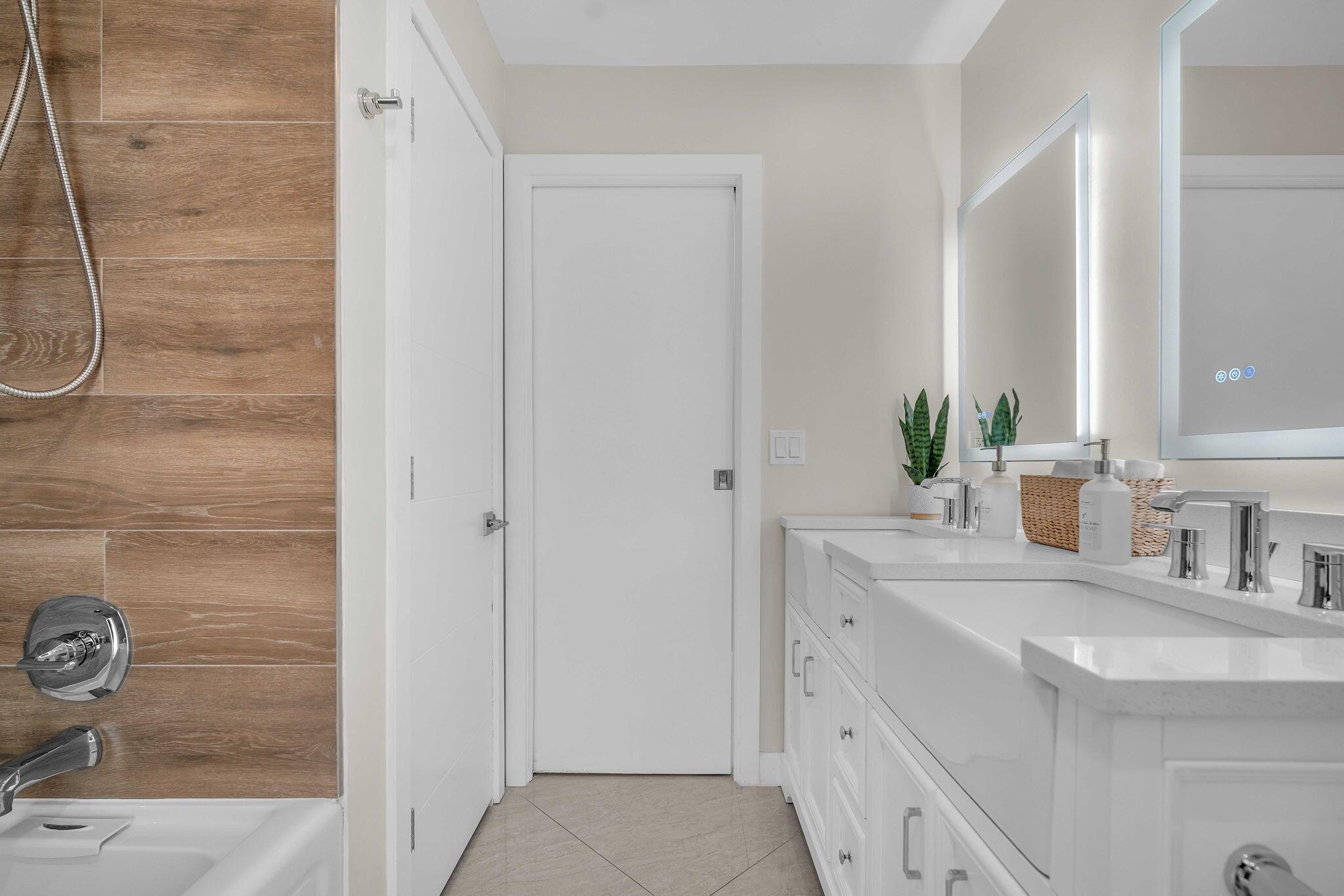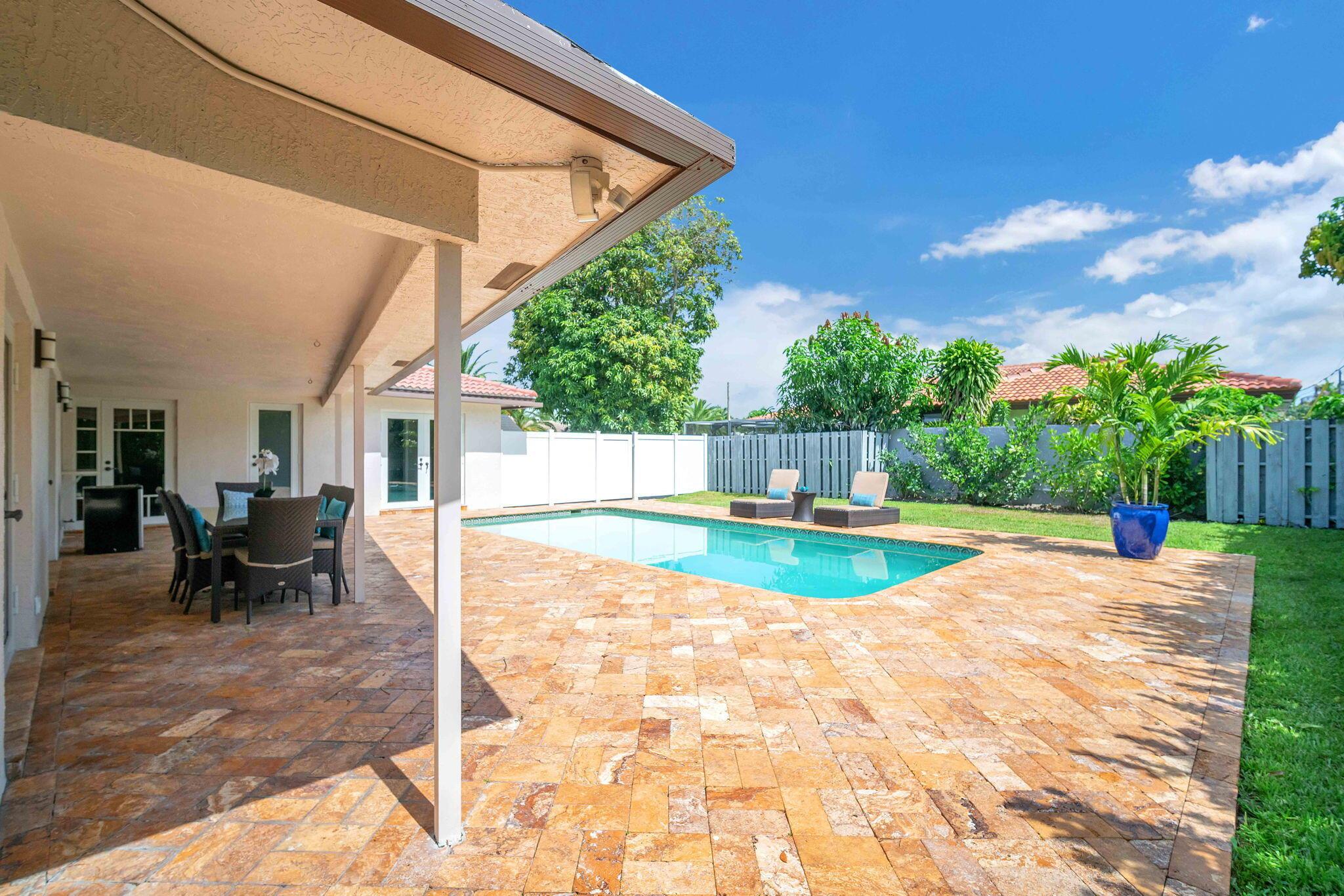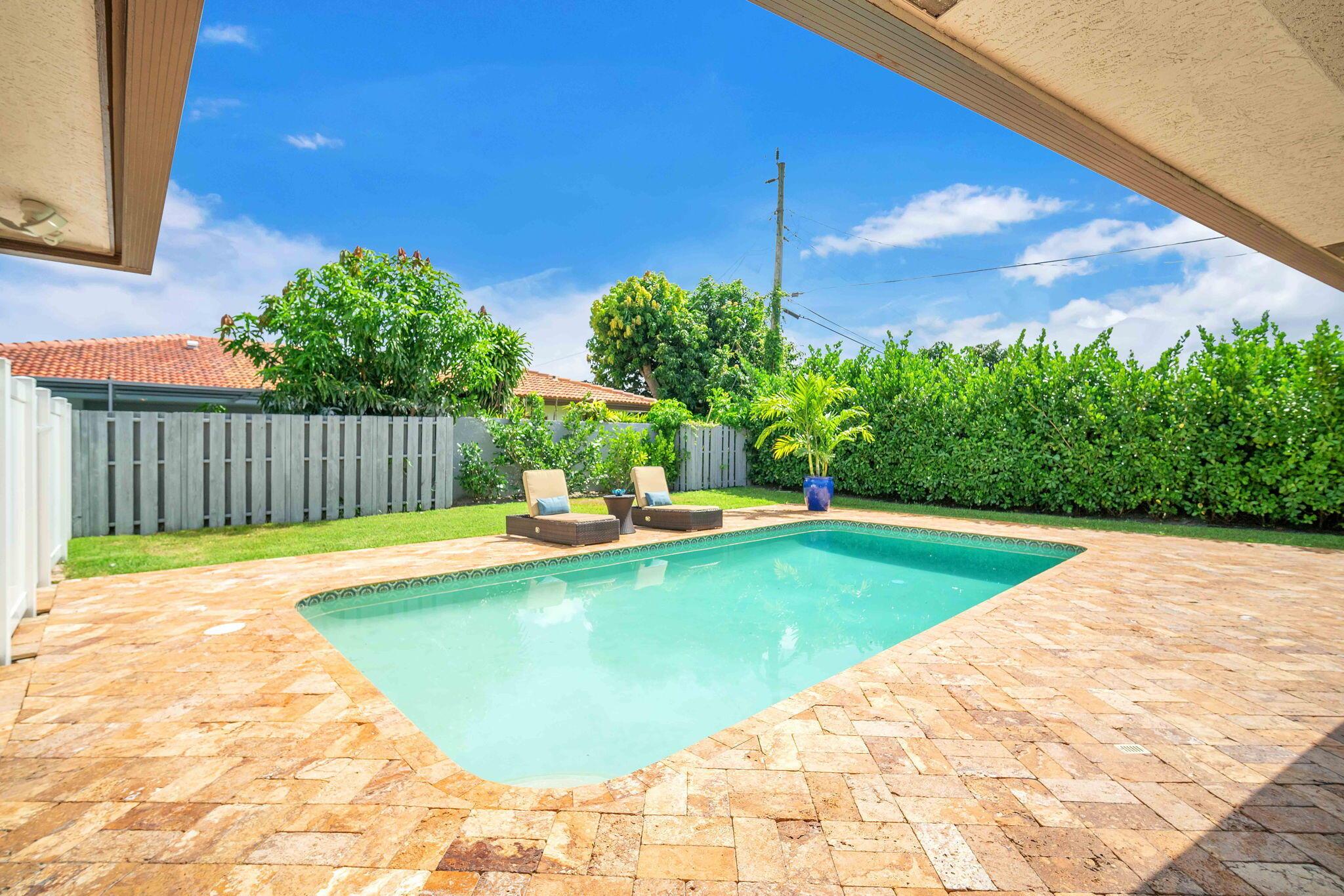 Welcome to your luxurious oasis in the highly desirable community of Boca Raton! This stunning 3 bedroom, 3 bath home has been completely remodeled to create a modern and inviting space. With its open design and abundant natural light, this house is perfect for entertaining. Inside, you'll be greeted by oversized, beautiful porcelain tile and elegant Calacatta Miraggio white quartz countertops on dark chocolate shaker cabinets at the impressive 15 ft kitchen island. The split bedroom plan ensures privacy, and each bedroom boasts a walk-in closet for added convenience.Prepare to be amazed by the special luxuries this home has to offer. Samsung appliances, including a cutting-edge Samsung Family Hub refrigerator, complete with built-in wifi, speakers, and an inside view camera.
