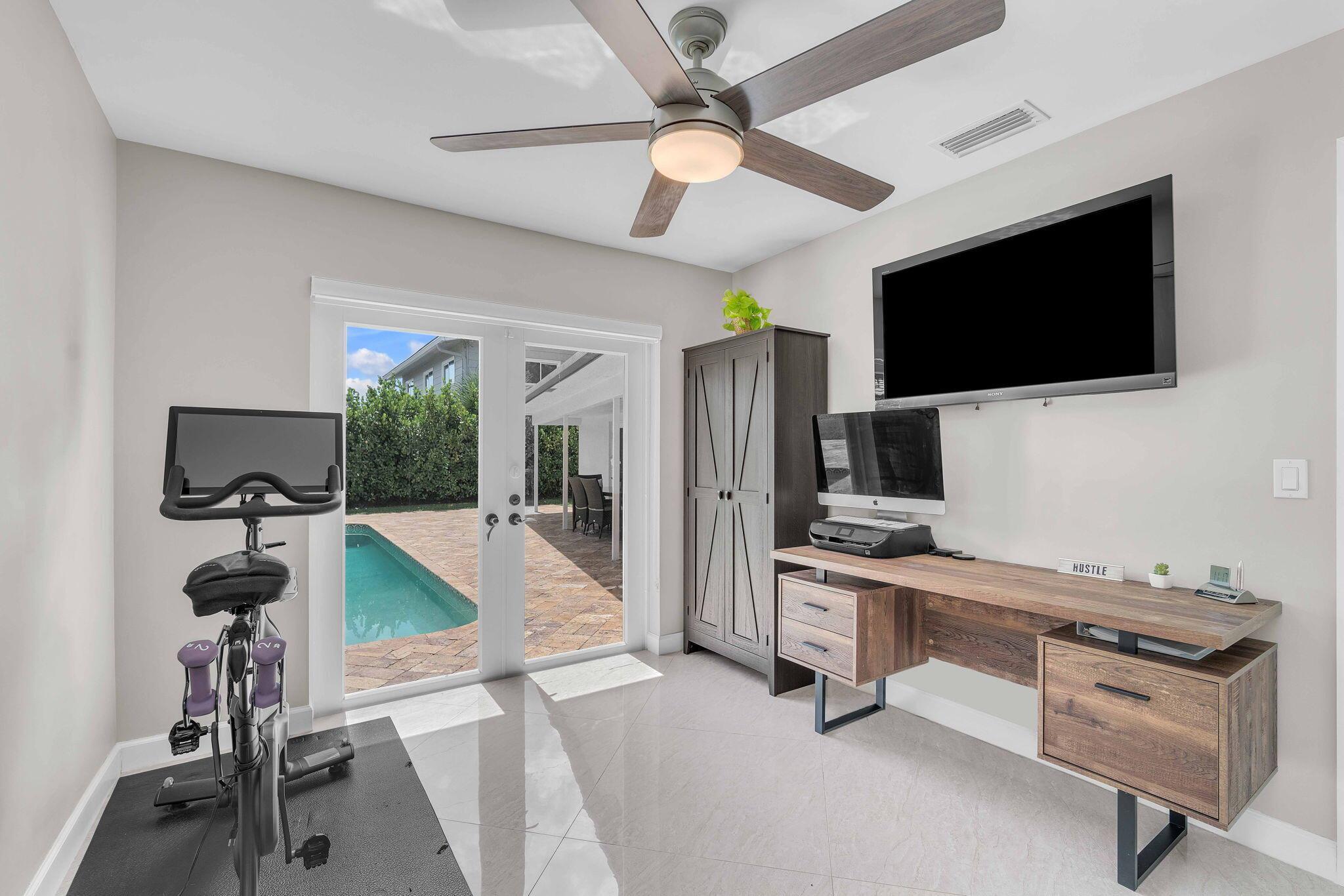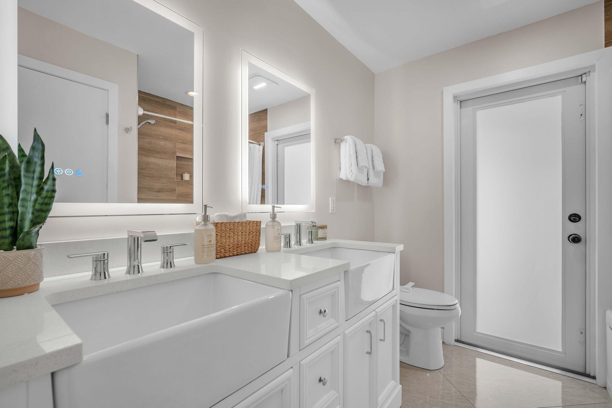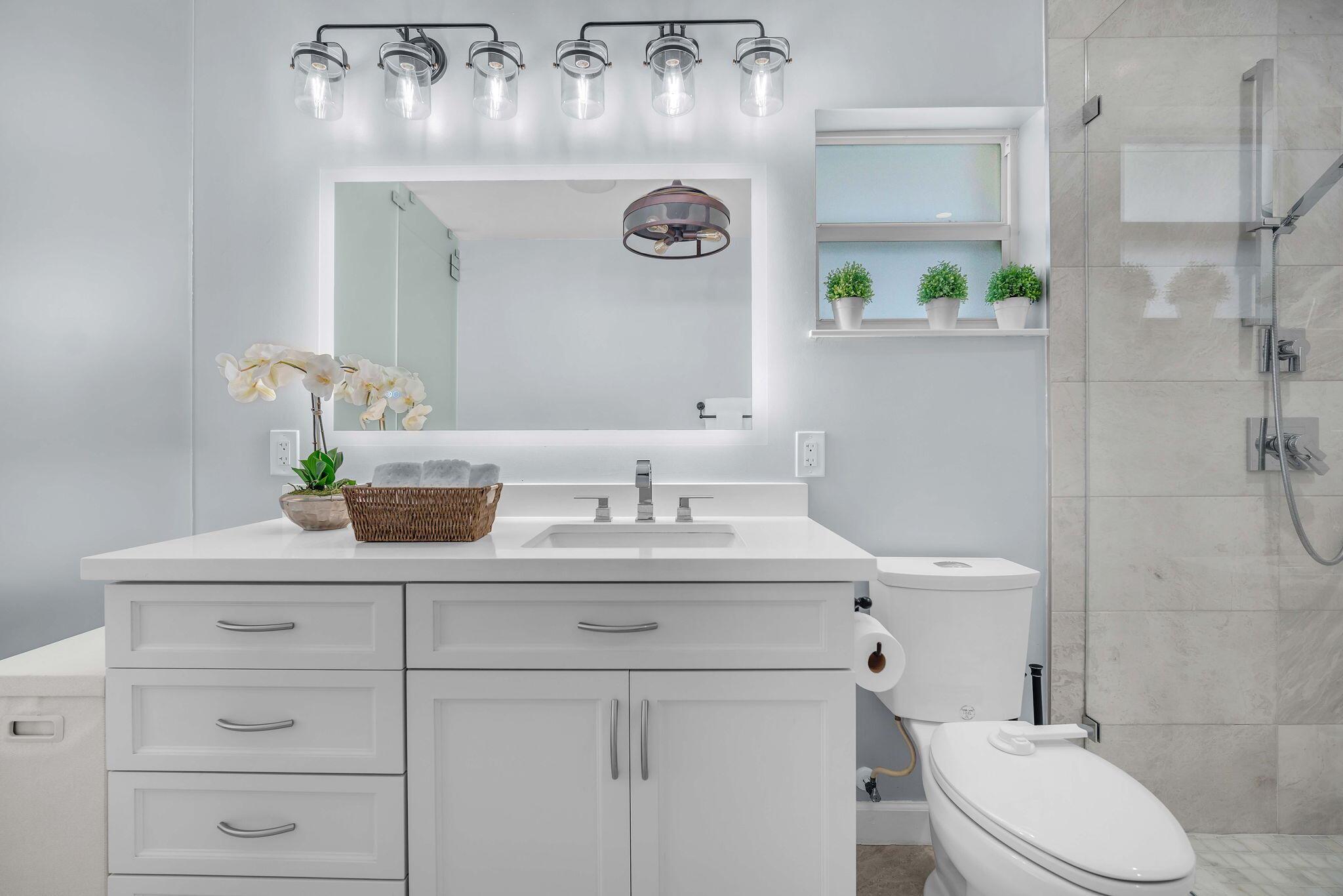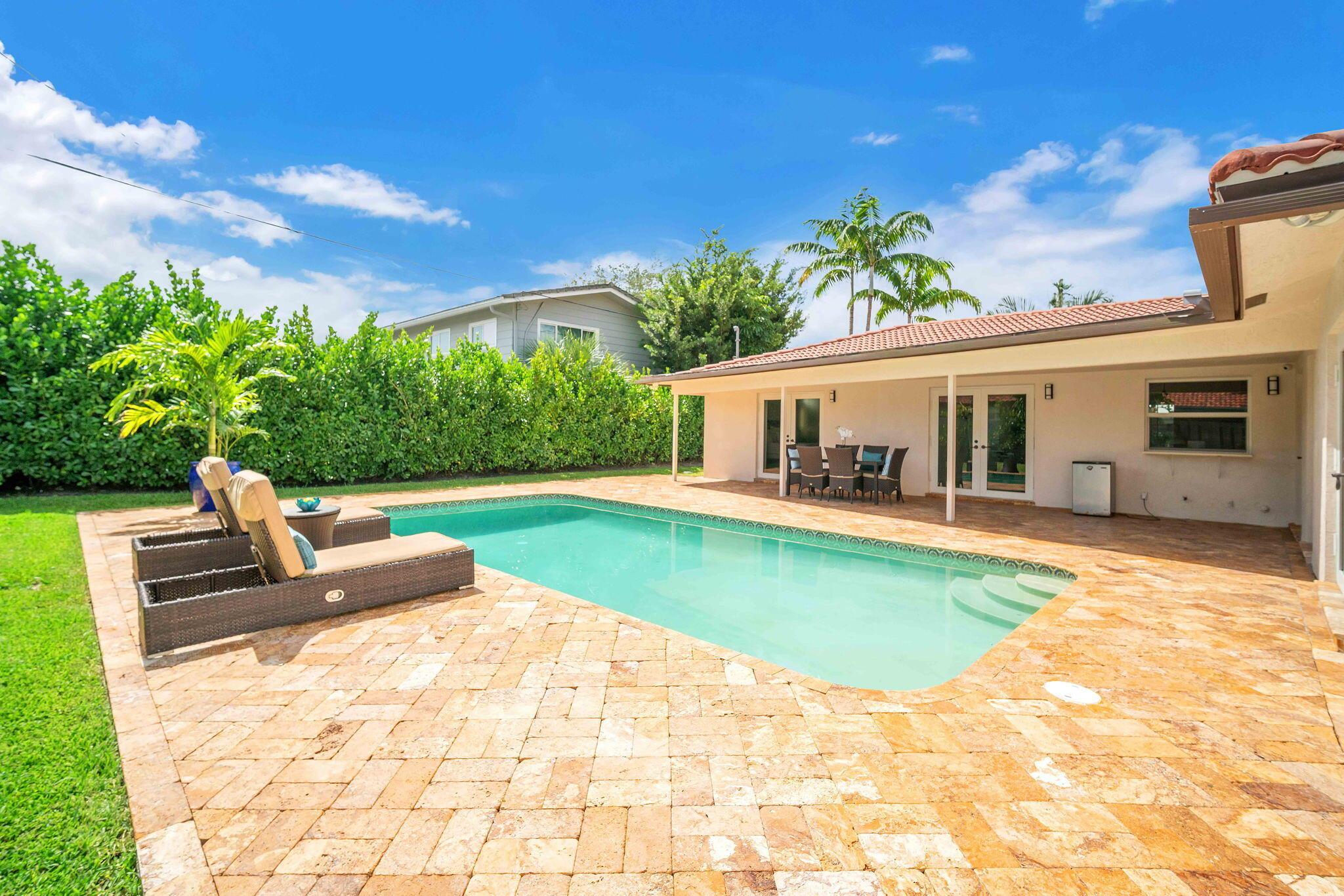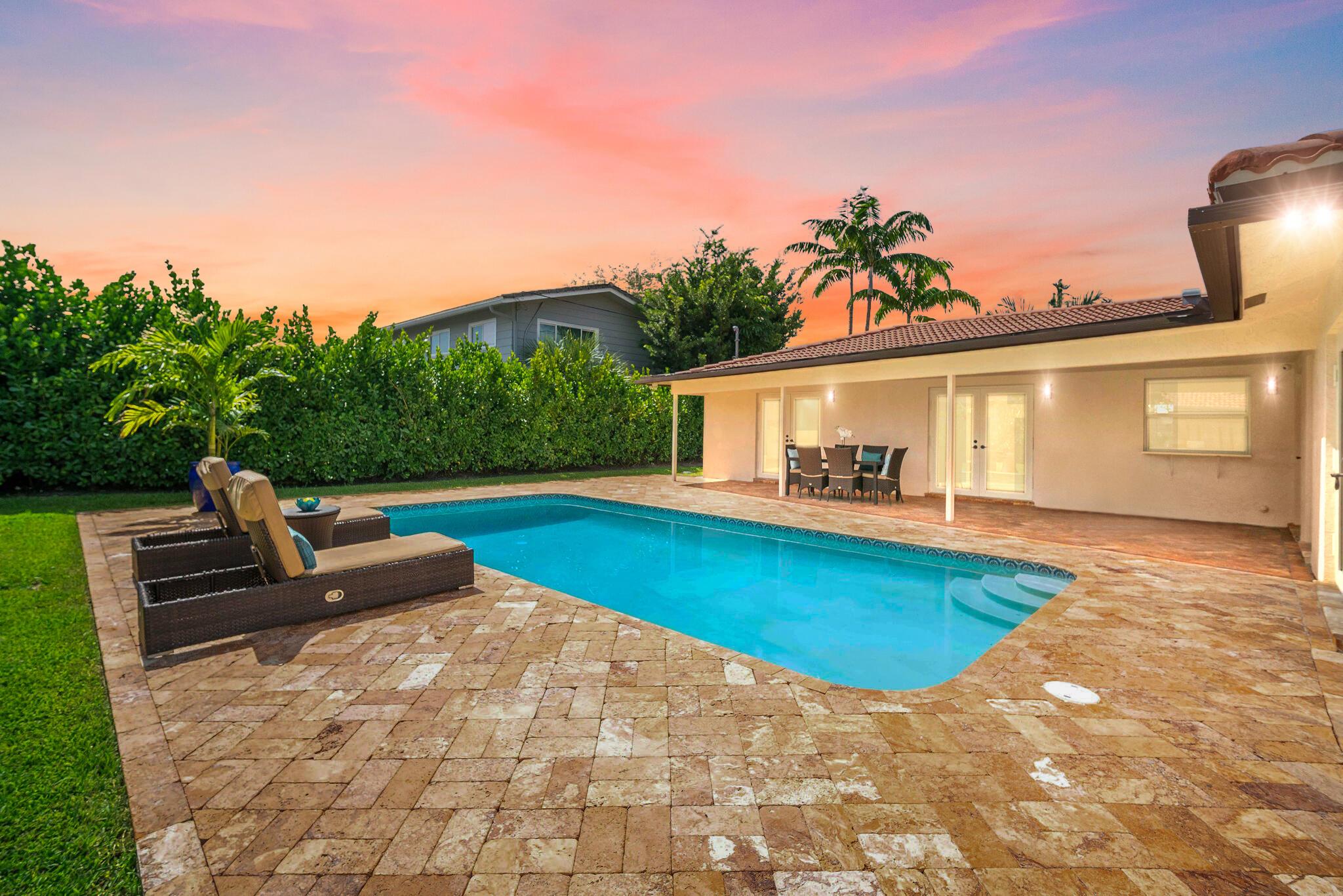 Welcome to your luxurious oasis in the highly desirable community of Boca Raton! This stunning 3 bedroom, 3 bath home has been completely remodeled to create a modern and inviting space. With its open design and abundant natural light, this house is perfect for entertaining. Inside, you'll be greeted by oversized, beautiful porcelain tile and elegant Calacatta Miraggio white quartz countertops on dark chocolate shaker cabinets at the impressive 15 ft kitchen island. The split bedroom plan ensures privacy, and each bedroom boasts a walk-in closet for added convenience.Prepare to be amazed by the special luxuries this home has to offer. Samsung appliances, including a cutting-edge Samsung Family Hub refrigerator, complete with built-in wifi, speakers, and an inside view camera.